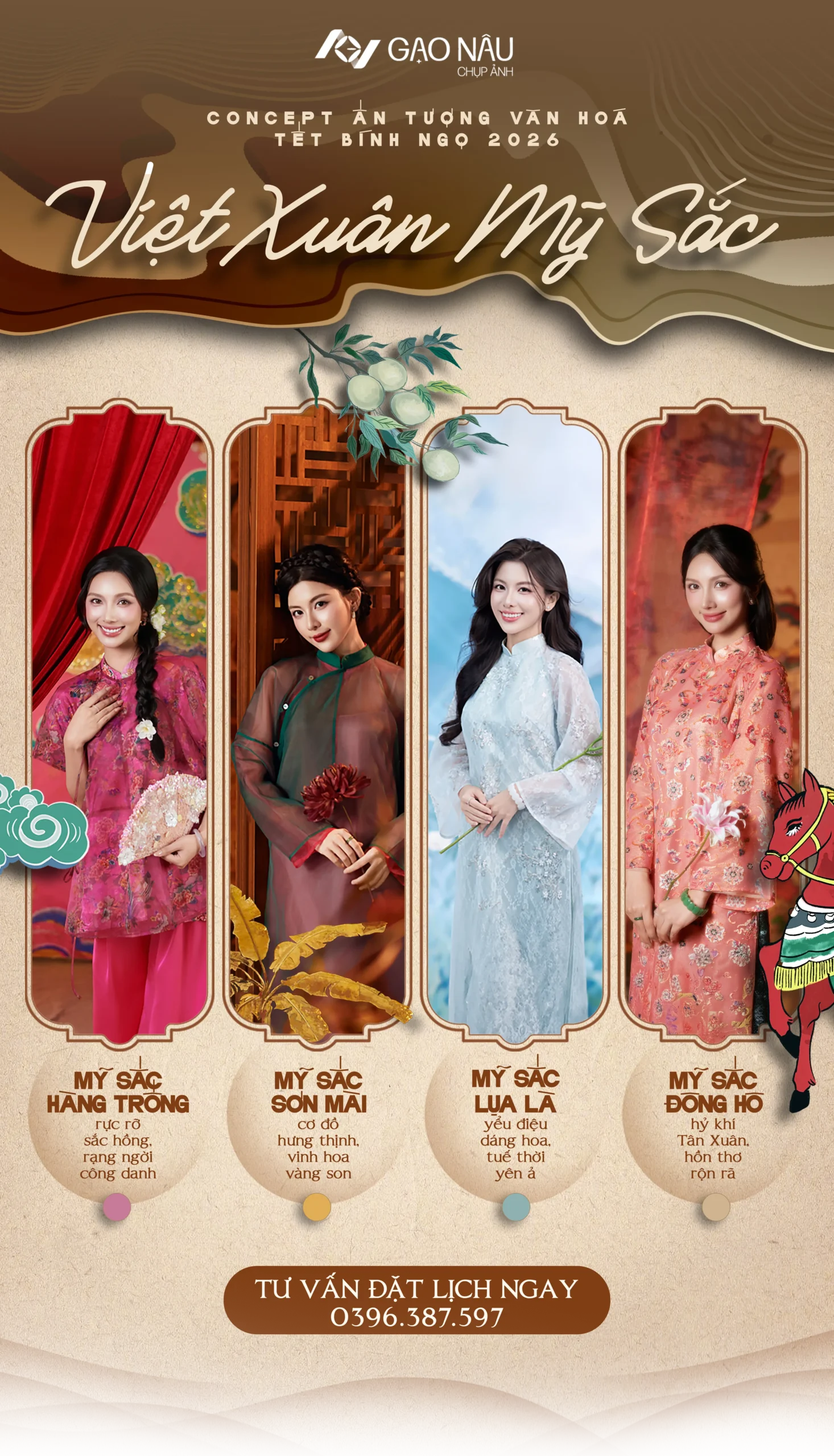 Nhẹ nhàng và tự nhiên, concept "Mỹ Sắc An Khang" bắt trọn những nụ cười, những ánh mắt trao nhau đầy tình cảm giữa các thế hệ. Không cần diễn xuất cầu kỳ, Gạo Nâu giúp gia đình bạn lưu giữ những giây phút bình yên, thư thái nhất. Một bộ ảnh mang hơi thở của mùa xuân trong lành, cầu mong một năm mới sức khỏe dồi dào, tâm trí an yên.