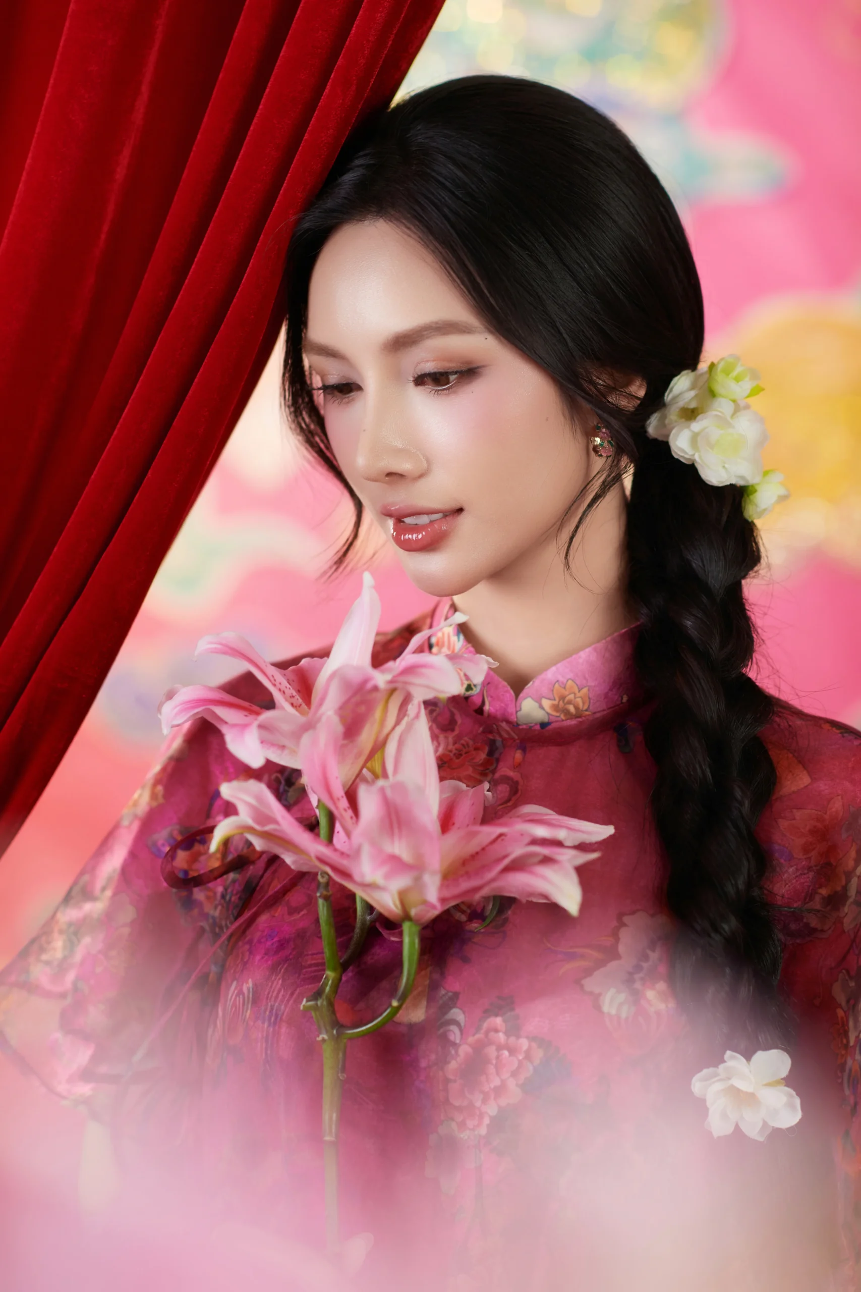 Rực rỡ, chi tiết và mang đậm tính tín ngưỡng thờ Mẫu, tranh Hàng Trống là nguồn cảm hứng cho concept đầy quyền lực này. Sử dụng nghệ thuật "vờn màu" để tạo khối, Gạo Nâu tái hiện không gian lễ hội tâm linh đầy màu sắc nhưng vô cùng sang trọng. Bộ ảnh dành cho những cô gái muốn thể hiện khí chất rạng ngời, sự tự tin và khát vọng vươn lên trong năm mới.