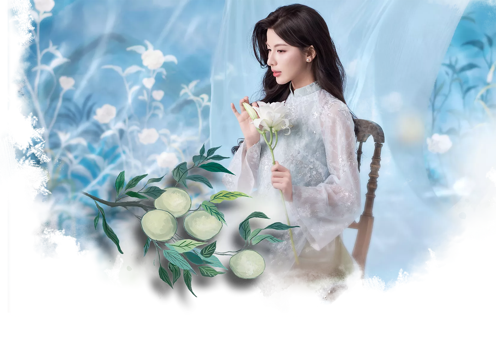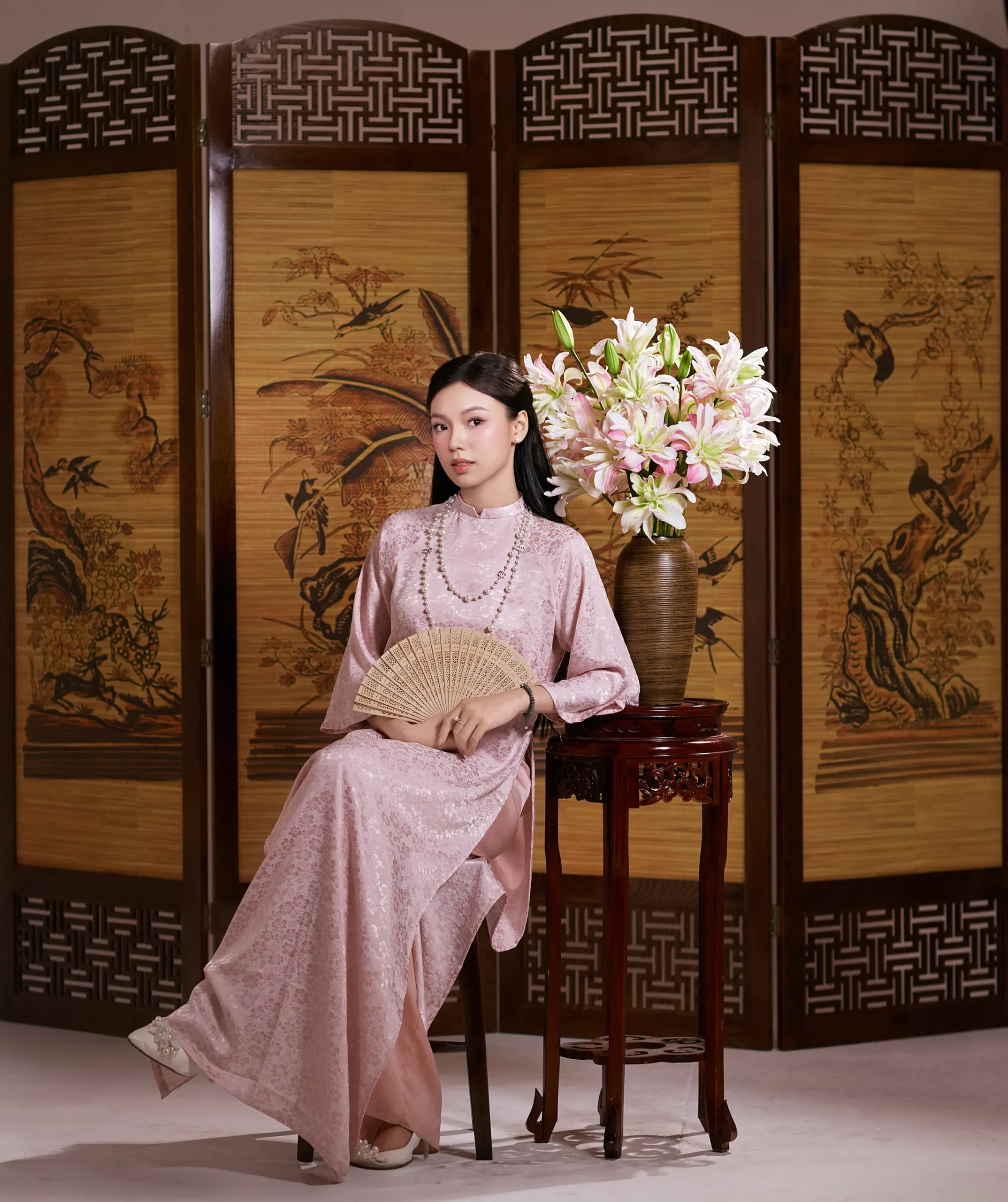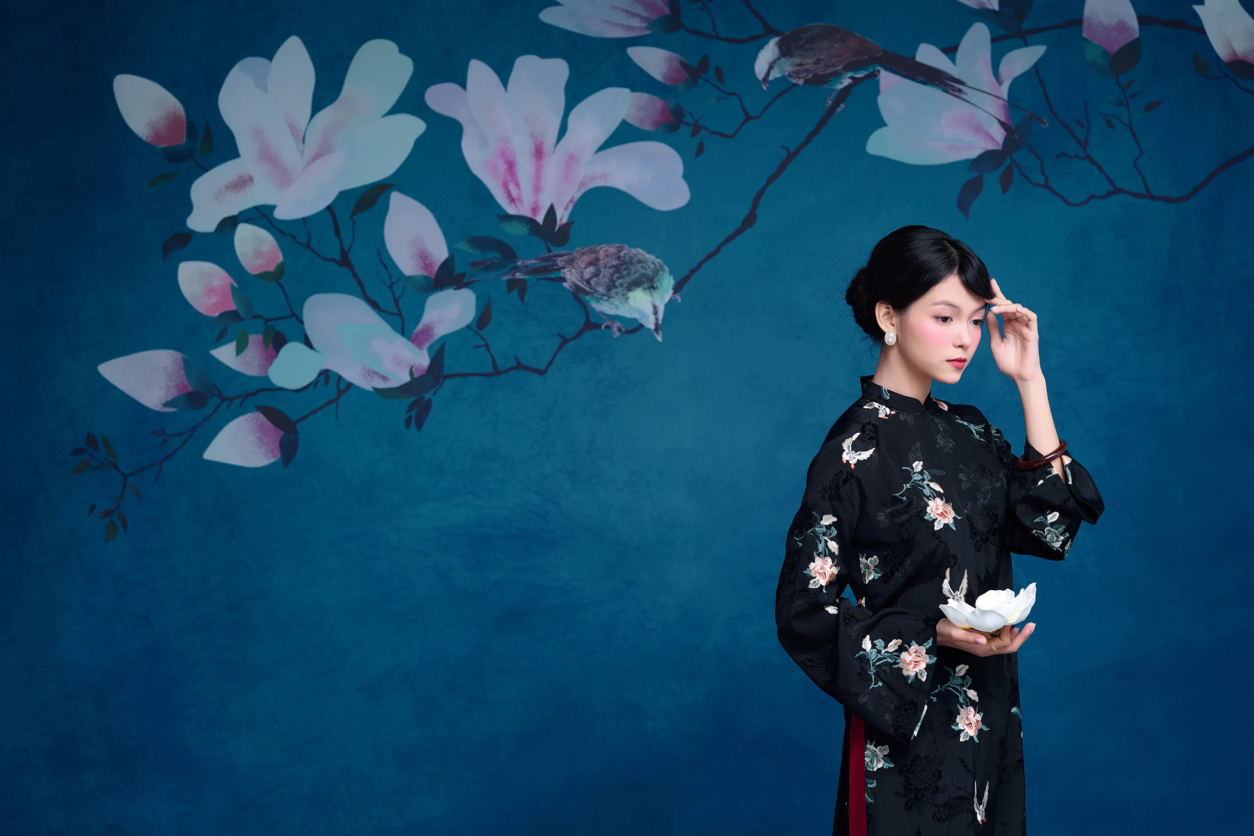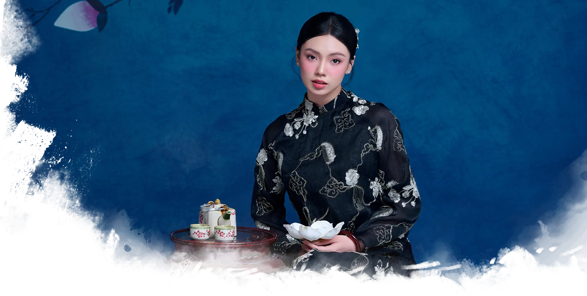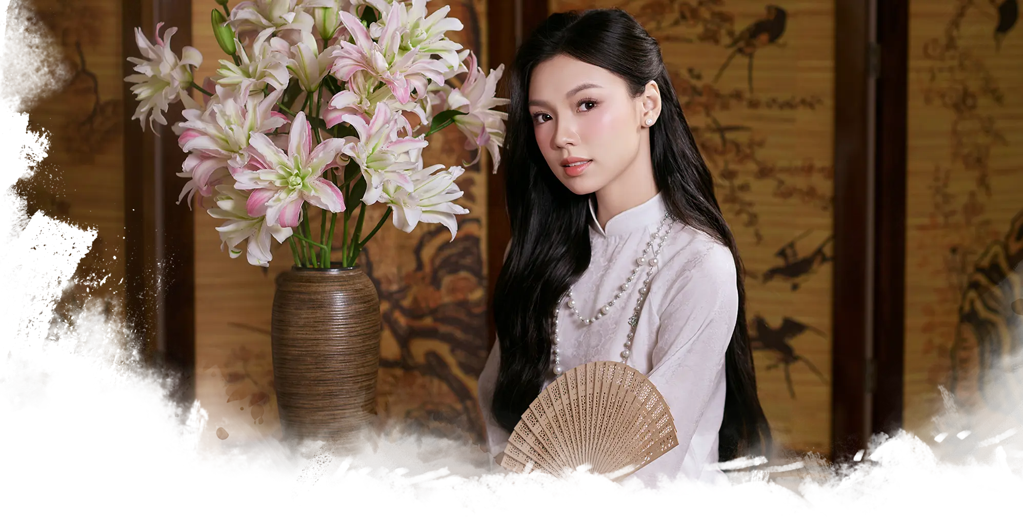 Lấy cảm hứng từ tranh lụa Việt Nam những năm 30, nơi vẻ đẹp người phụ nữ được tôn vinh qua sự nền nã và thanh tao. Ánh sáng trong concept này được set-up mềm mại, mờ ảo như hư như thực, tôn lên tà áo dài thướt tha và cốt cách dịu dàng của nàng thơ. Đây là lựa chọn hoàn hảo cho những quý cô yêu thích sự tĩnh lặng và chiều sâu trong tâm hồn