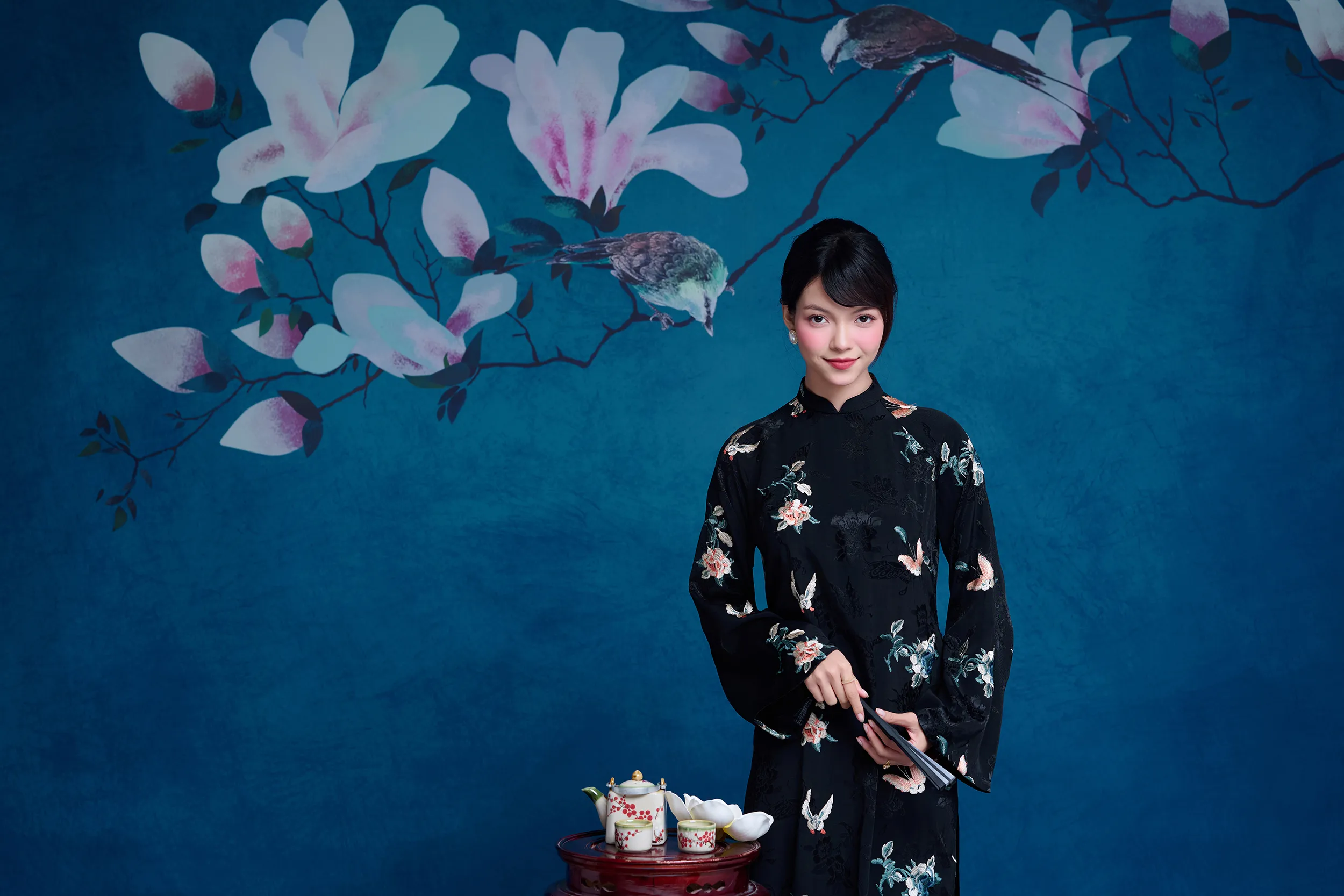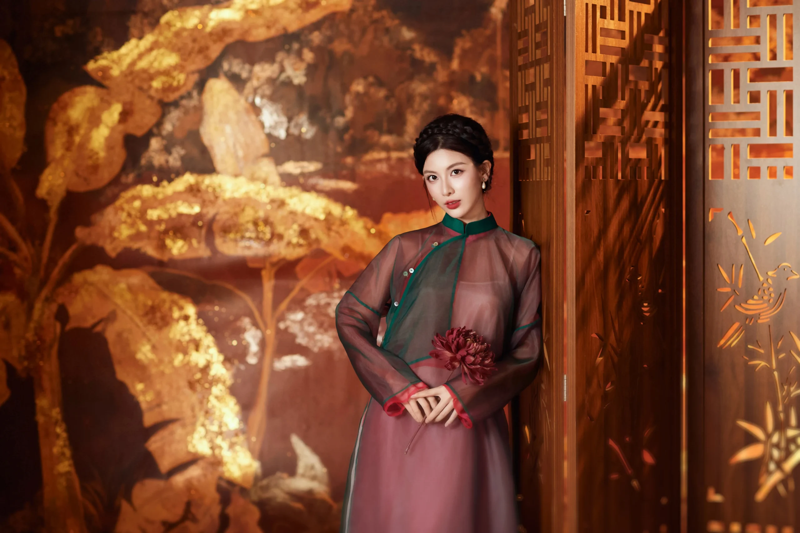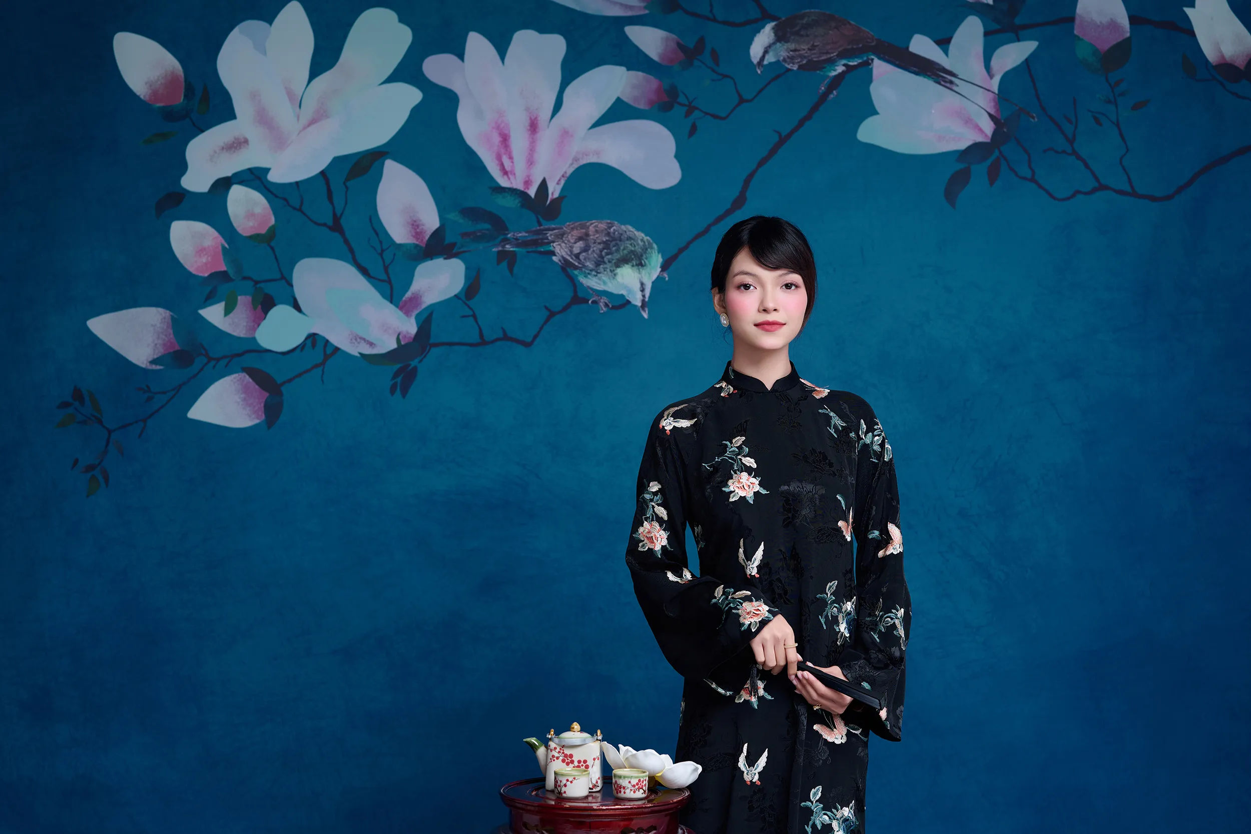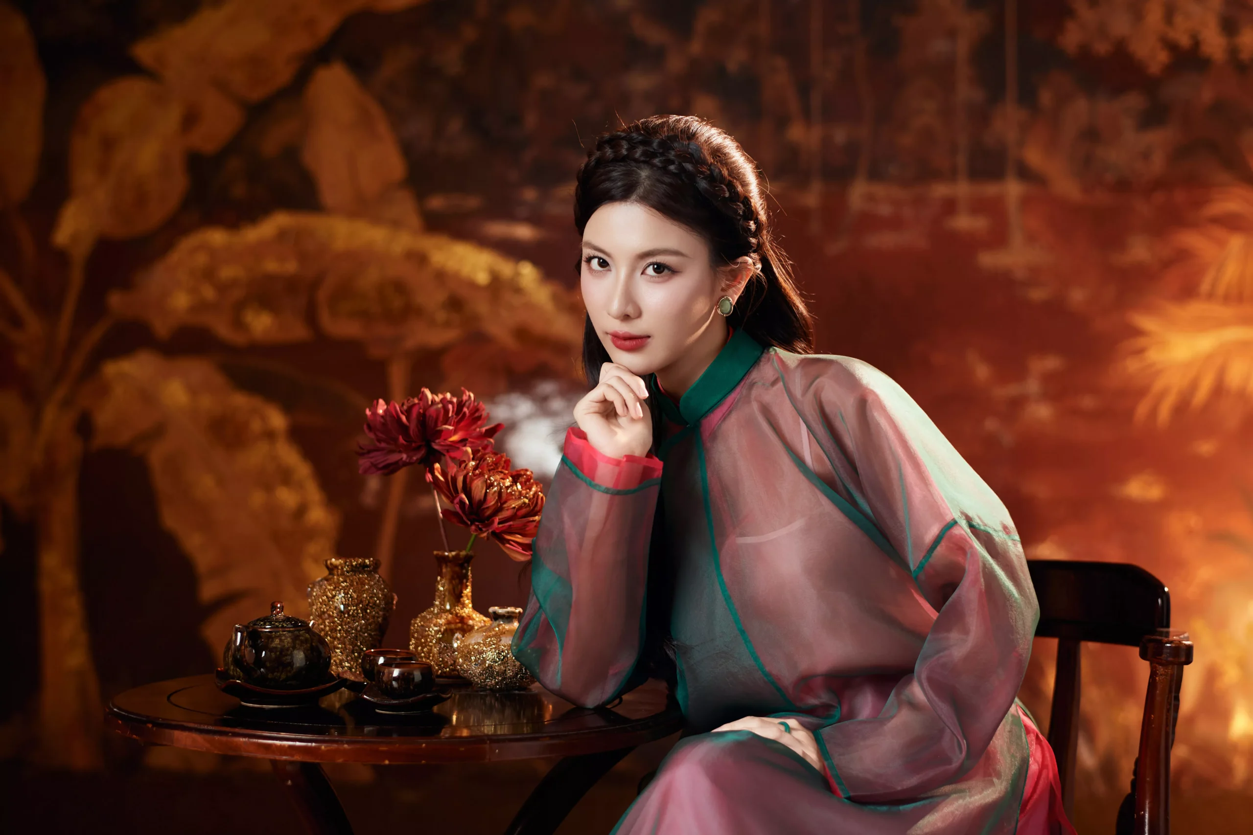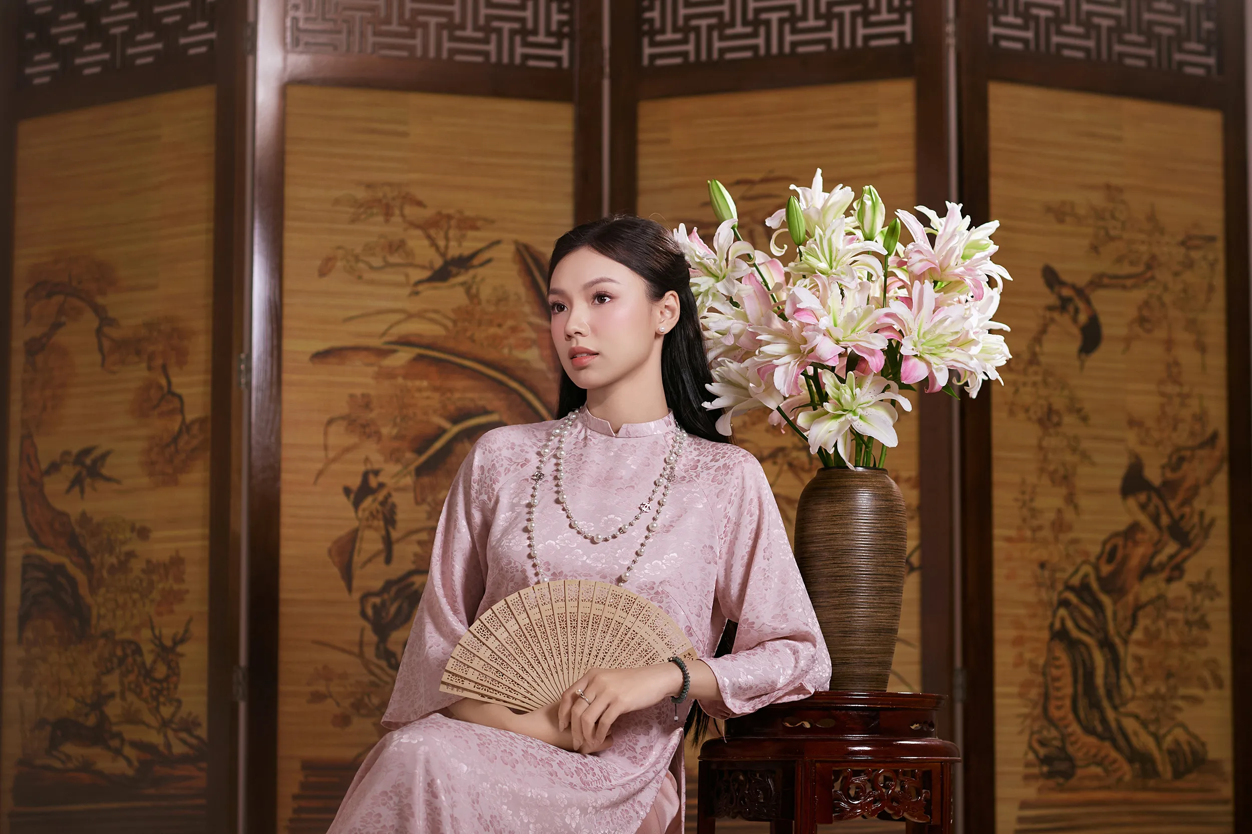 Lấy cảm hứng từ tranh lụa Việt Nam những năm 30, nơi vẻ đẹp người phụ nữ được tôn vinh qua sự nền nã và thanh tao. Ánh sáng trong concept này được set-up mềm mại, mờ ảo như hư như thực, tôn lên tà áo dài thướt tha và cốt cách dịu dàng của nàng thơ. Đây là lựa chọn hoàn hảo cho những quý cô yêu thích sự tĩnh lặng và chiều sâu trong tâm hồn
