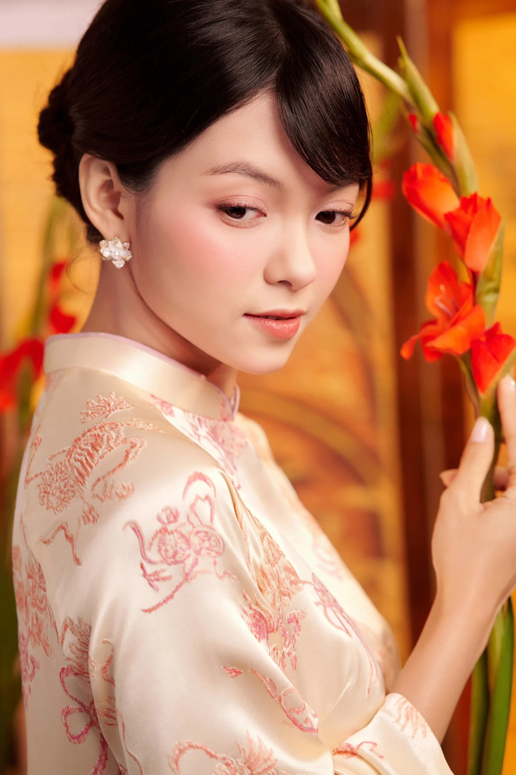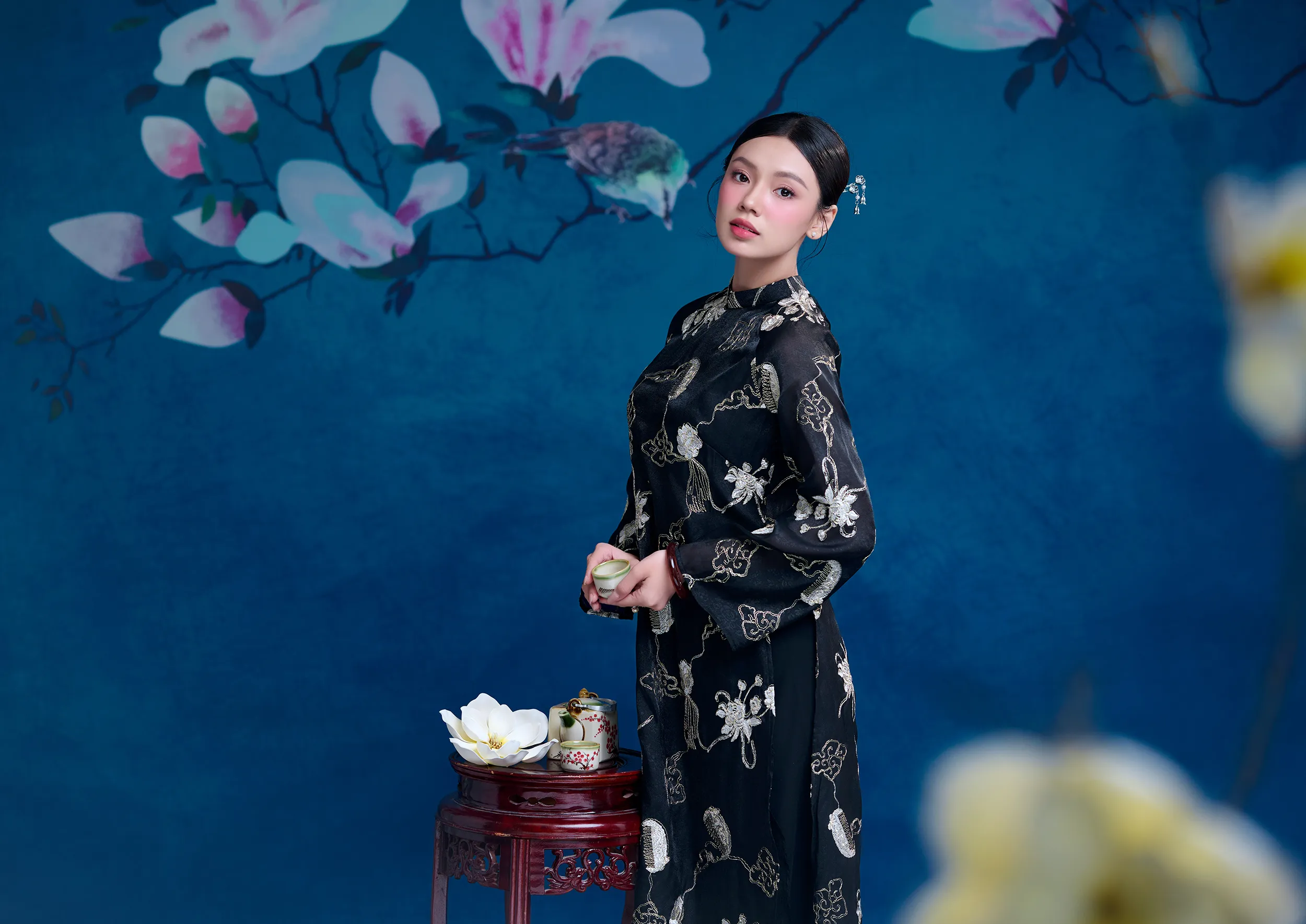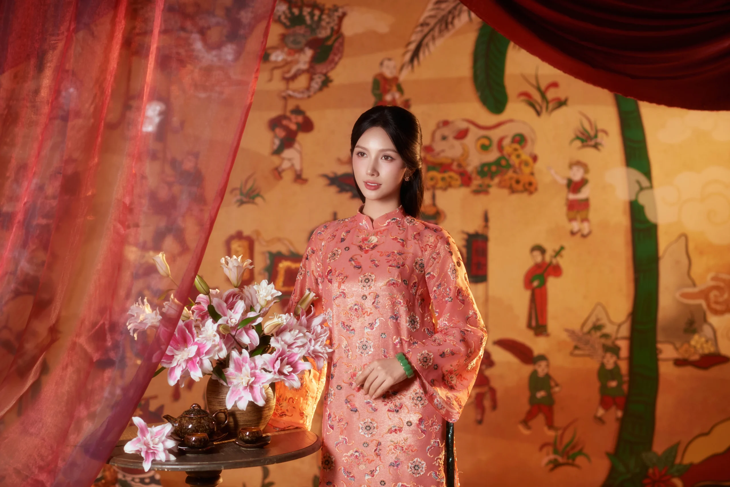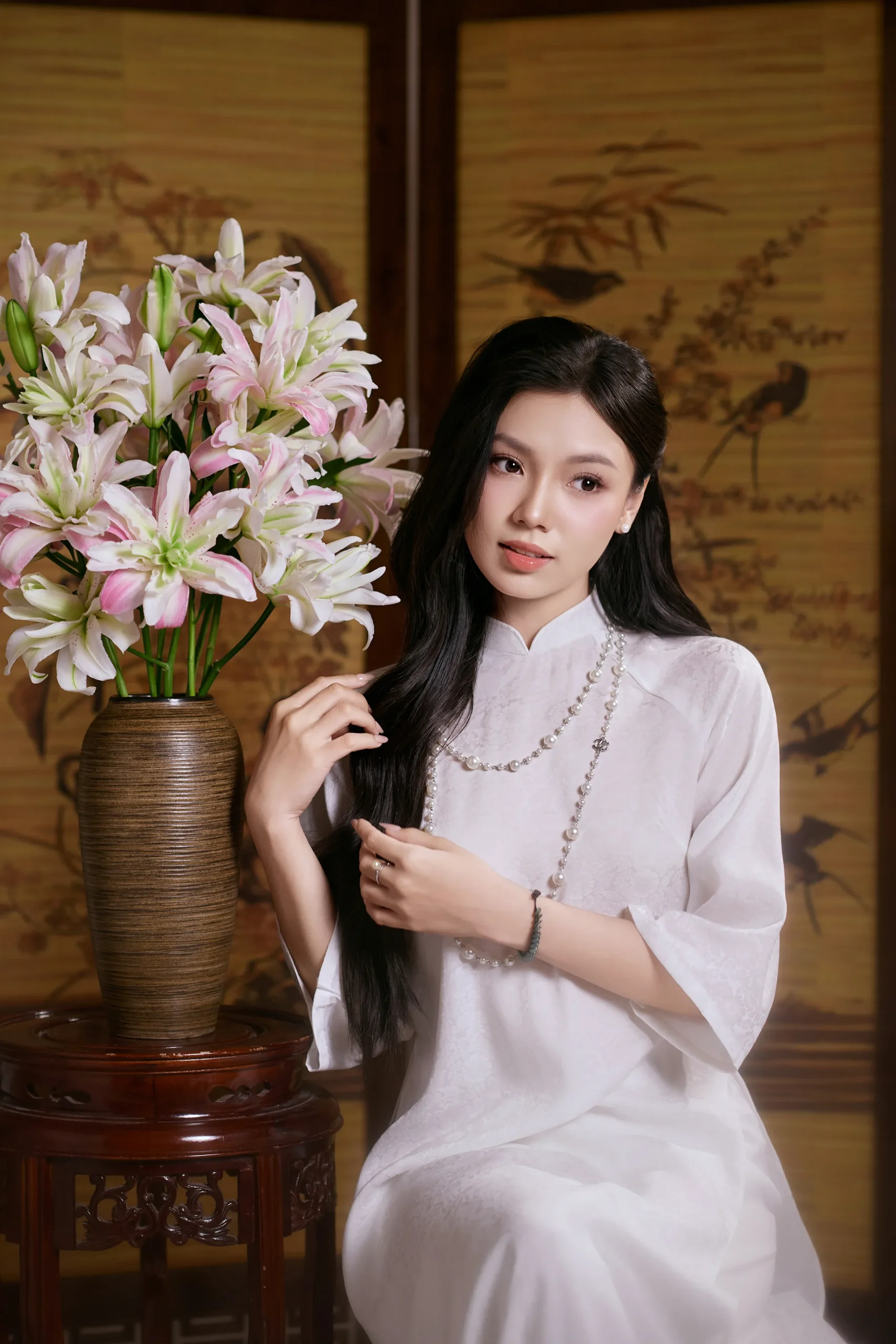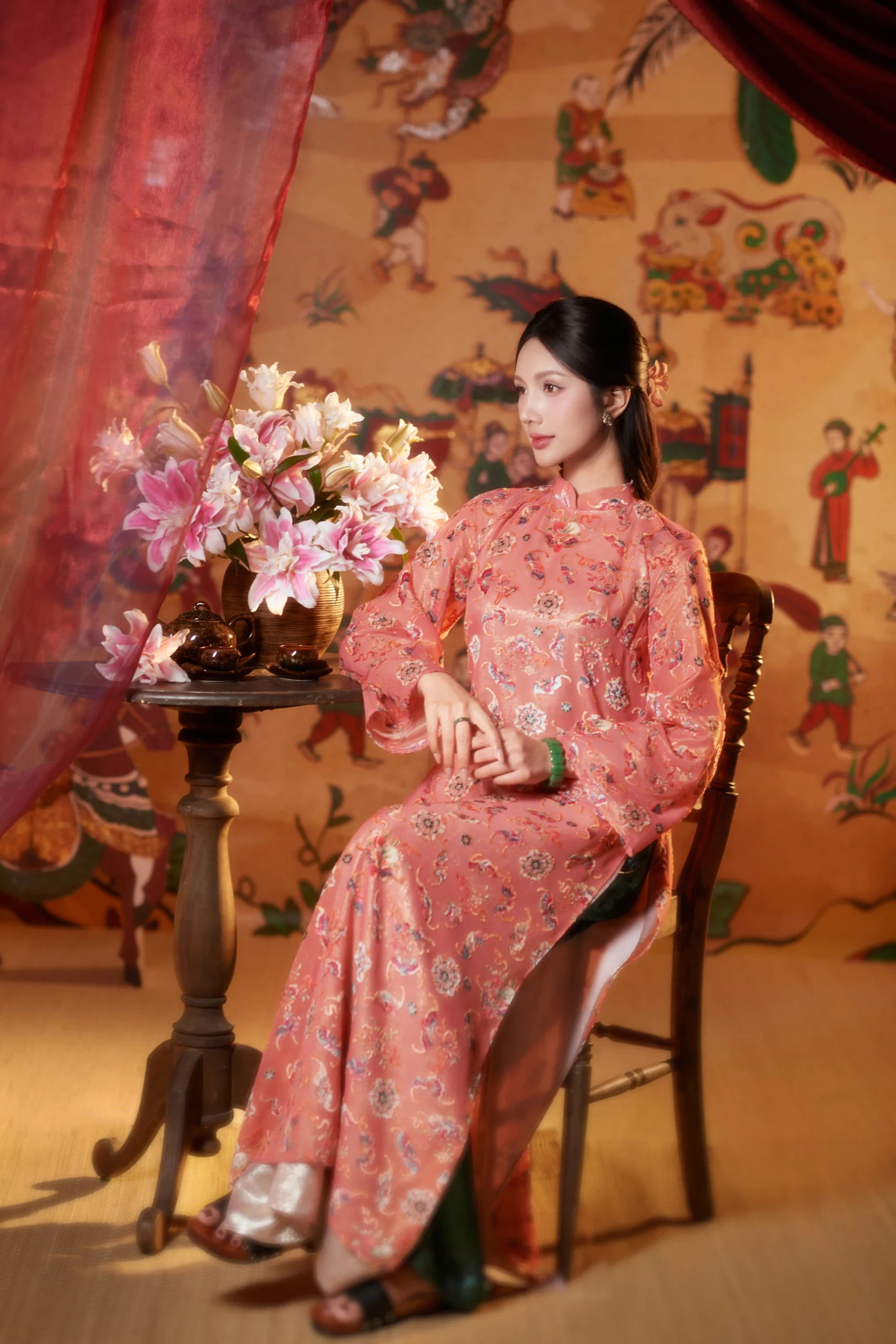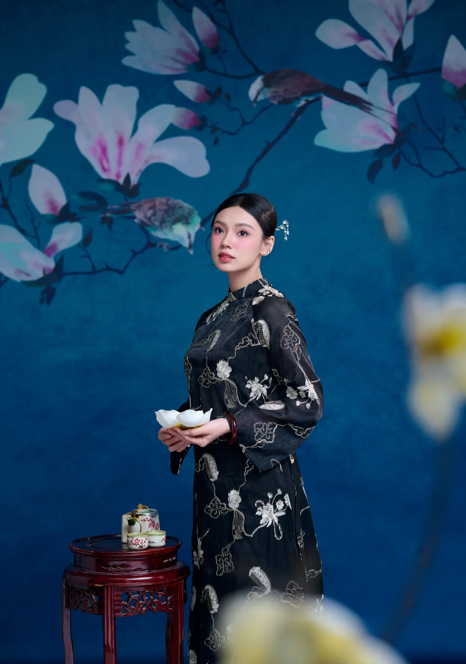 Lấy cảm hứng từ tranh lụa Việt Nam những năm 30, nơi vẻ đẹp người phụ nữ được tôn vinh qua sự nền nã và thanh tao. Ánh sáng trong concept này được set-up mềm mại, mờ ảo như hư như thực, tôn lên tà áo dài thướt tha và cốt cách dịu dàng của nàng thơ. Đây là lựa chọn hoàn hảo cho những quý cô yêu thích sự tĩnh lặng và chiều sâu trong tâm hồn