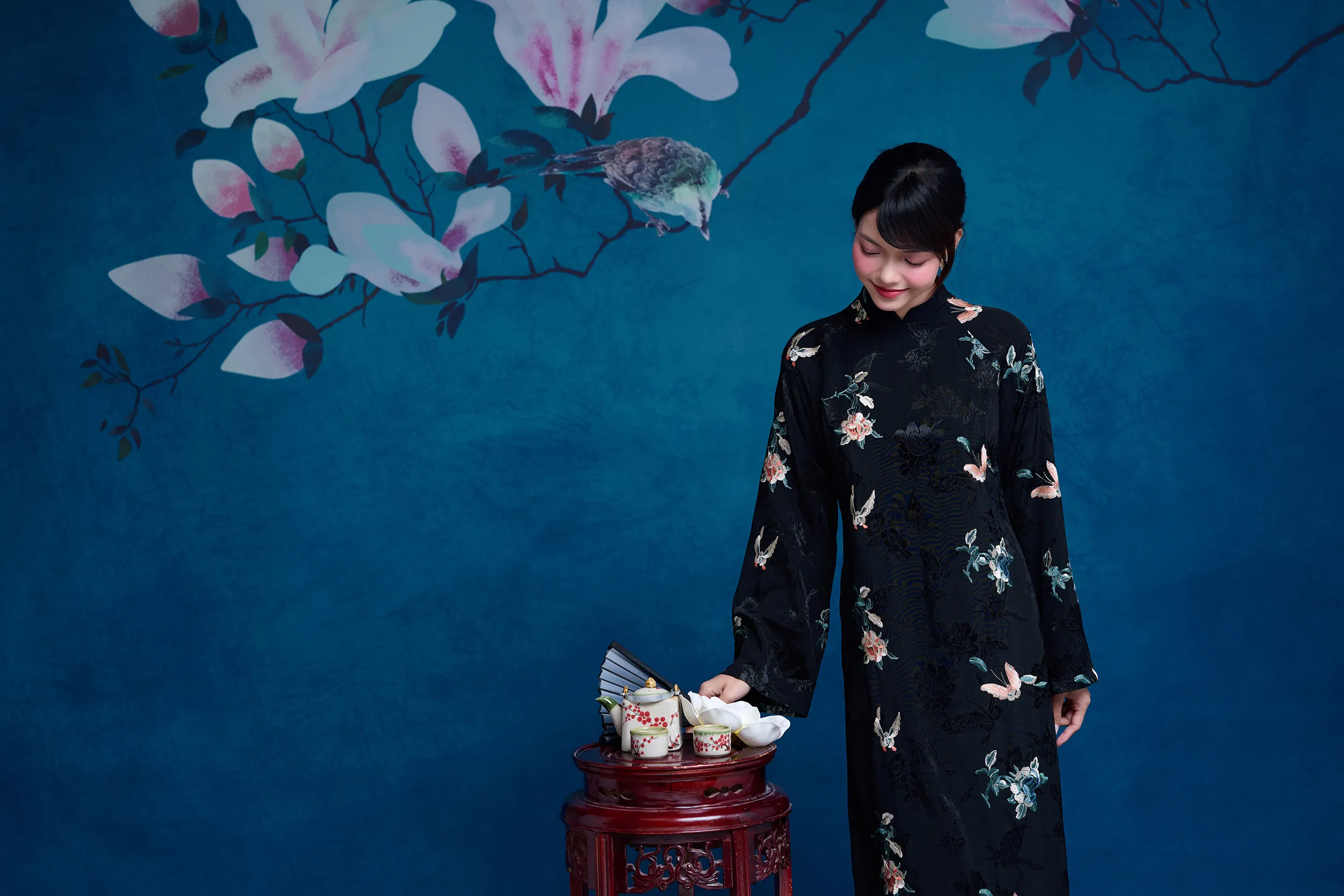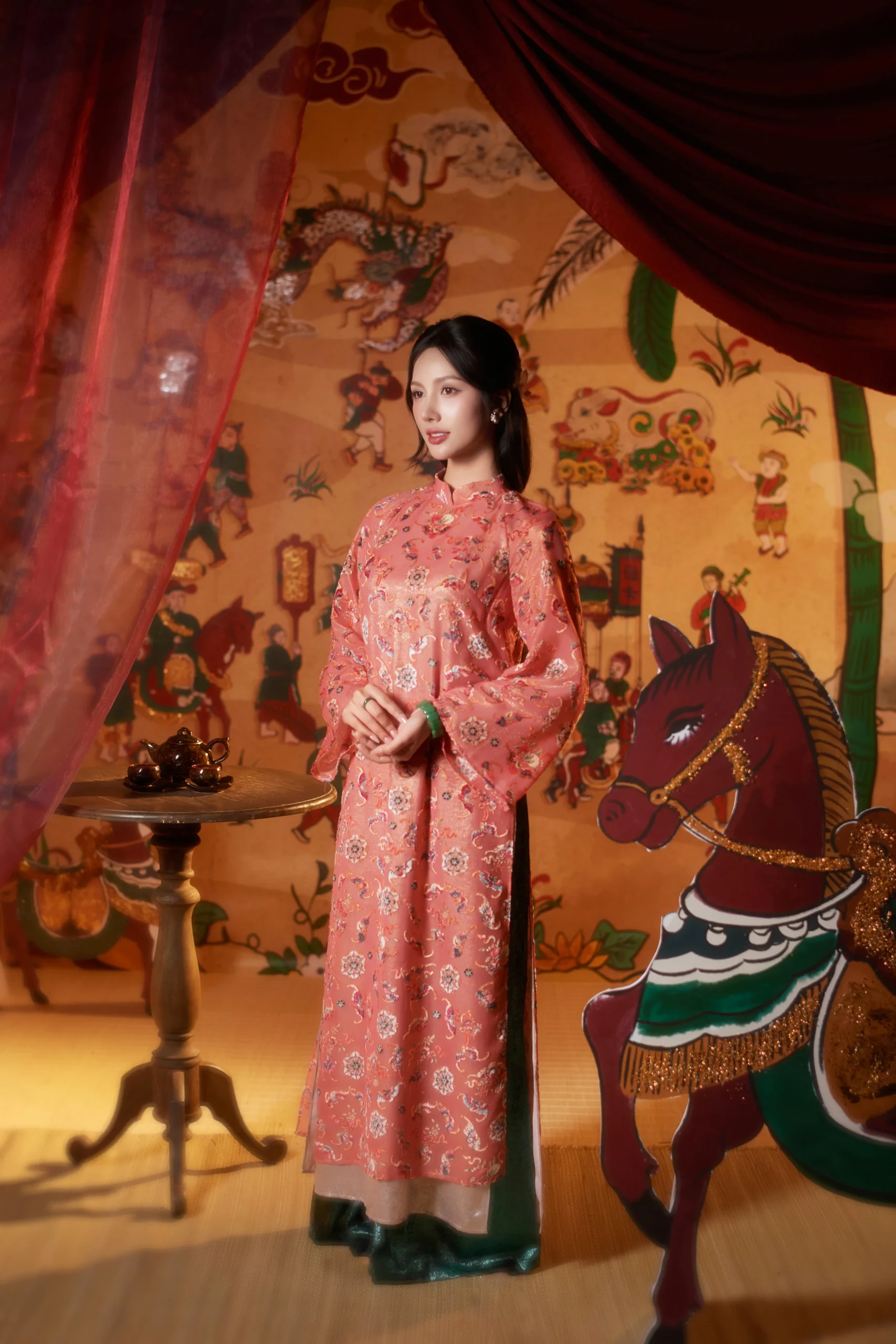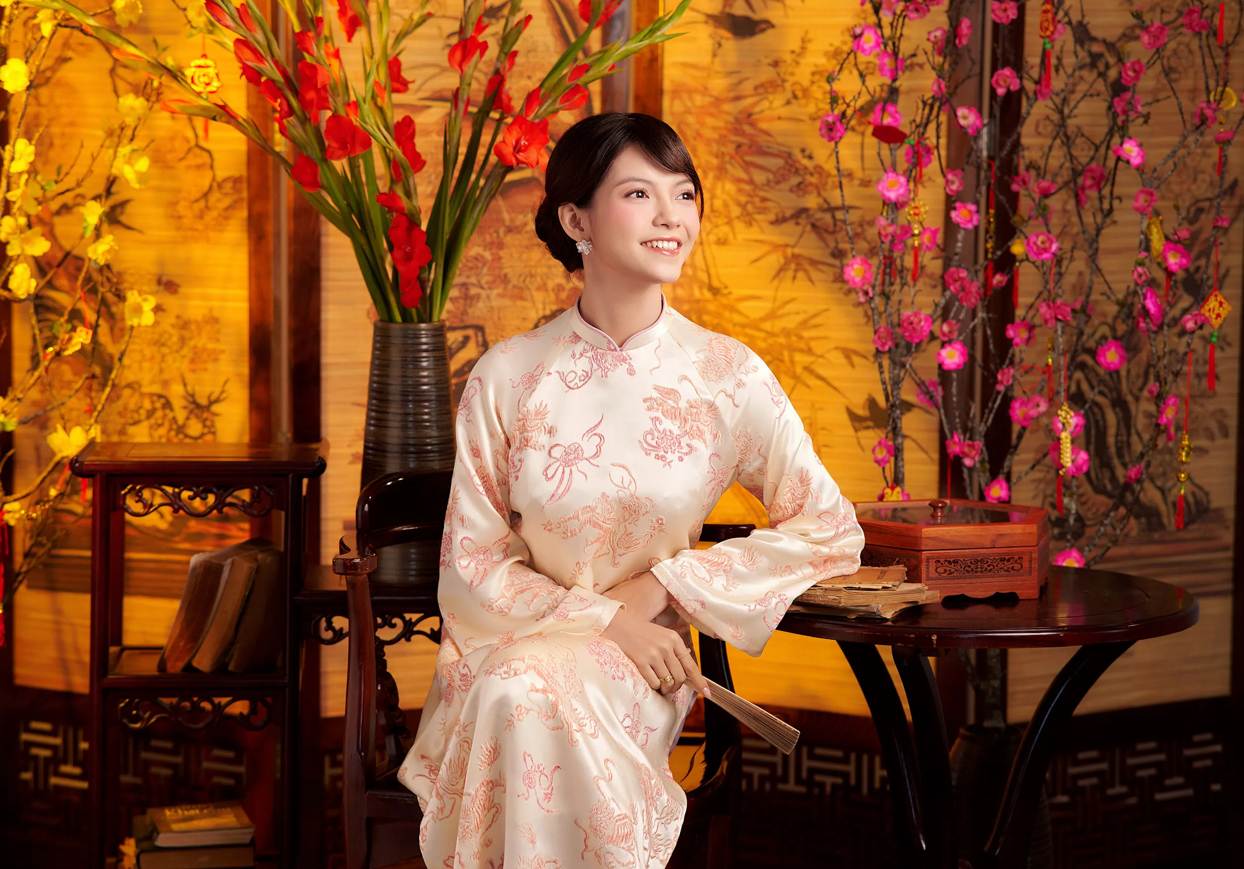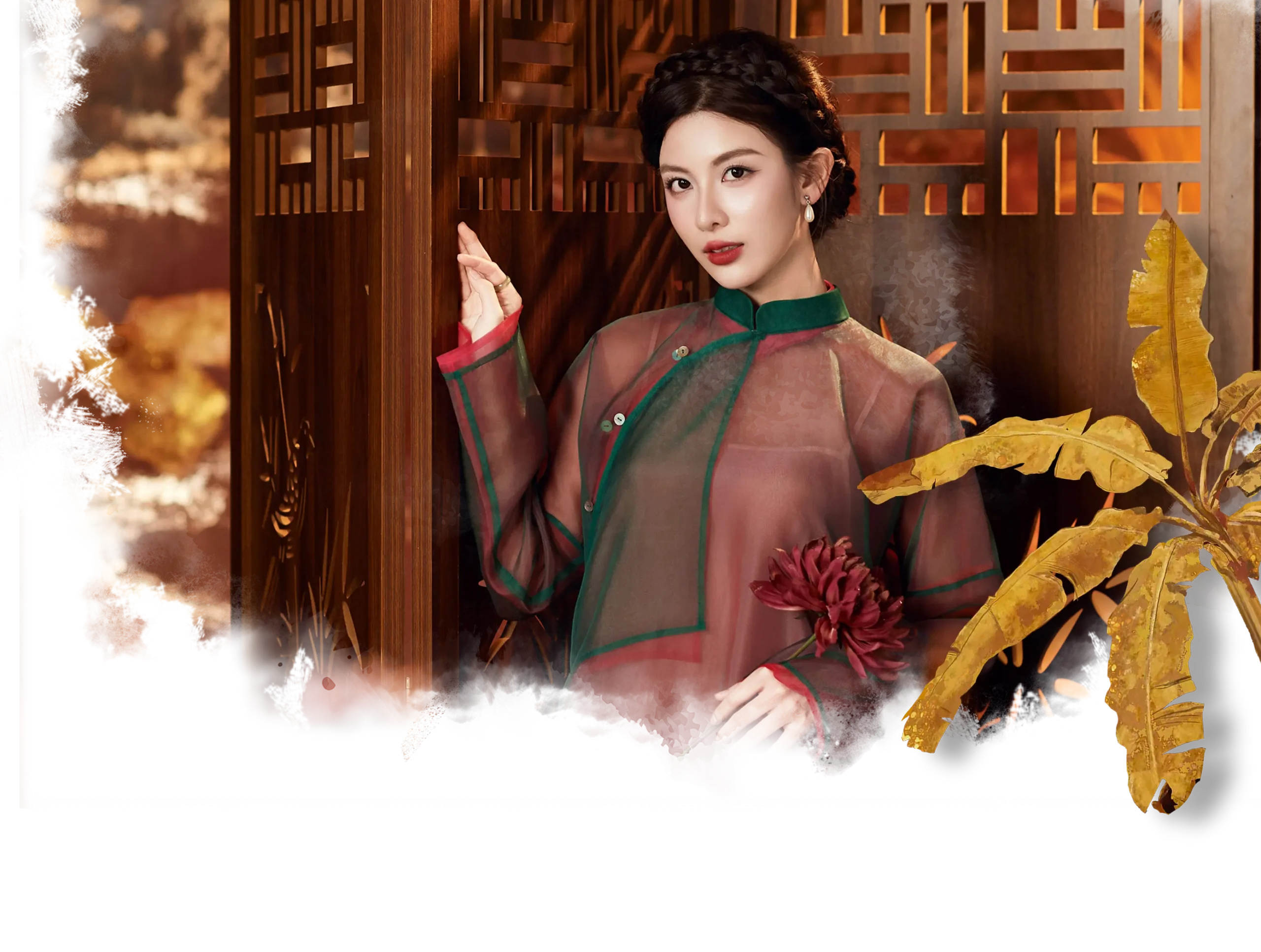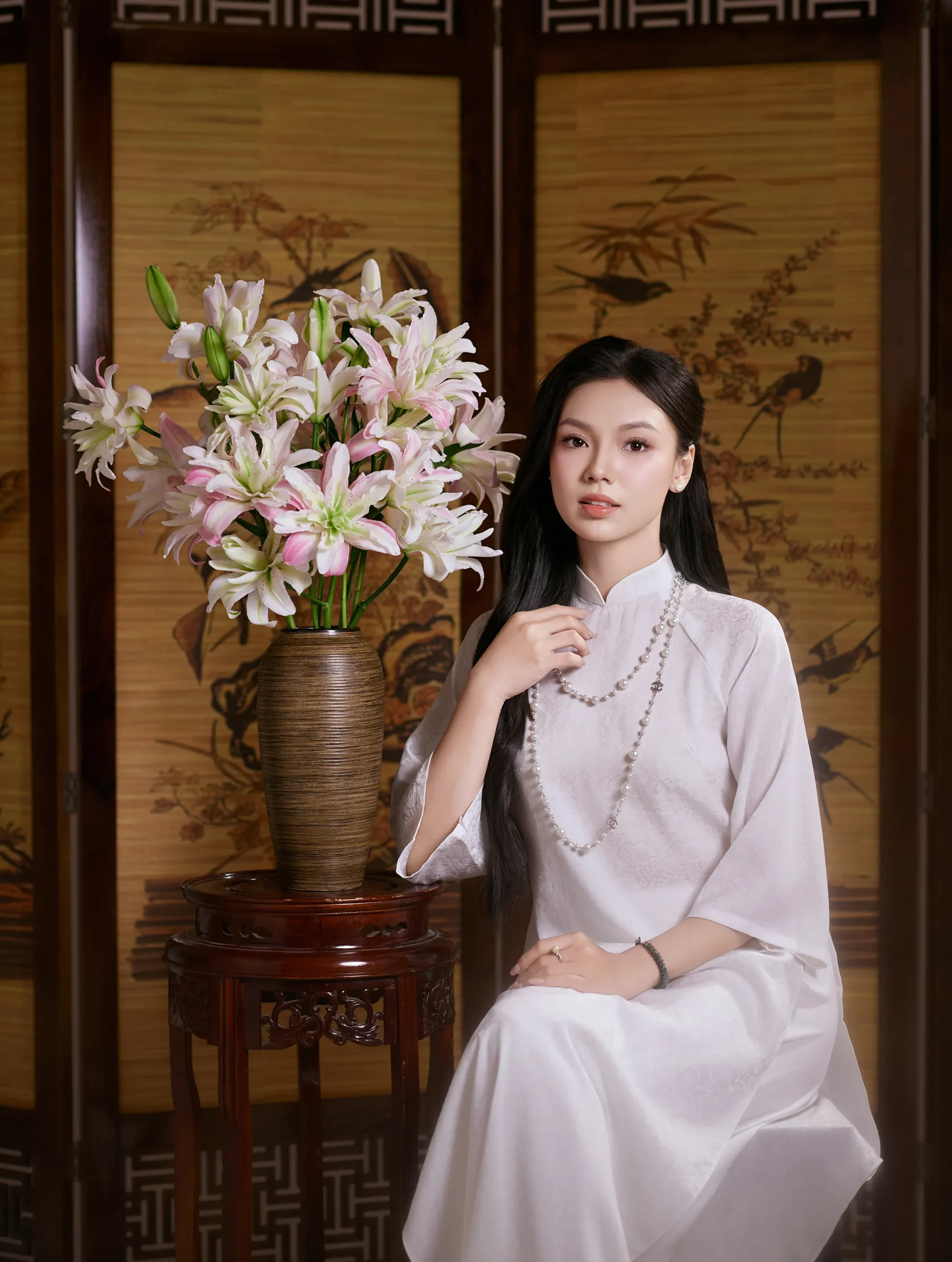 Lấy cảm hứng từ tranh lụa Việt Nam những năm 30, nơi vẻ đẹp người phụ nữ được tôn vinh qua sự nền nã và thanh tao. Ánh sáng trong concept này được set-up mềm mại, mờ ảo như hư như thực, tôn lên tà áo dài thướt tha và cốt cách dịu dàng của nàng thơ. Đây là lựa chọn hoàn hảo cho những quý cô yêu thích sự tĩnh lặng và chiều sâu trong tâm hồn
