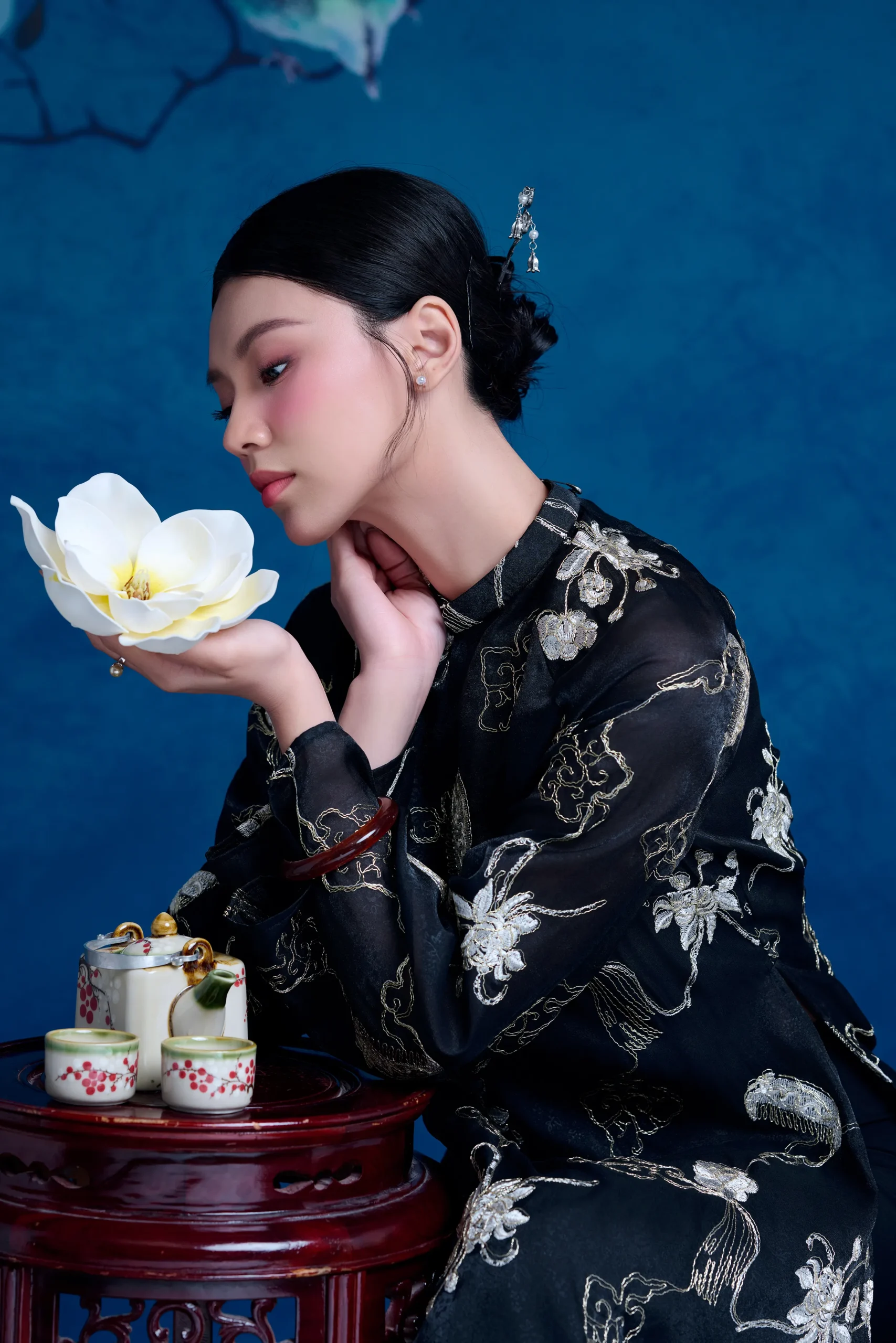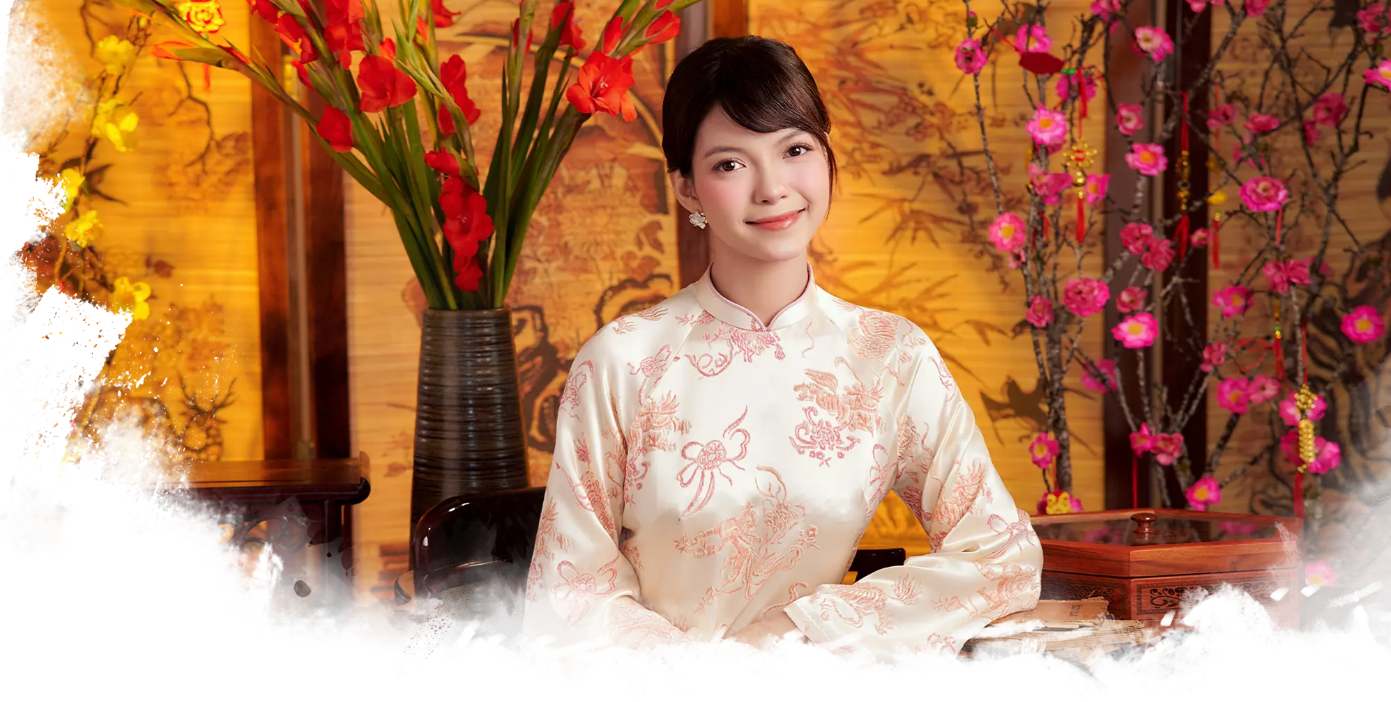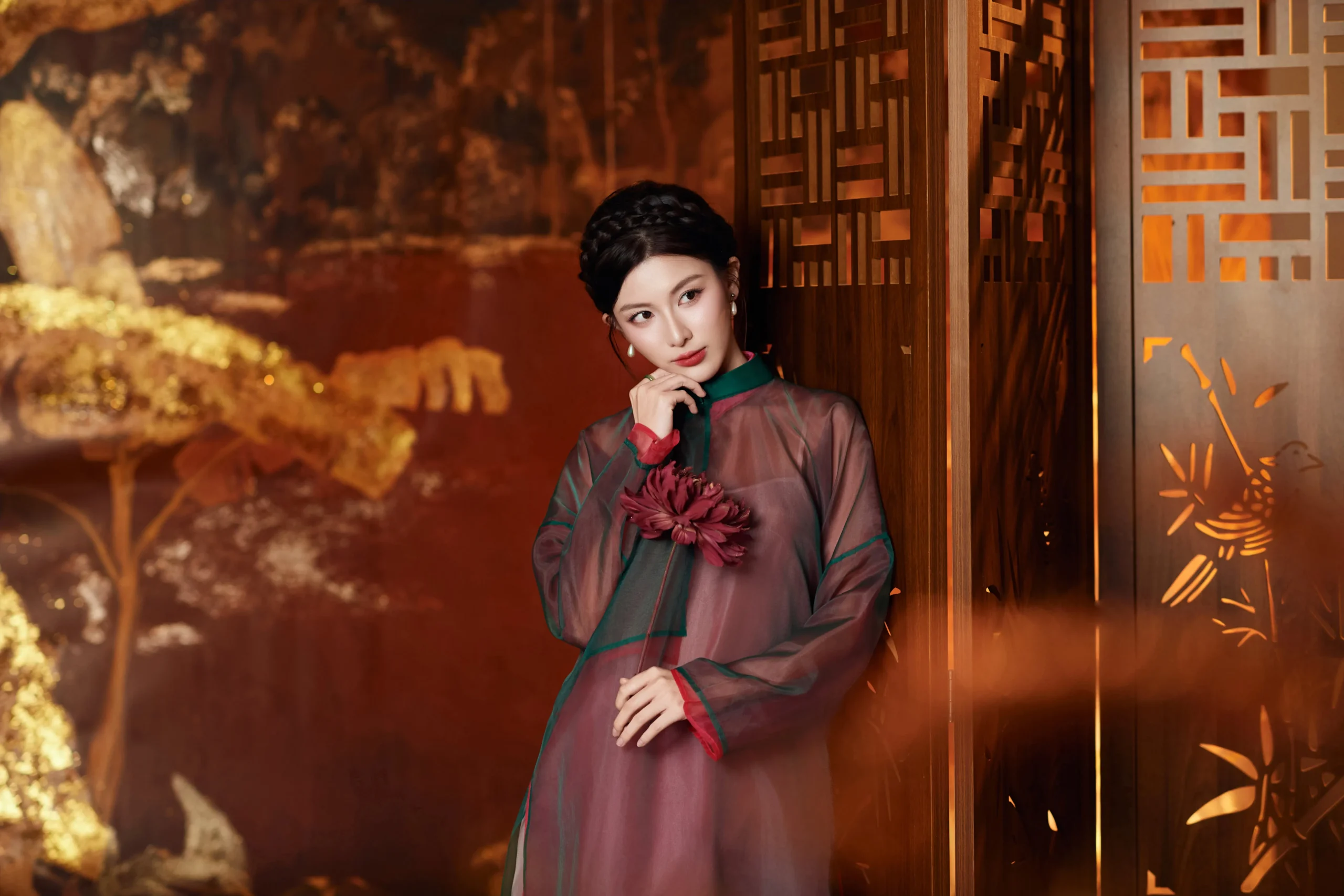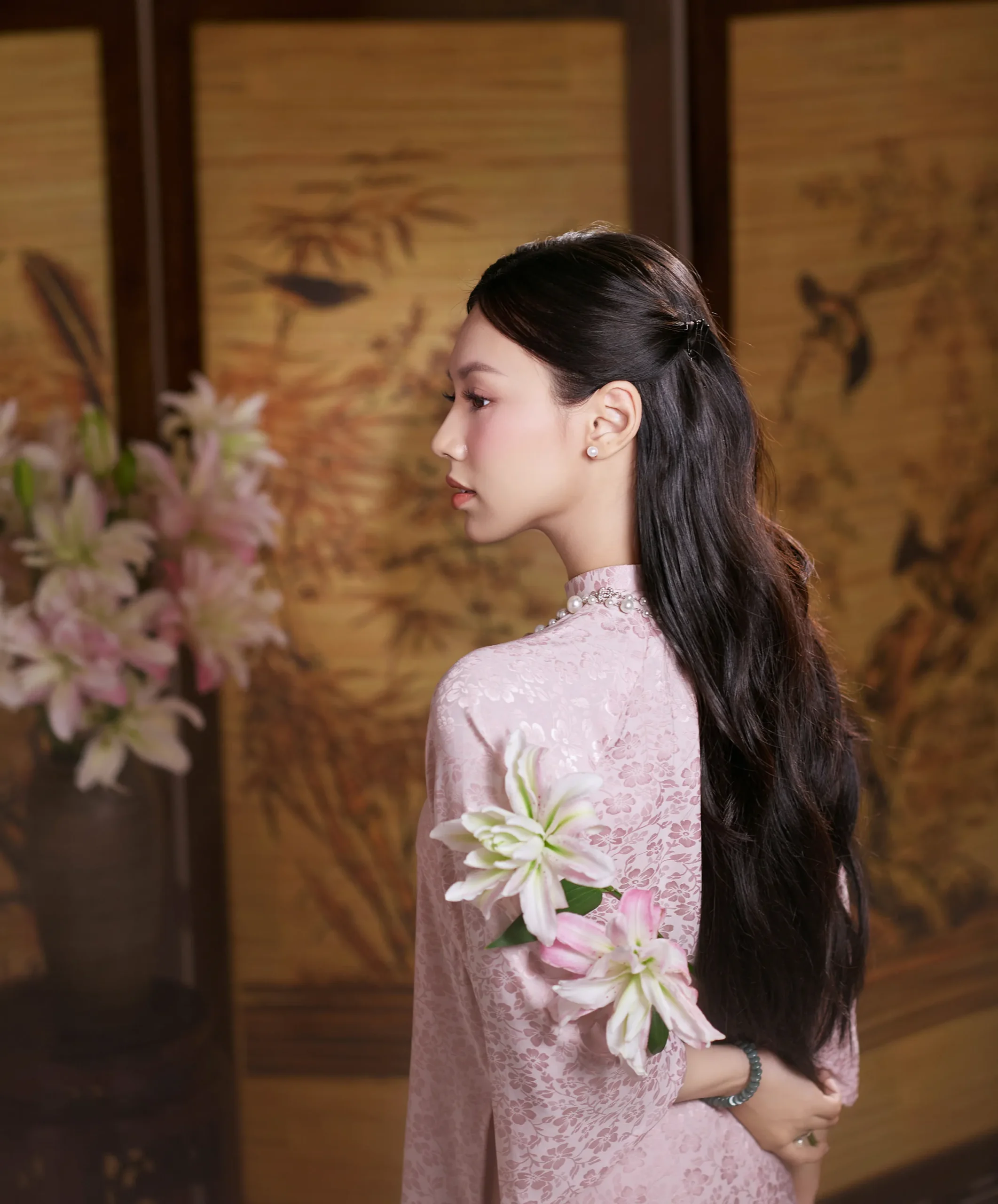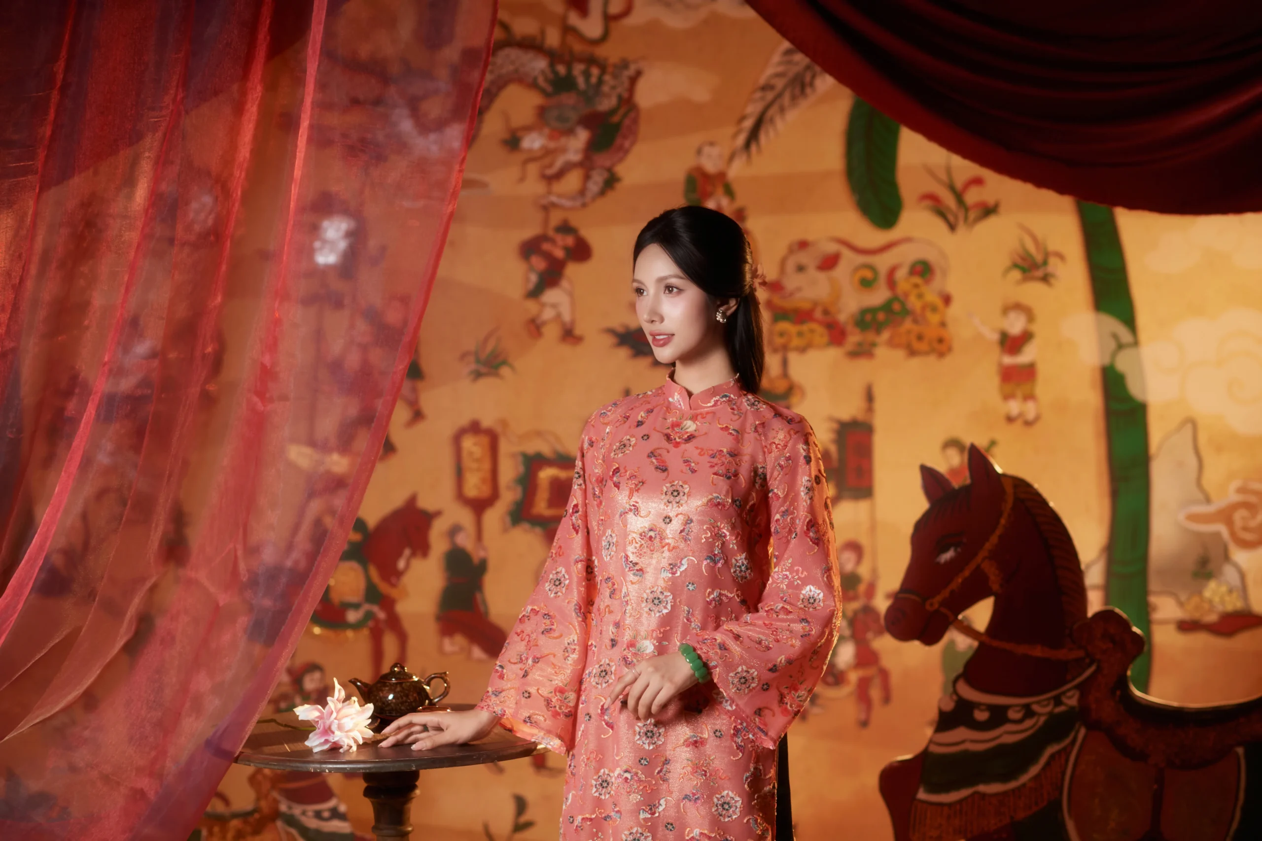 Lấy cảm hứng từ tranh lụa Việt Nam những năm 30, nơi vẻ đẹp người phụ nữ được tôn vinh qua sự nền nã và thanh tao. Ánh sáng trong concept này được set-up mềm mại, mờ ảo như hư như thực, tôn lên tà áo dài thướt tha và cốt cách dịu dàng của nàng thơ. Đây là lựa chọn hoàn hảo cho những quý cô yêu thích sự tĩnh lặng và chiều sâu trong tâm hồn