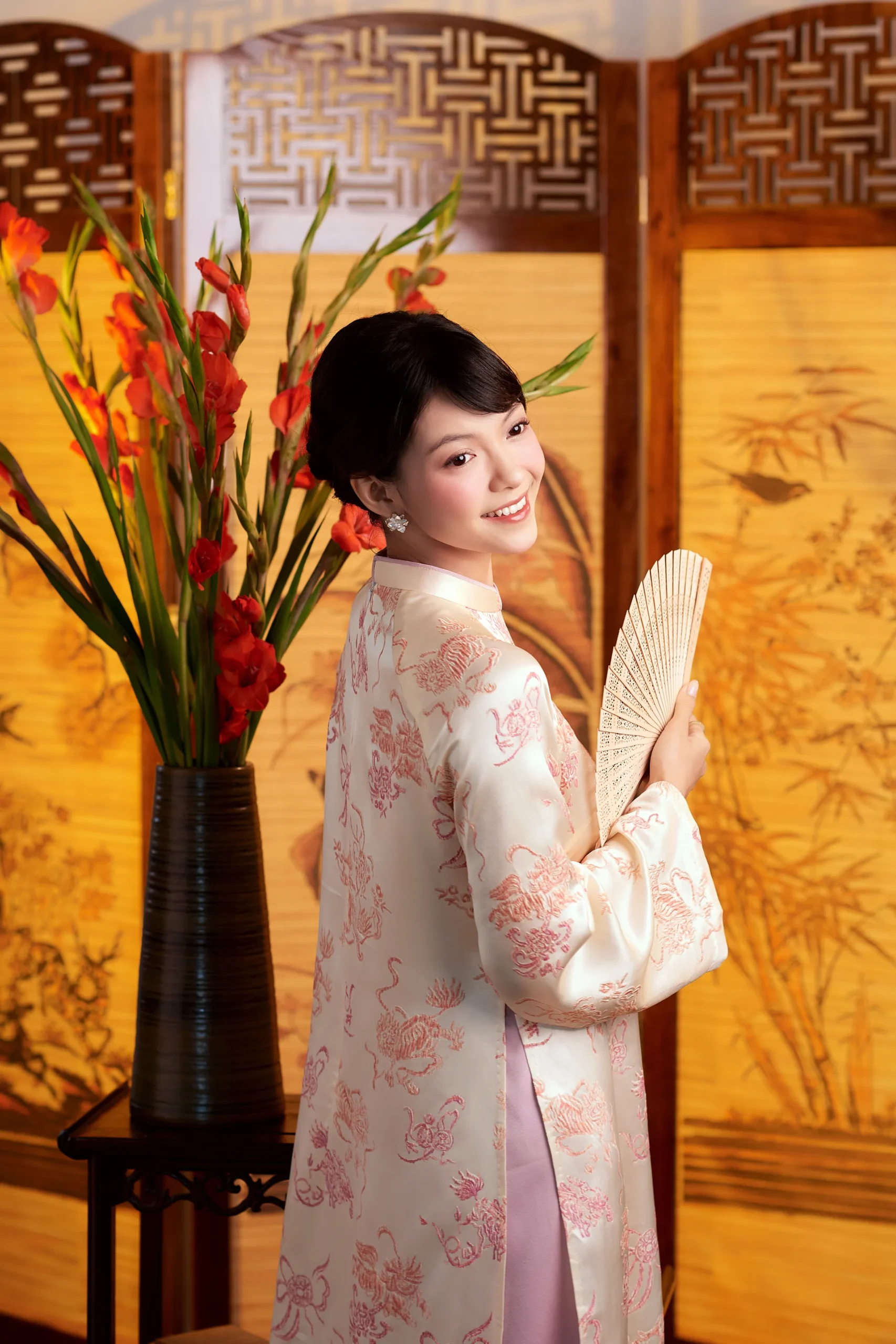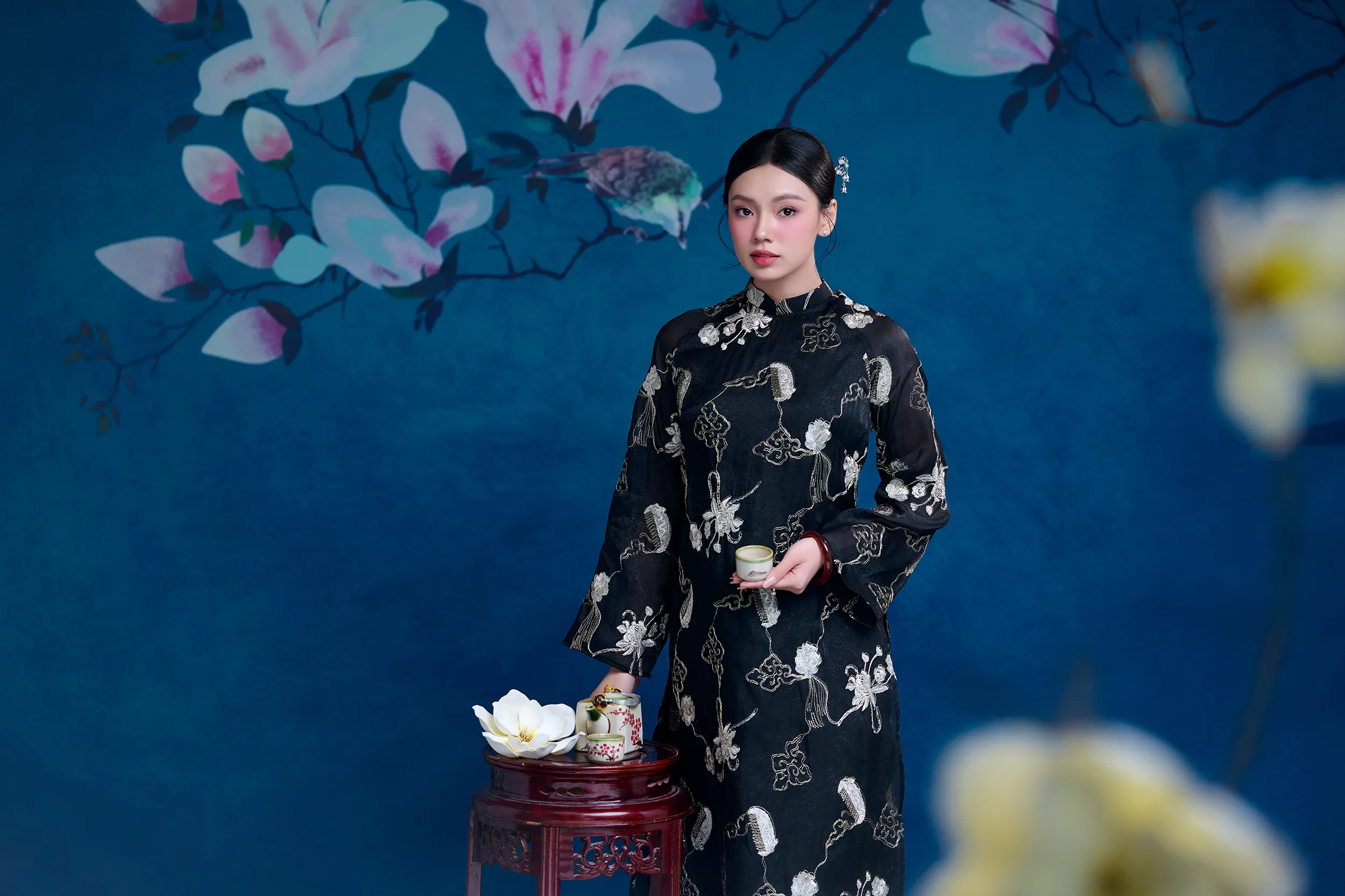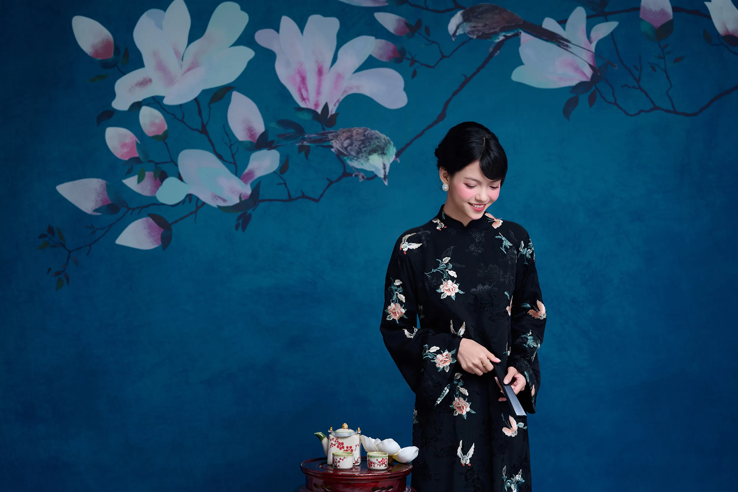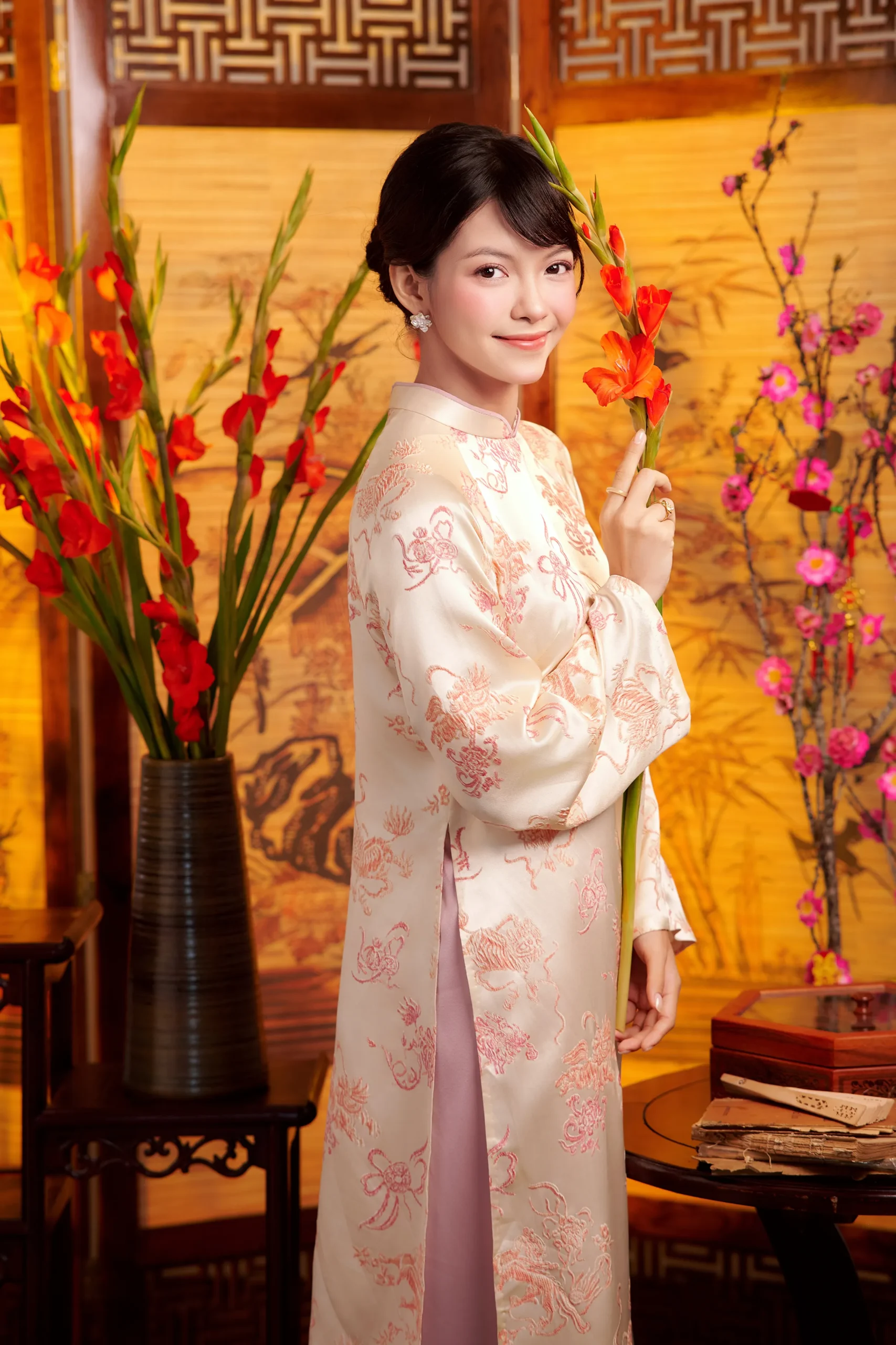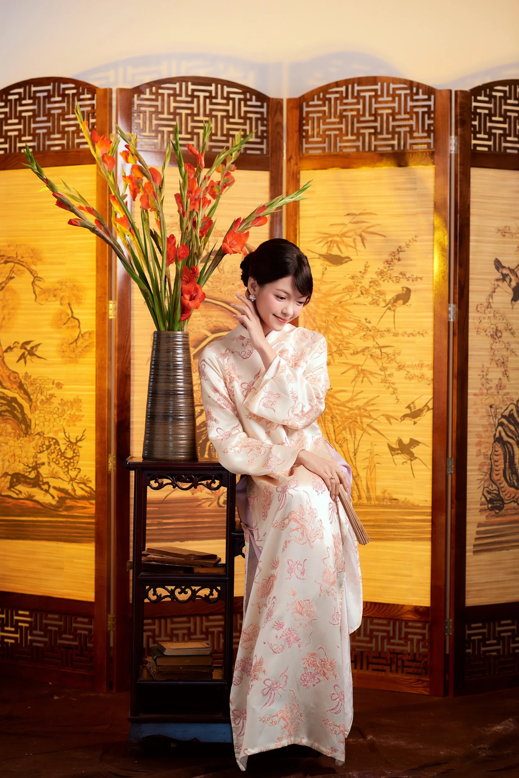 Lấy cảm hứng từ tranh lụa Việt Nam những năm 30, nơi vẻ đẹp người phụ nữ được tôn vinh qua sự nền nã và thanh tao. Ánh sáng trong concept này được set-up mềm mại, mờ ảo như hư như thực, tôn lên tà áo dài thướt tha và cốt cách dịu dàng của nàng thơ. Đây là lựa chọn hoàn hảo cho những quý cô yêu thích sự tĩnh lặng và chiều sâu trong tâm hồn
