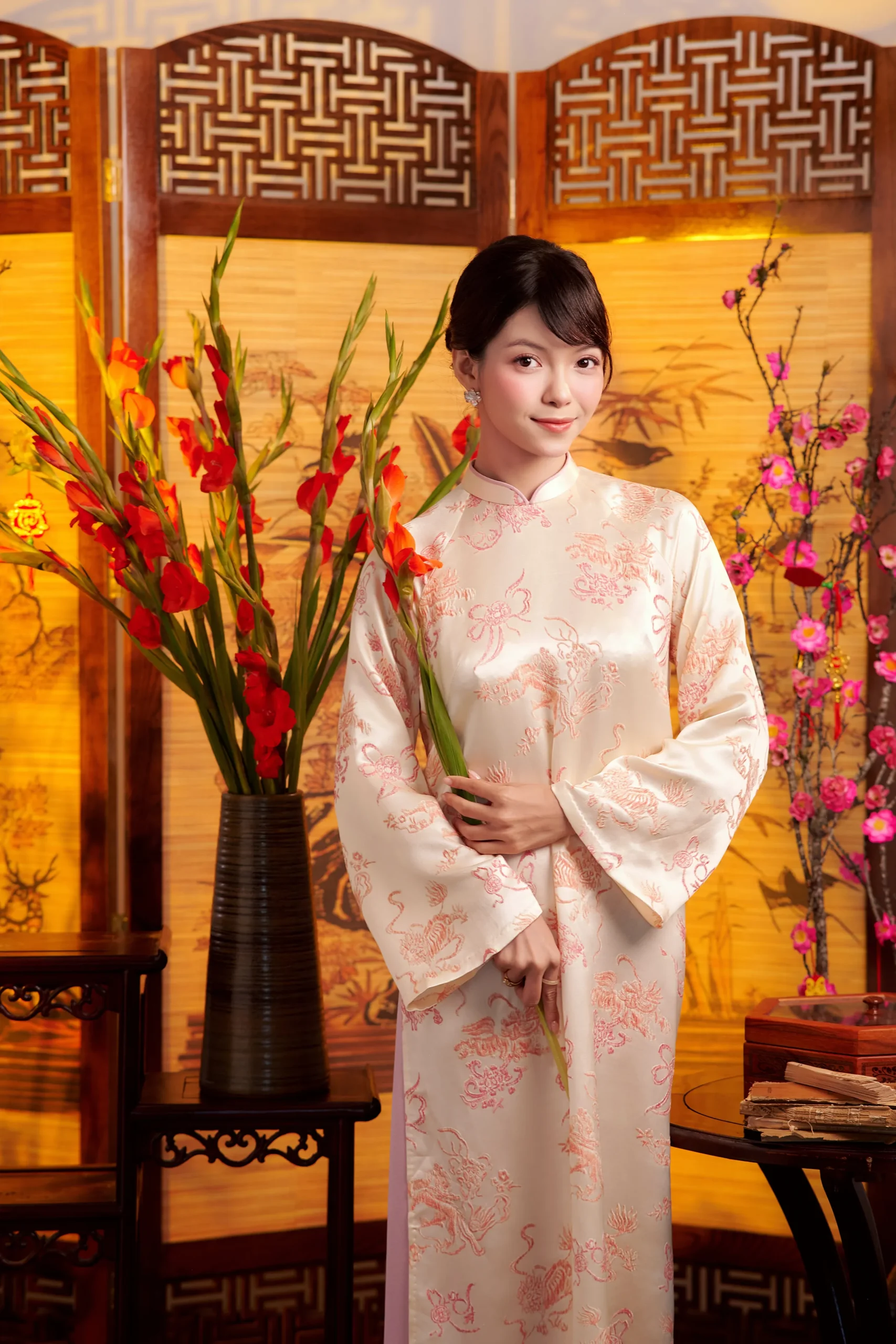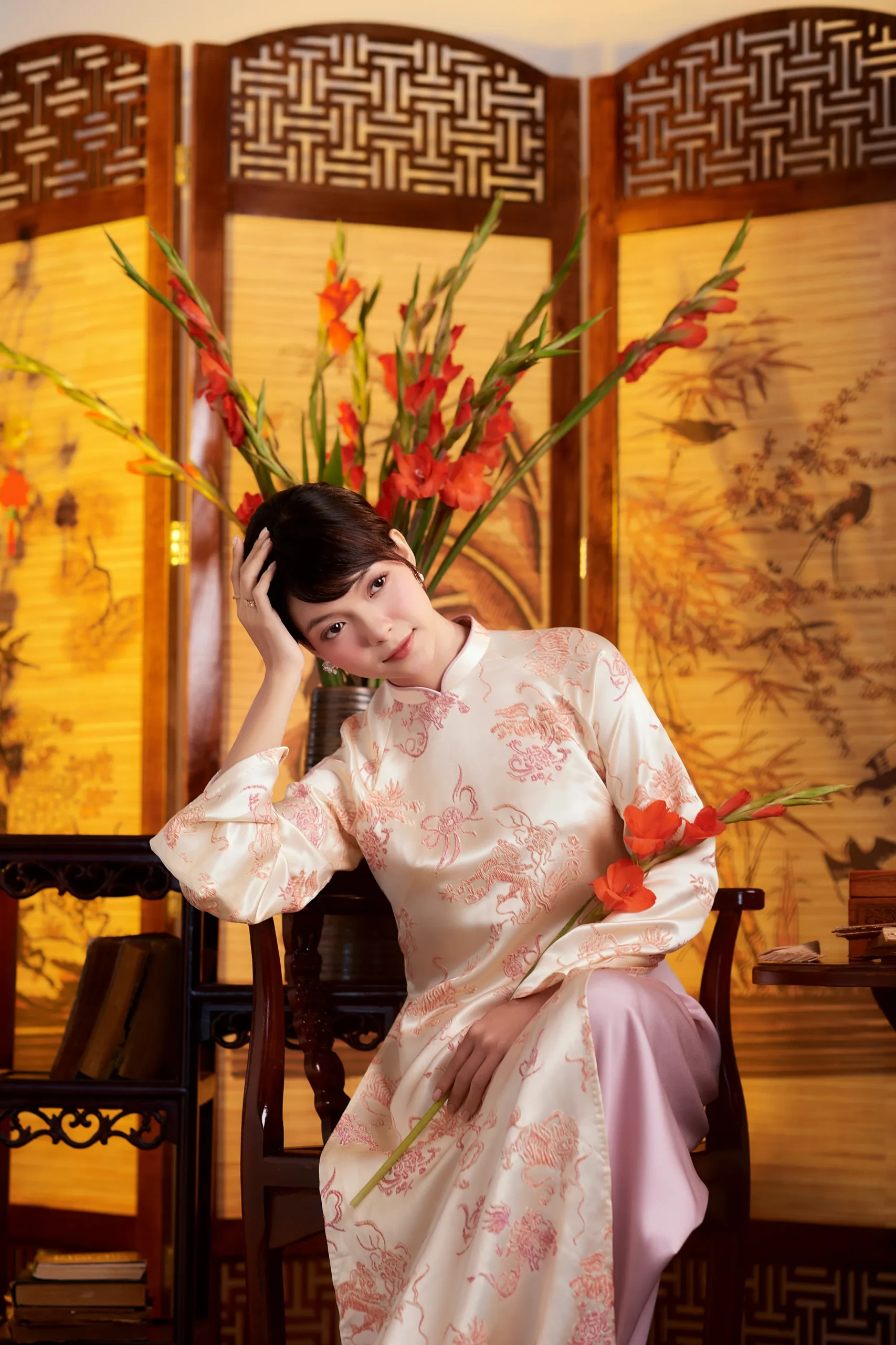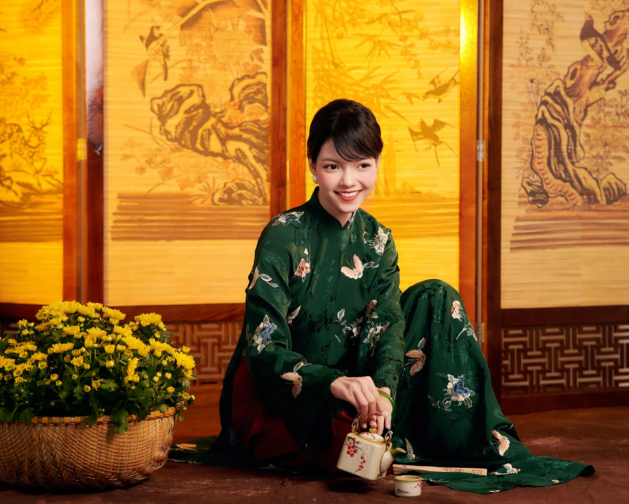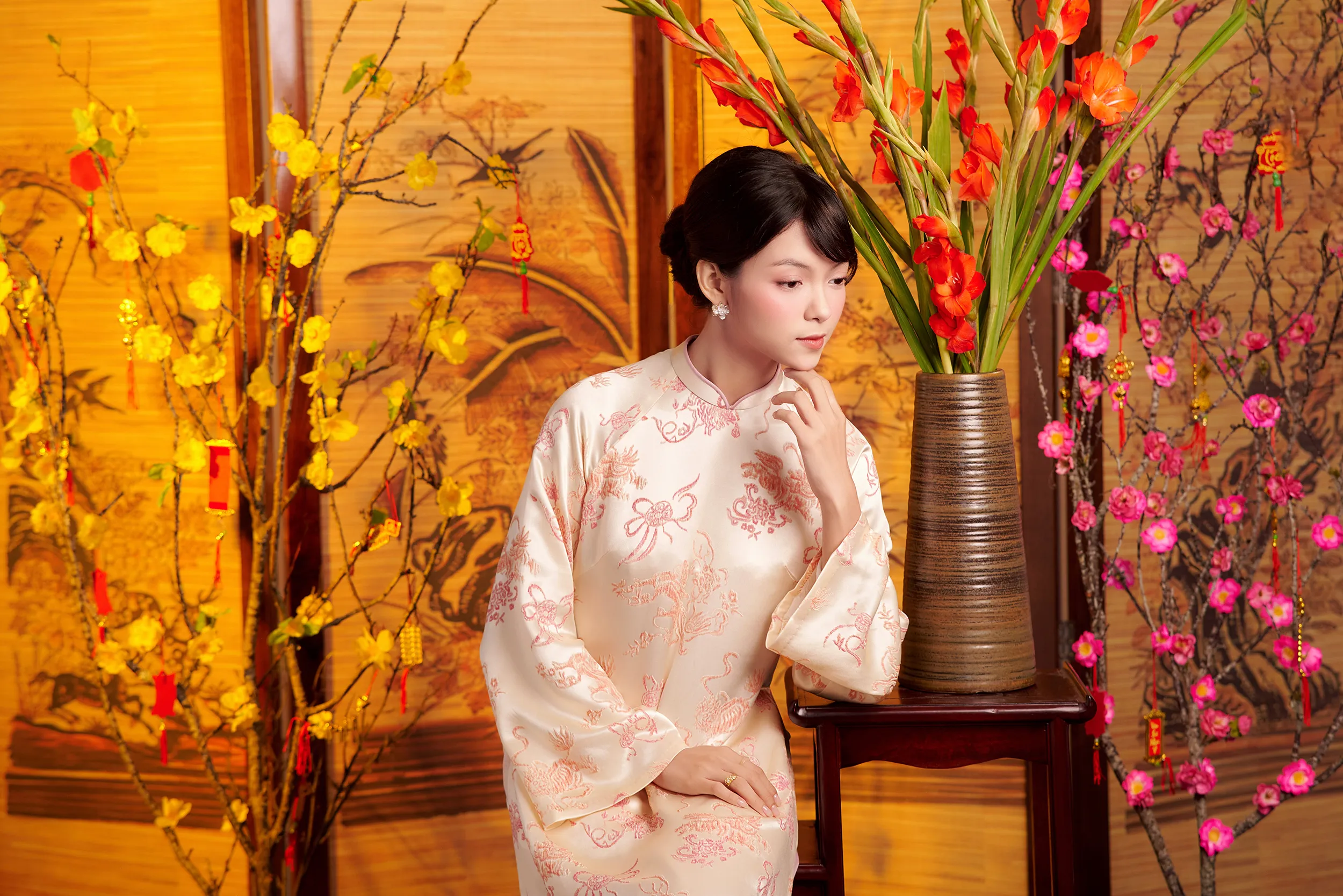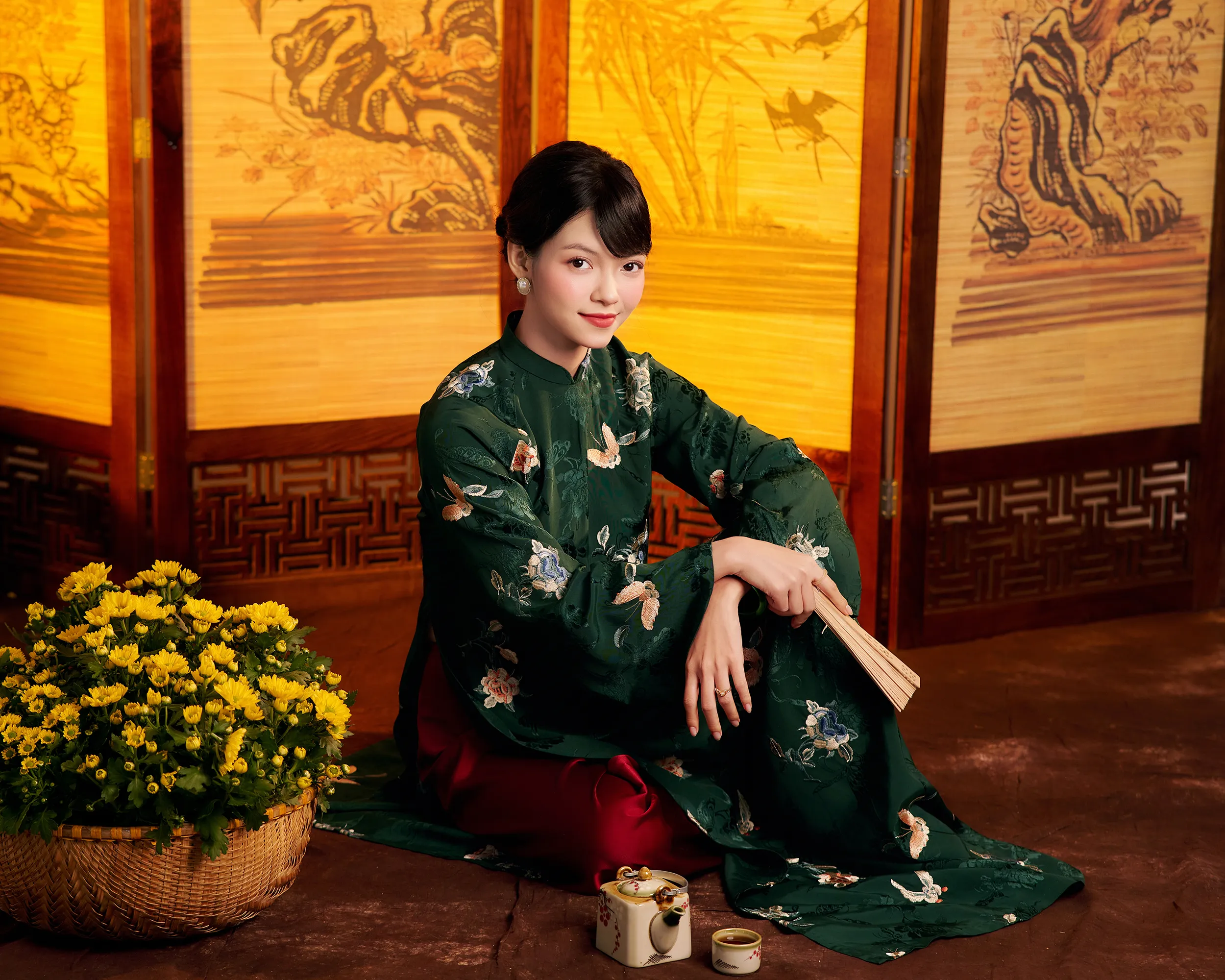 Lấy cảm hứng từ tranh lụa Việt Nam những năm 30, nơi vẻ đẹp người phụ nữ được tôn vinh qua sự nền nã và thanh tao. Ánh sáng trong concept này được set-up mềm mại, mờ ảo như hư như thực, tôn lên tà áo dài thướt tha và cốt cách dịu dàng của nàng thơ. Đây là lựa chọn hoàn hảo cho những quý cô yêu thích sự tĩnh lặng và chiều sâu trong tâm hồn