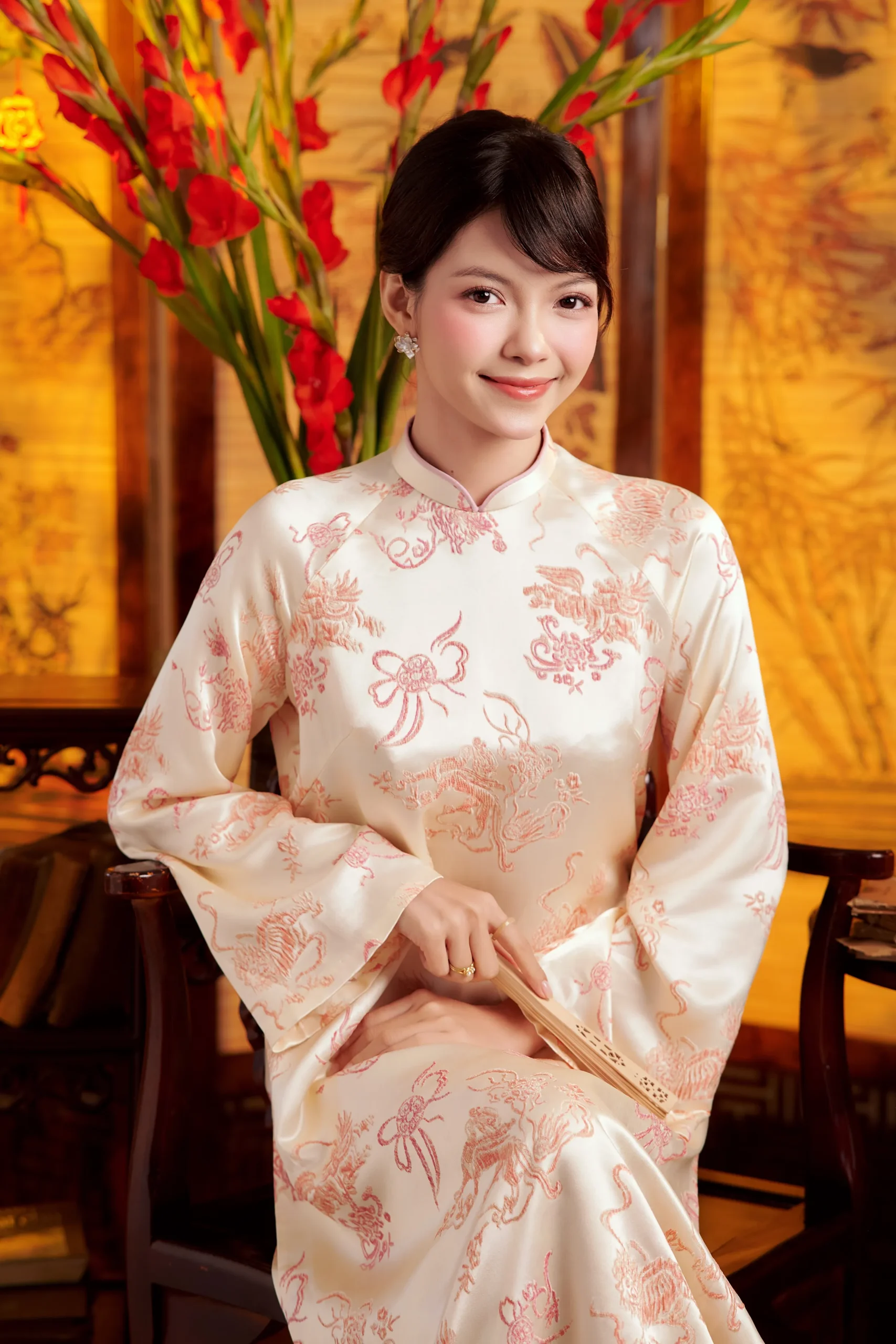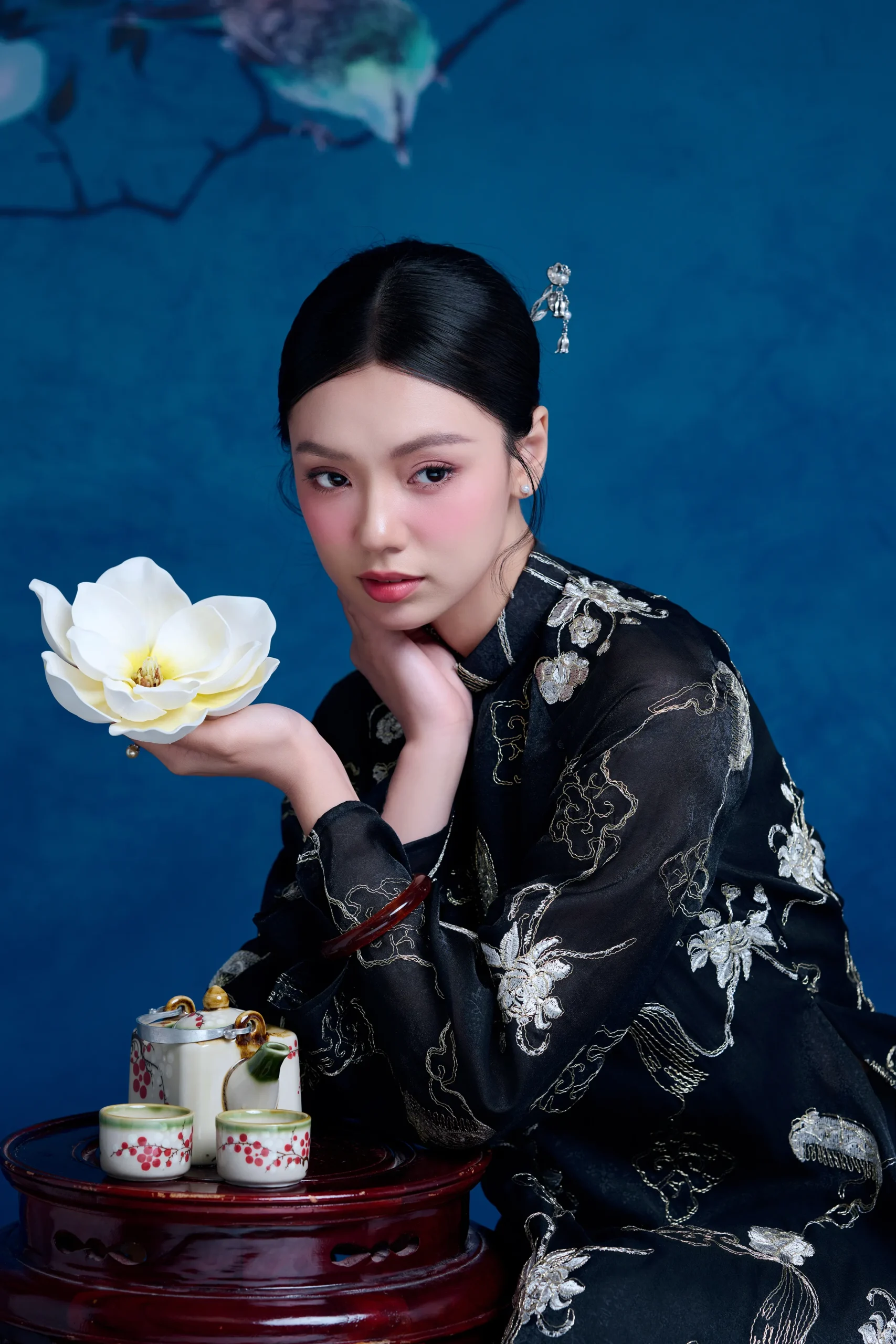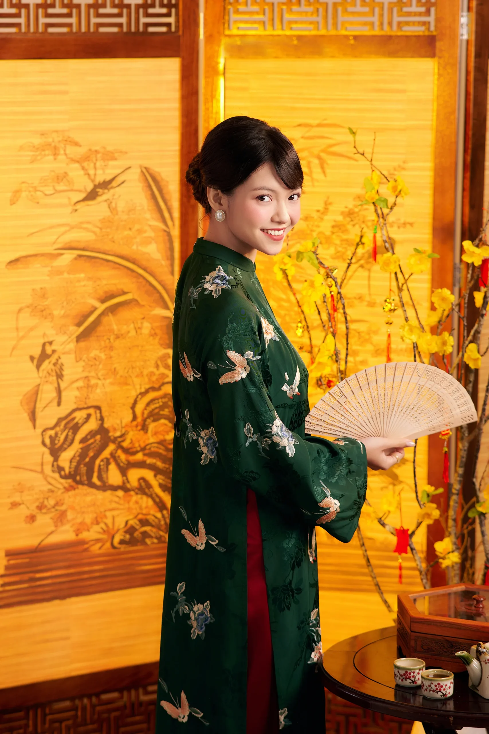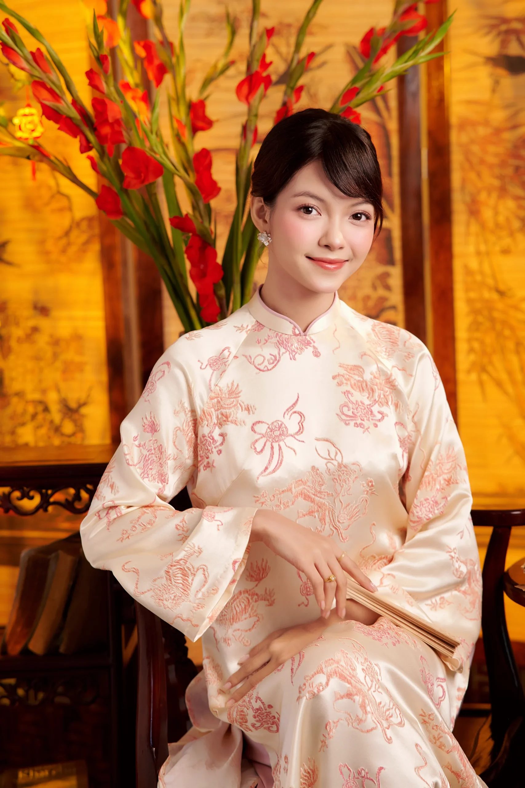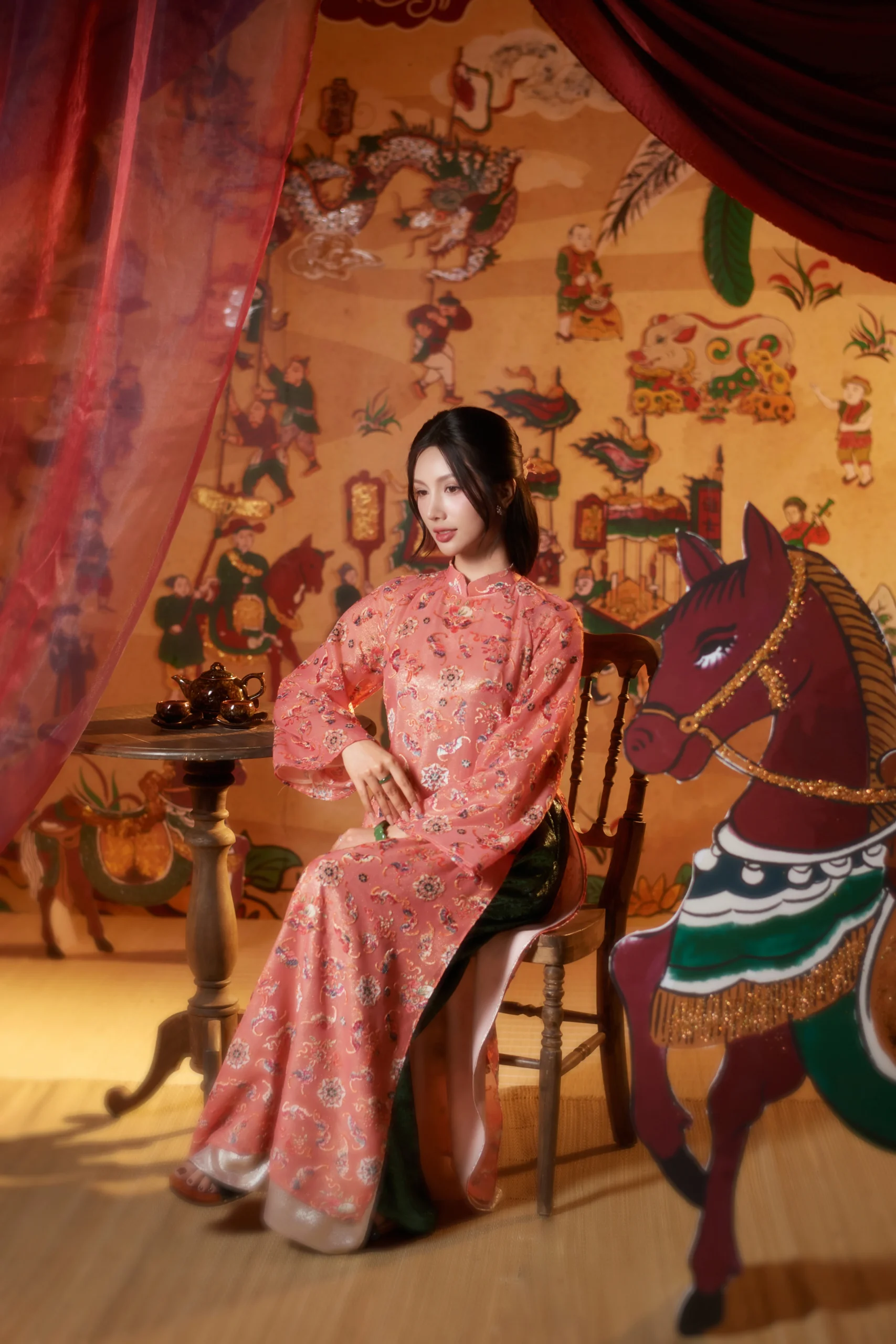 Lấy cảm hứng từ tranh lụa Việt Nam những năm 30, nơi vẻ đẹp người phụ nữ được tôn vinh qua sự nền nã và thanh tao. Ánh sáng trong concept này được set-up mềm mại, mờ ảo như hư như thực, tôn lên tà áo dài thướt tha và cốt cách dịu dàng của nàng thơ. Đây là lựa chọn hoàn hảo cho những quý cô yêu thích sự tĩnh lặng và chiều sâu trong tâm hồn