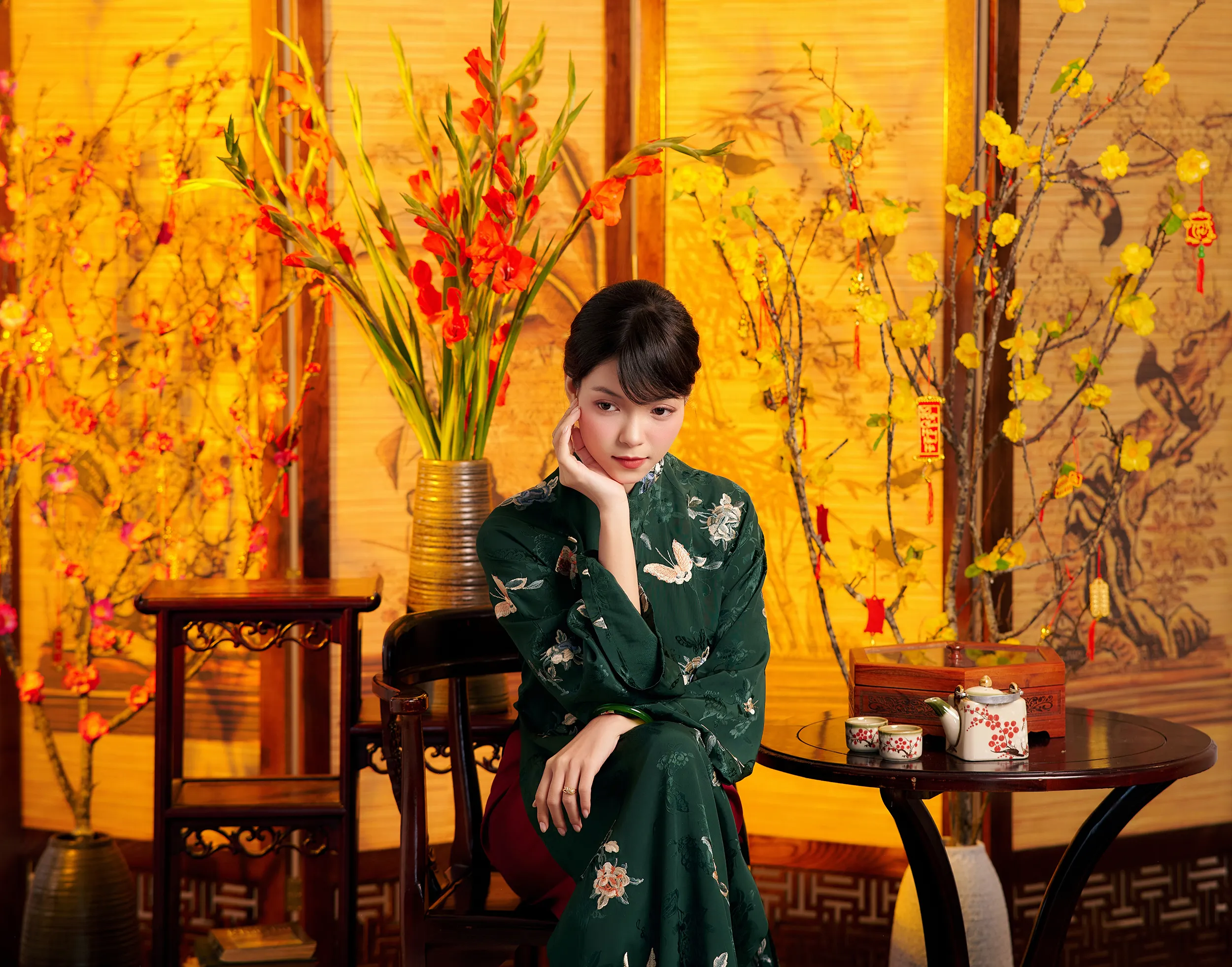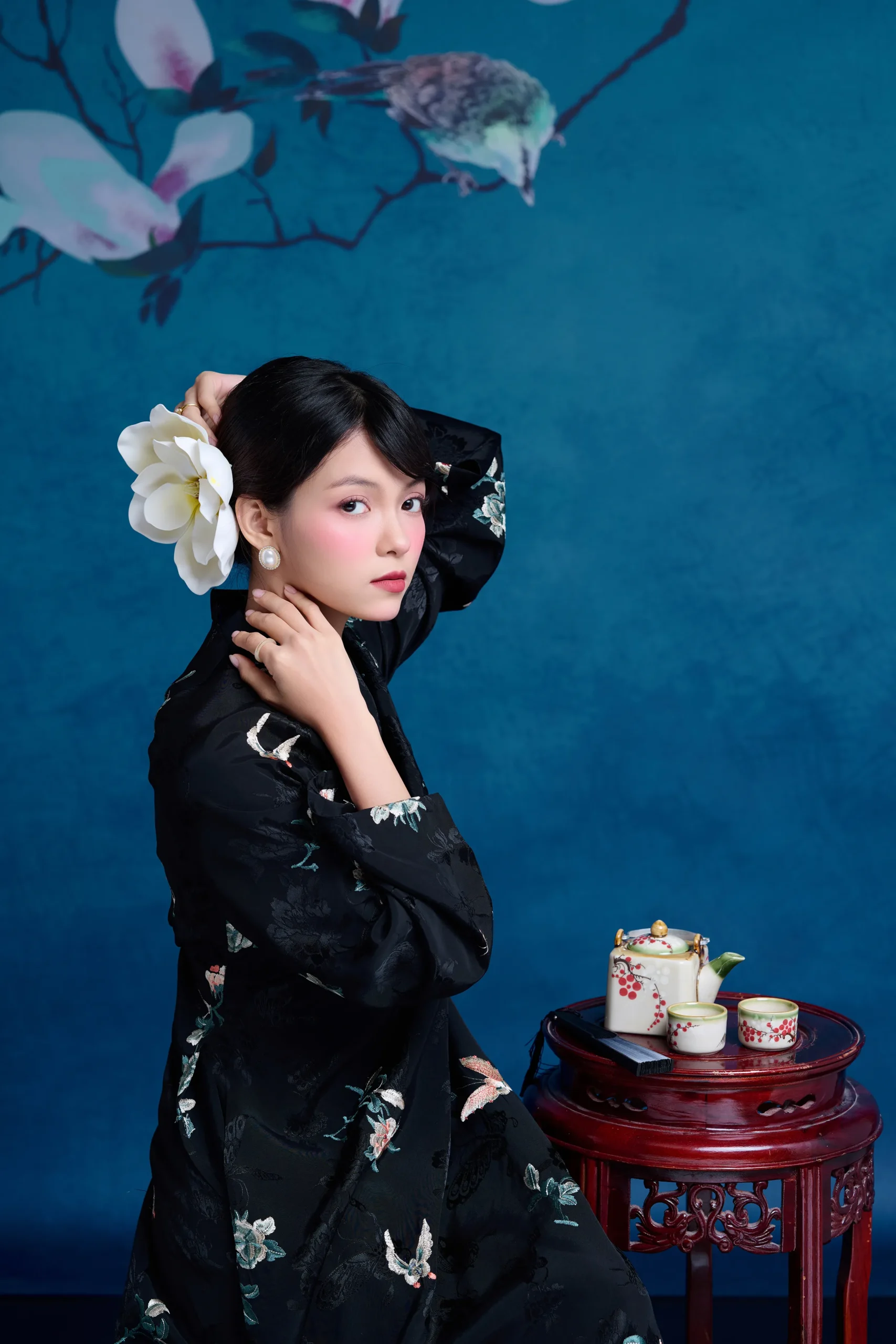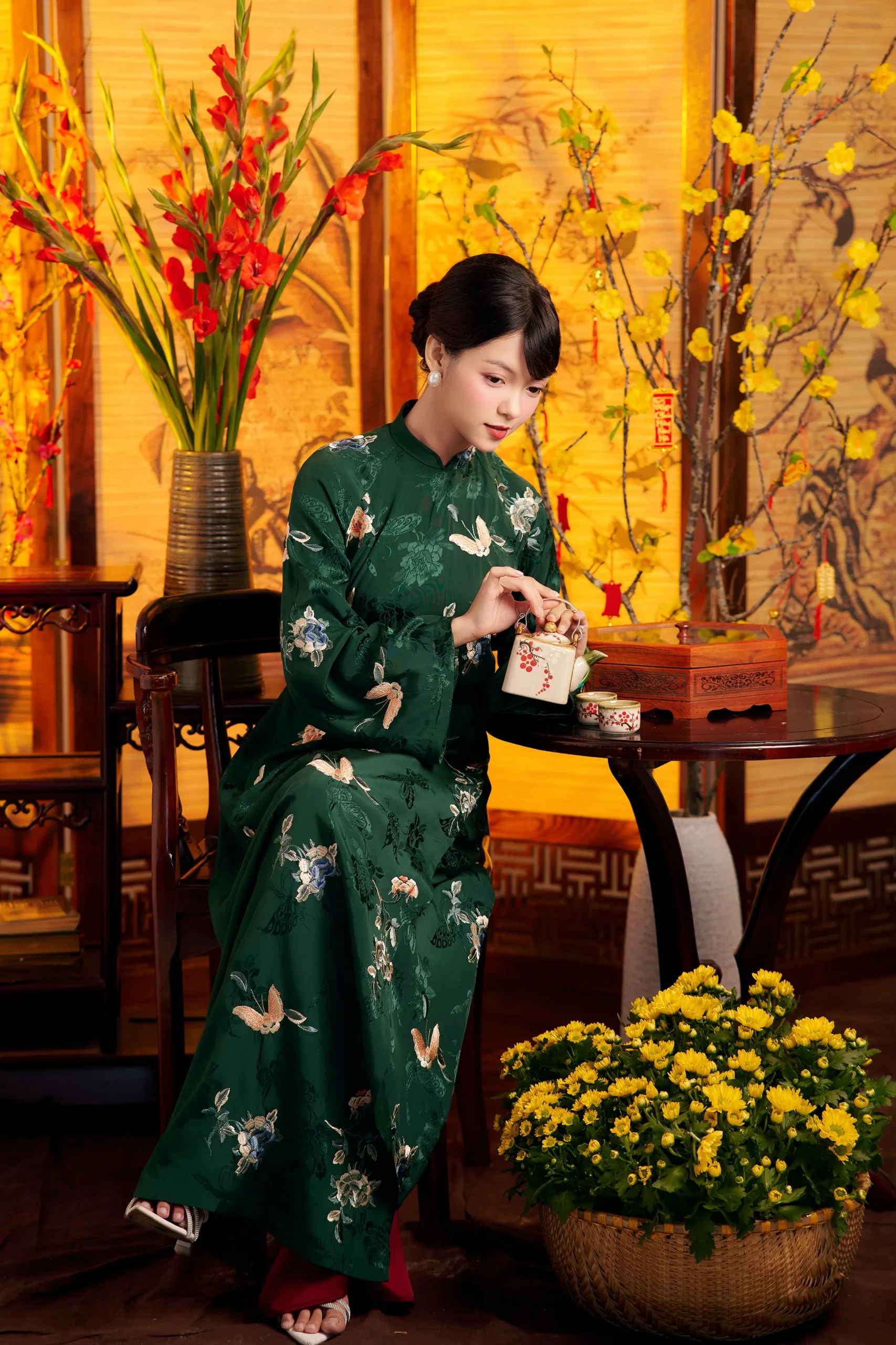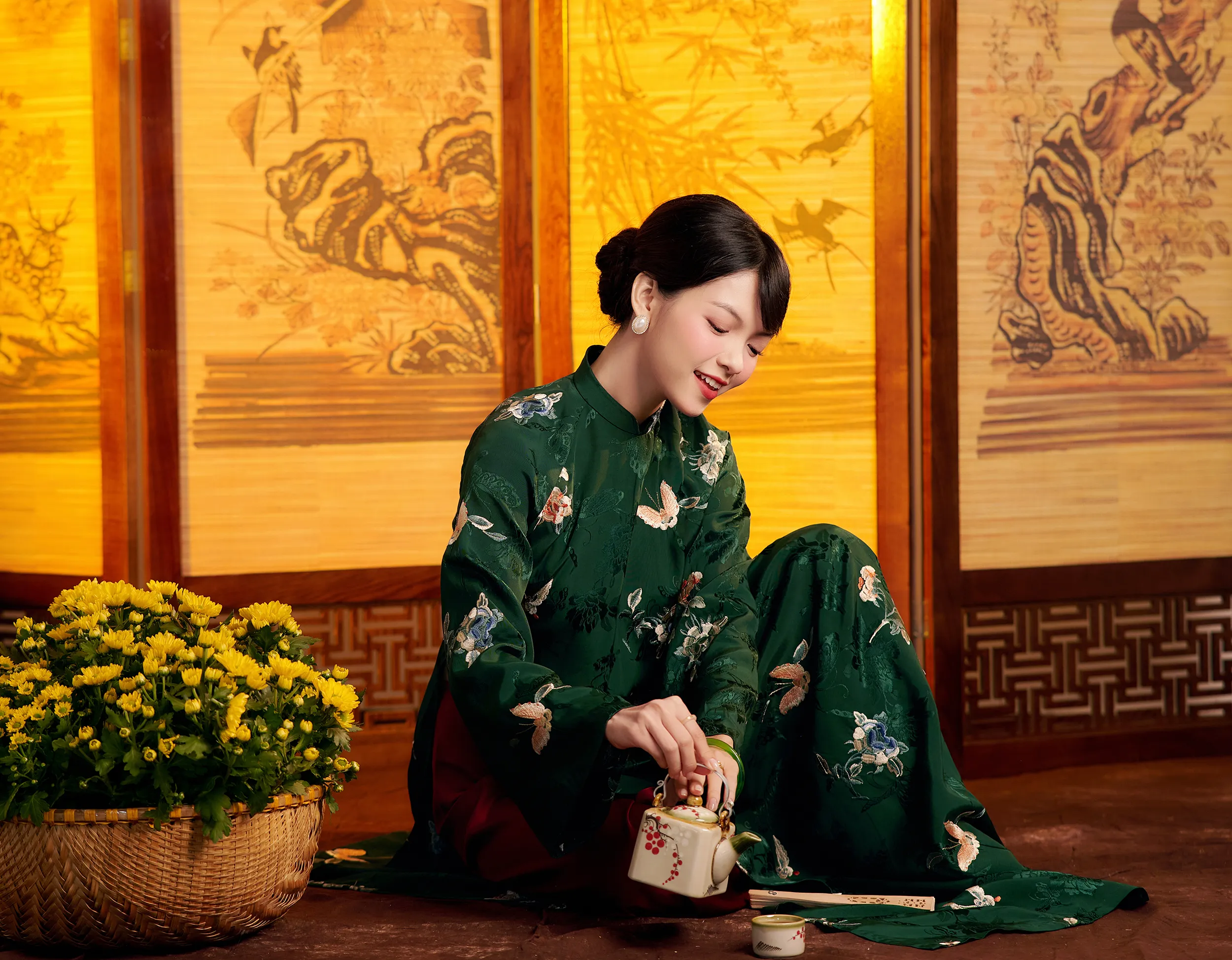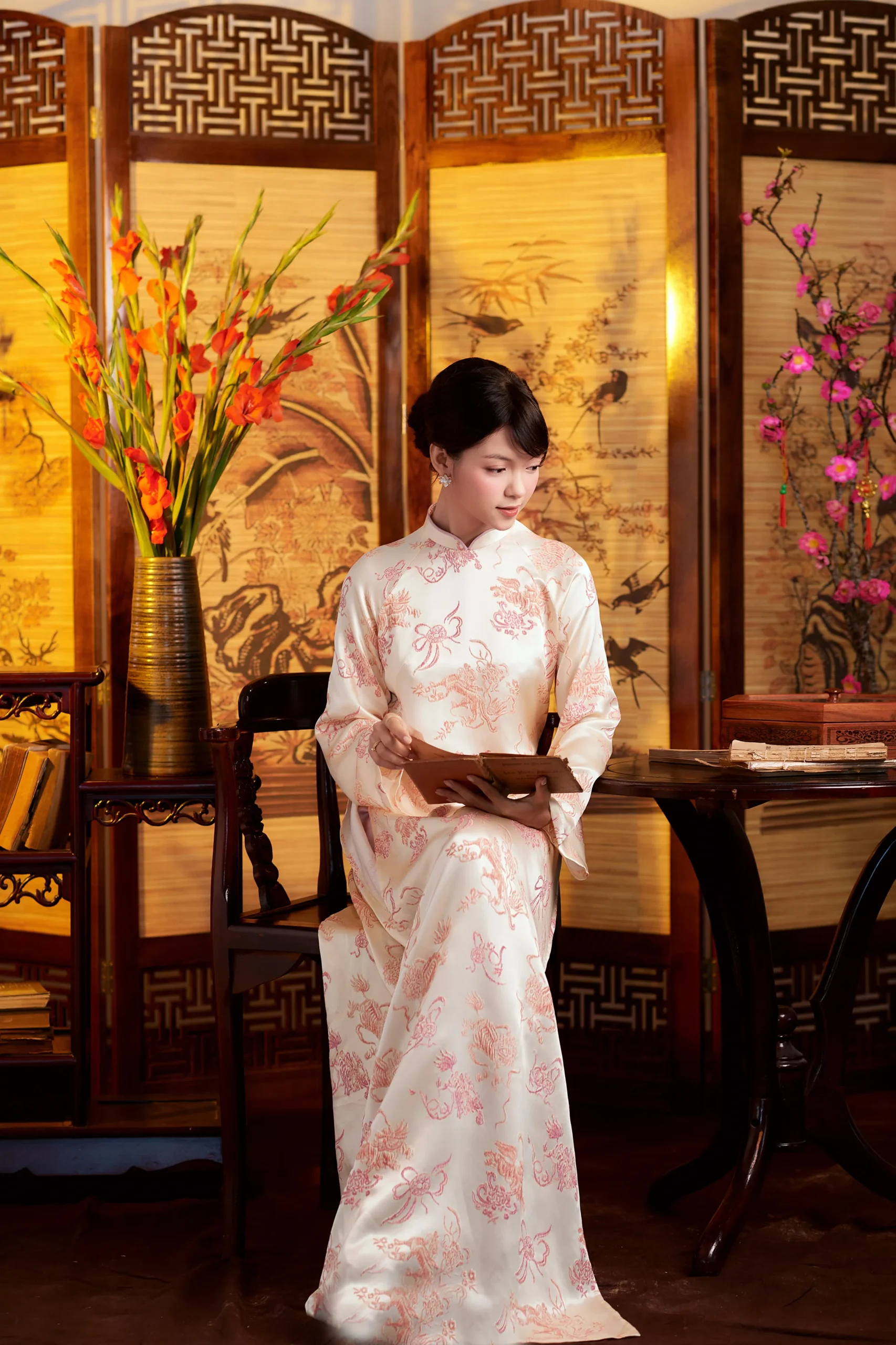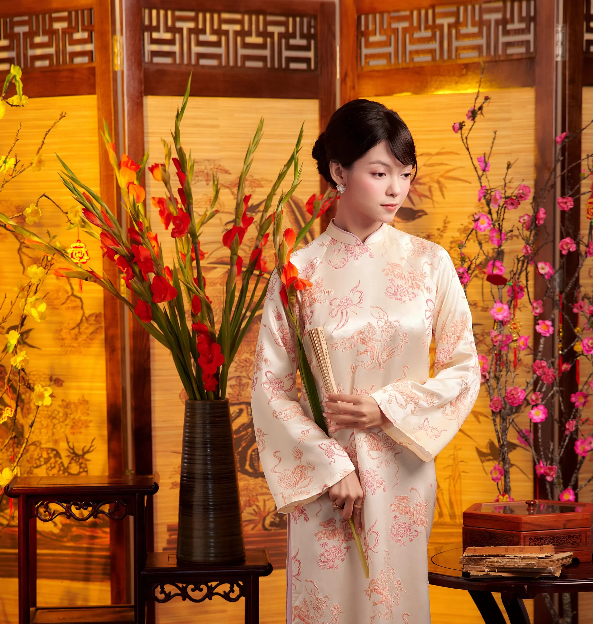 Lấy cảm hứng từ tranh lụa Việt Nam những năm 30, nơi vẻ đẹp người phụ nữ được tôn vinh qua sự nền nã và thanh tao. Ánh sáng trong concept này được set-up mềm mại, mờ ảo như hư như thực, tôn lên tà áo dài thướt tha và cốt cách dịu dàng của nàng thơ. Đây là lựa chọn hoàn hảo cho những quý cô yêu thích sự tĩnh lặng và chiều sâu trong tâm hồn