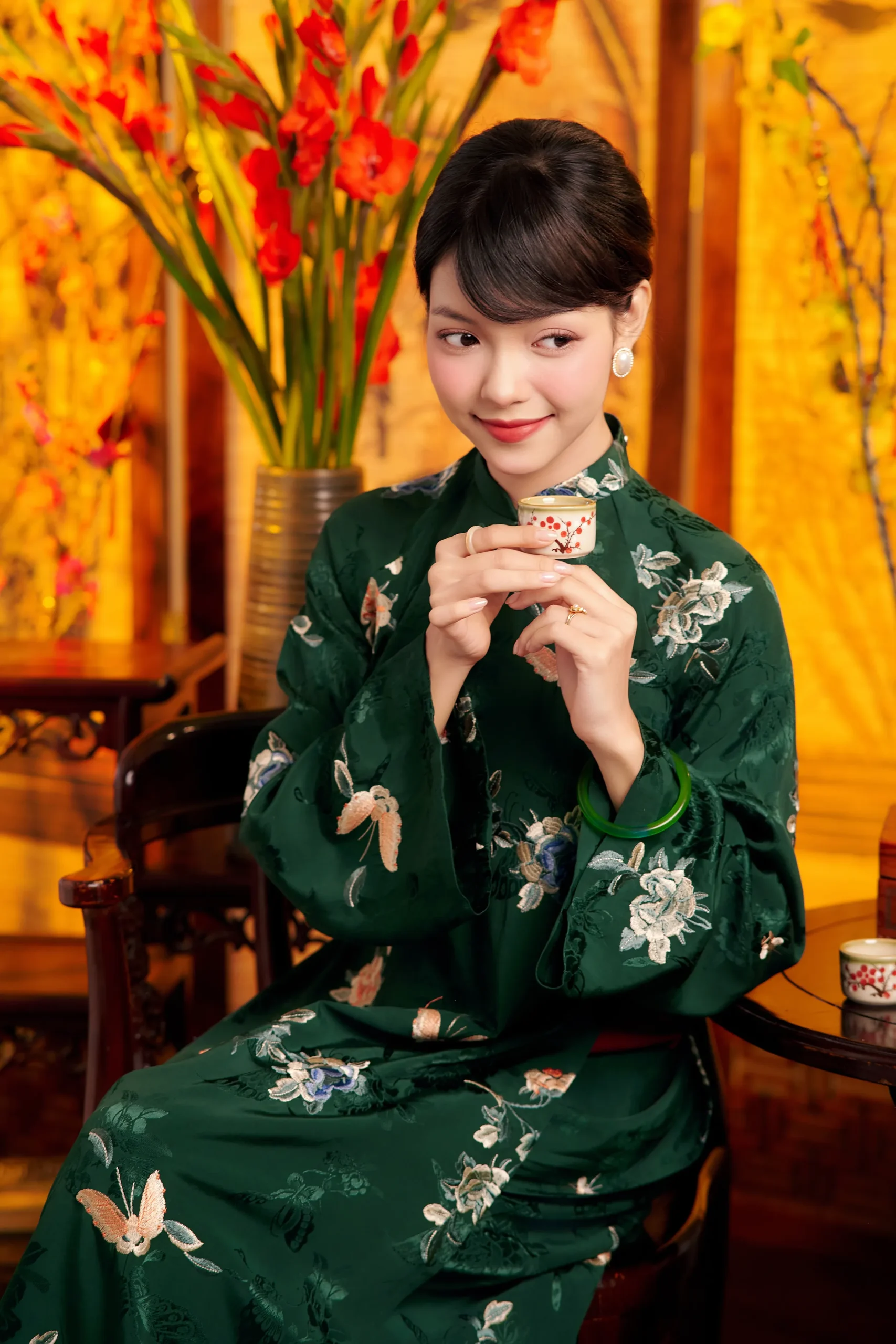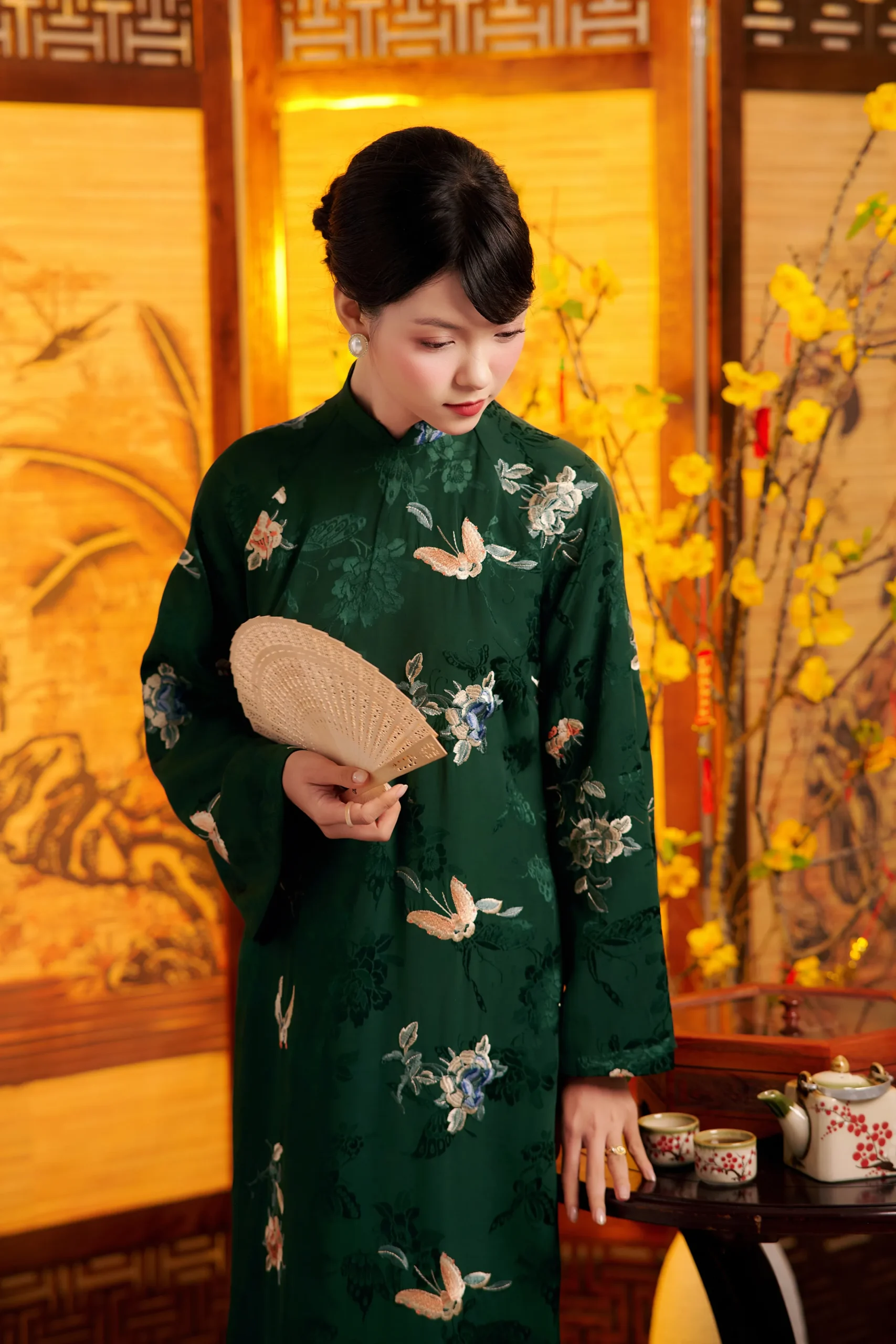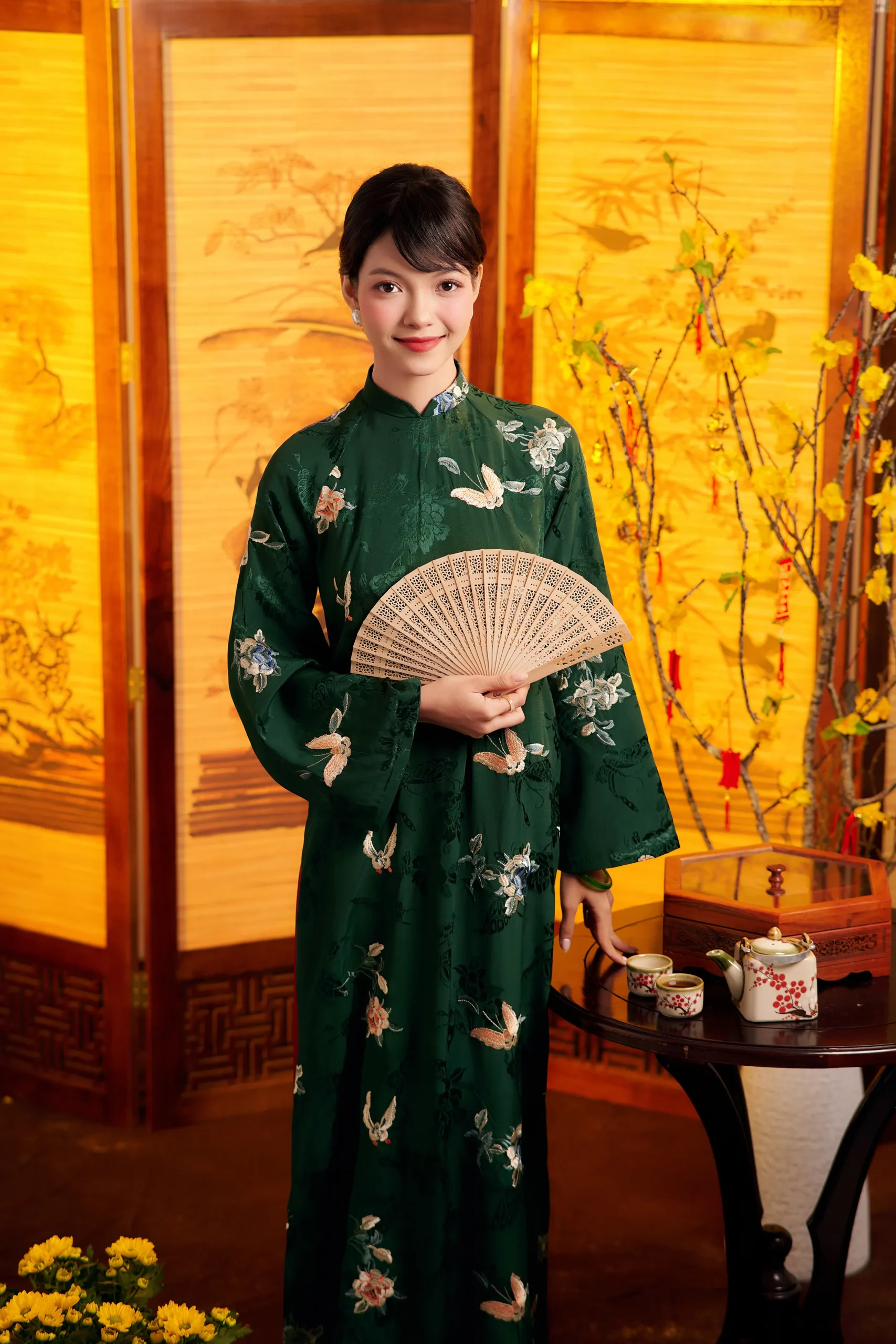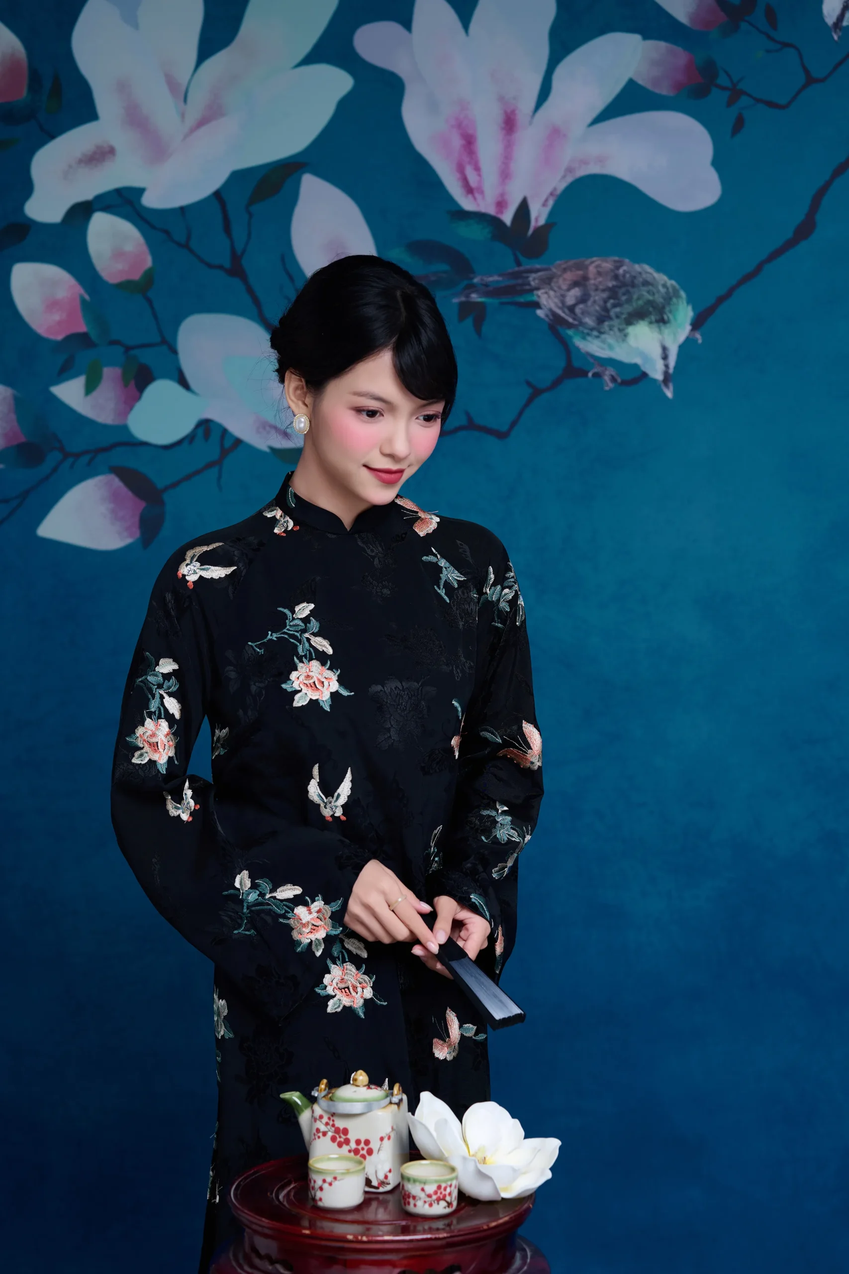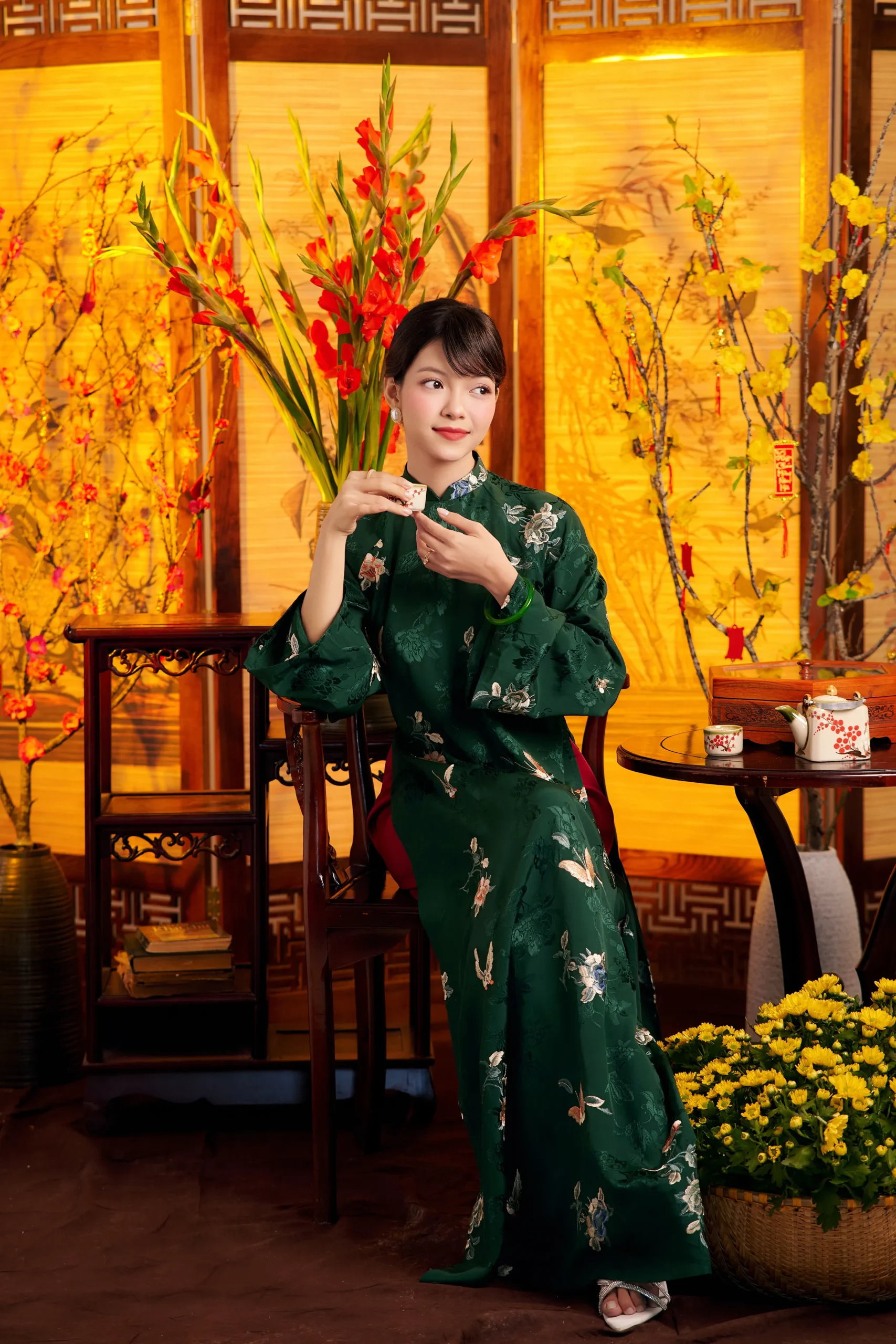 Lấy cảm hứng từ tranh lụa Việt Nam những năm 30, nơi vẻ đẹp người phụ nữ được tôn vinh qua sự nền nã và thanh tao. Ánh sáng trong concept này được set-up mềm mại, mờ ảo như hư như thực, tôn lên tà áo dài thướt tha và cốt cách dịu dàng của nàng thơ. Đây là lựa chọn hoàn hảo cho những quý cô yêu thích sự tĩnh lặng và chiều sâu trong tâm hồn