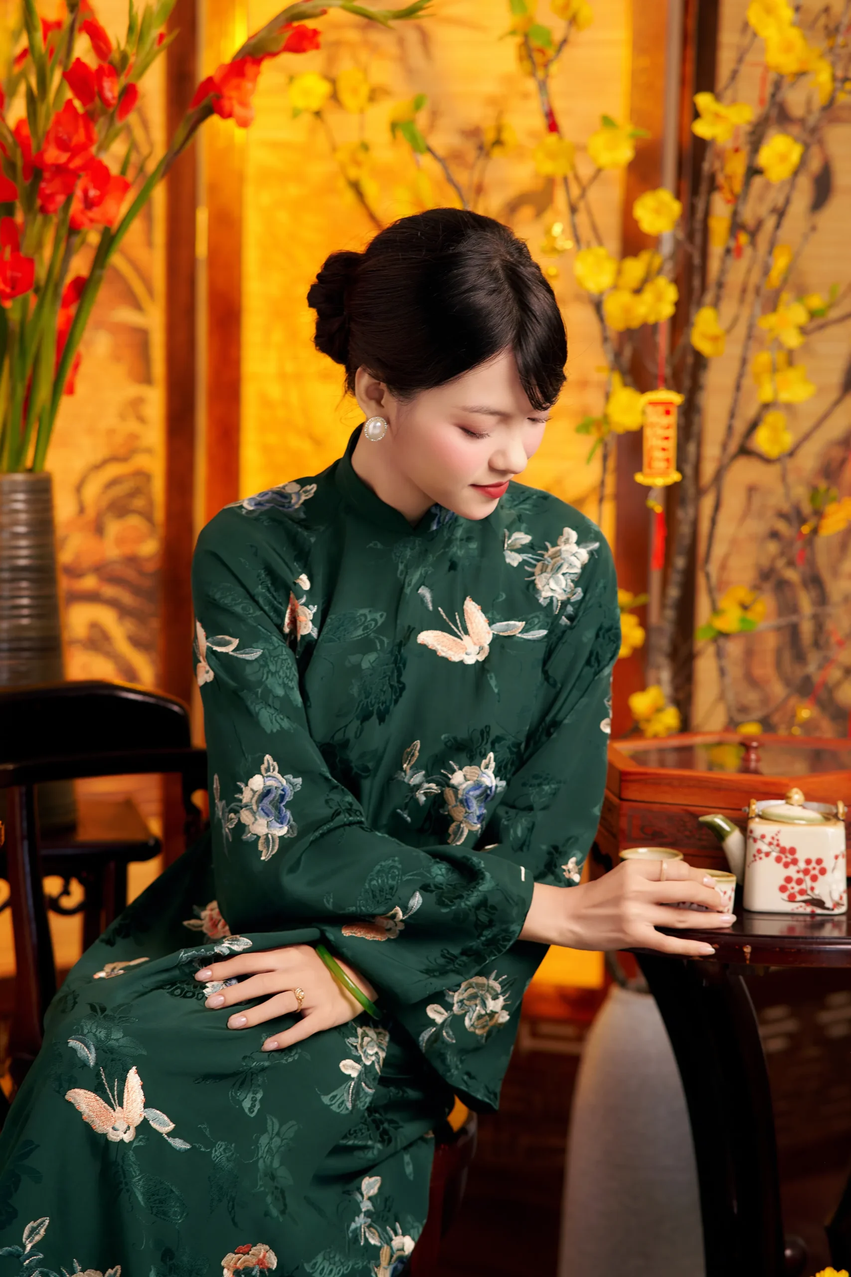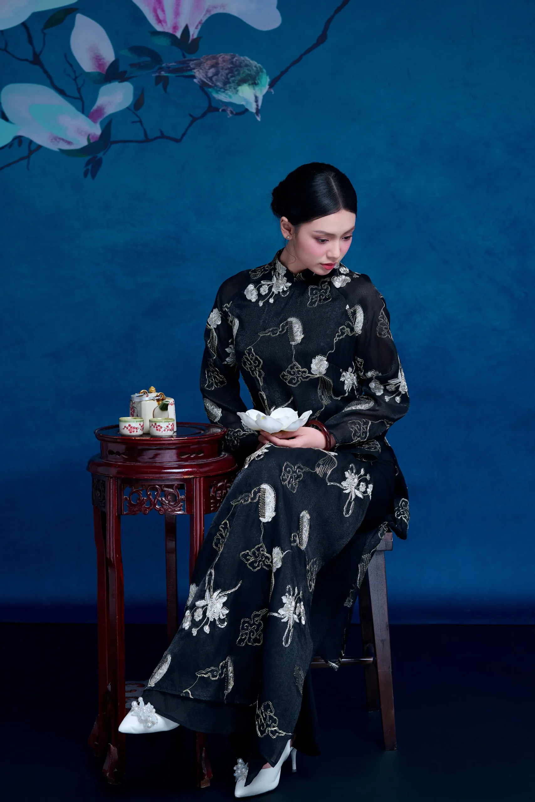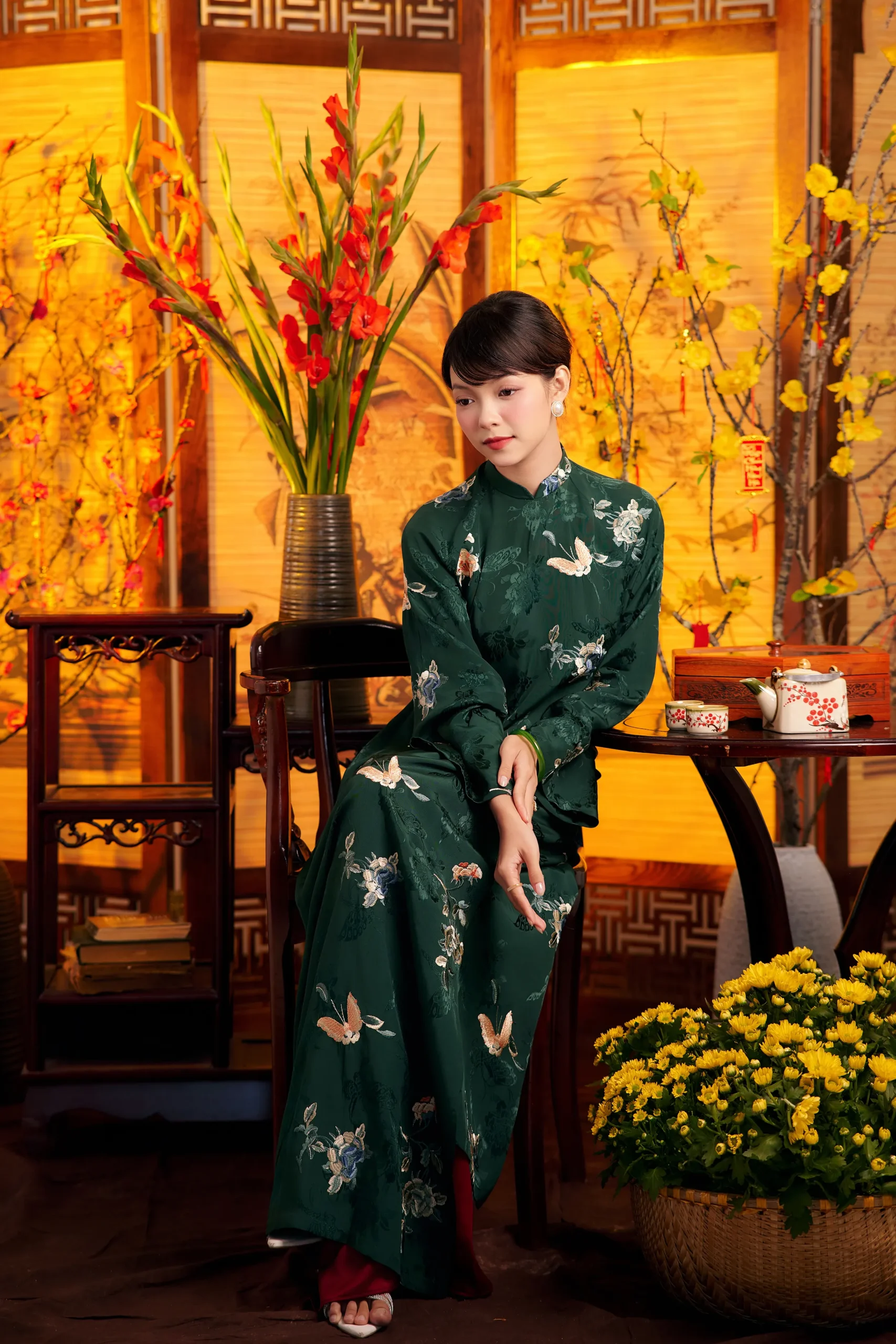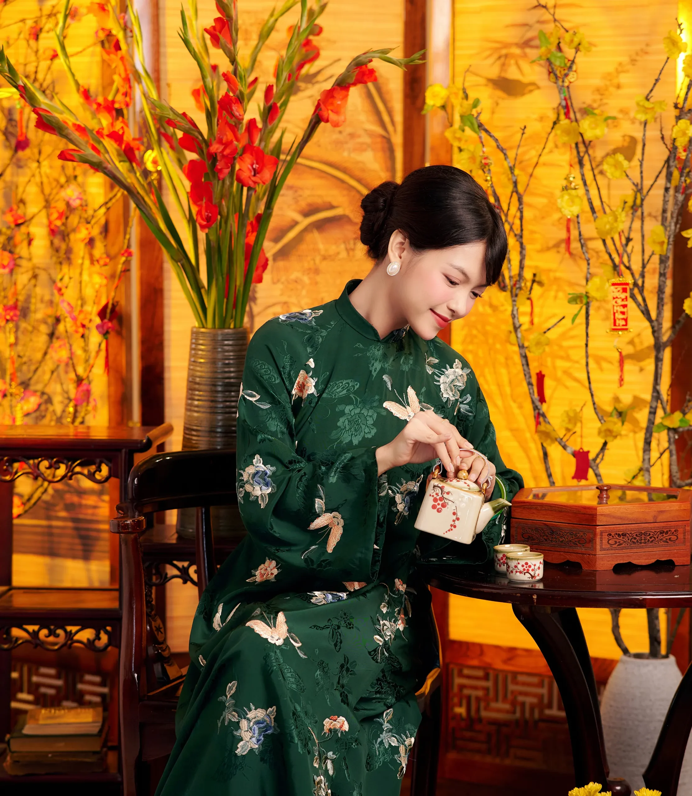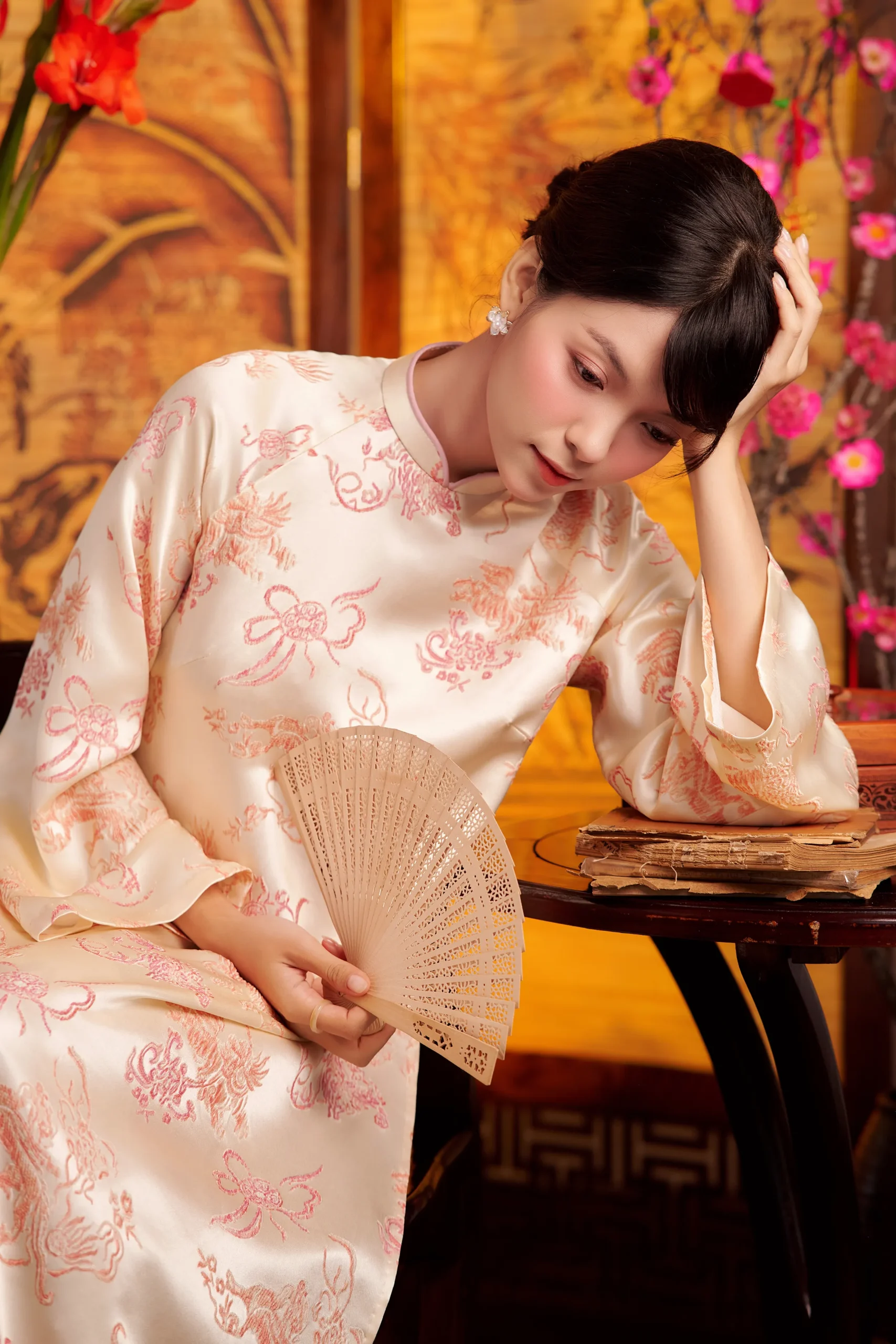 Lấy cảm hứng từ tranh lụa Việt Nam những năm 30, nơi vẻ đẹp người phụ nữ được tôn vinh qua sự nền nã và thanh tao. Ánh sáng trong concept này được set-up mềm mại, mờ ảo như hư như thực, tôn lên tà áo dài thướt tha và cốt cách dịu dàng của nàng thơ. Đây là lựa chọn hoàn hảo cho những quý cô yêu thích sự tĩnh lặng và chiều sâu trong tâm hồn