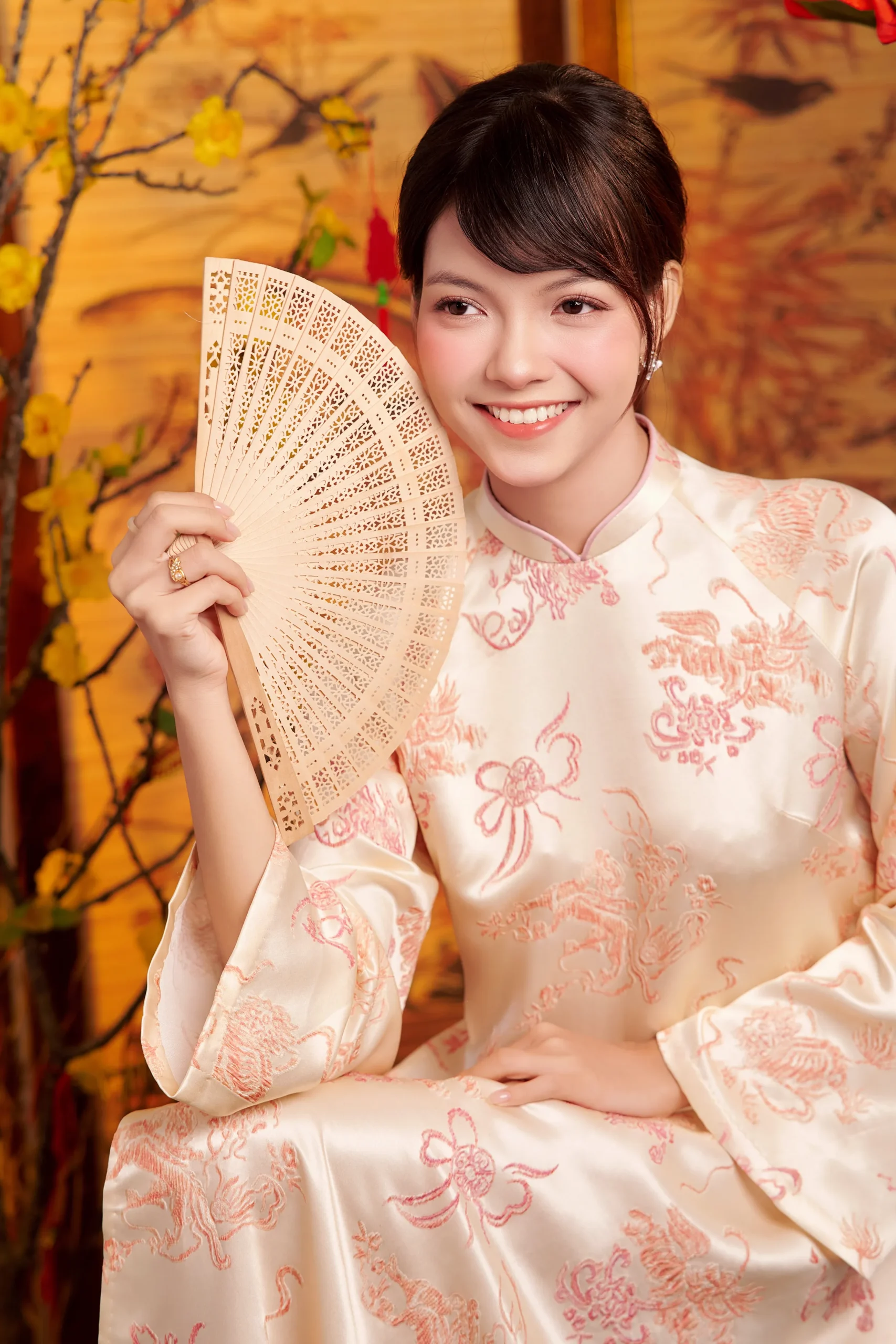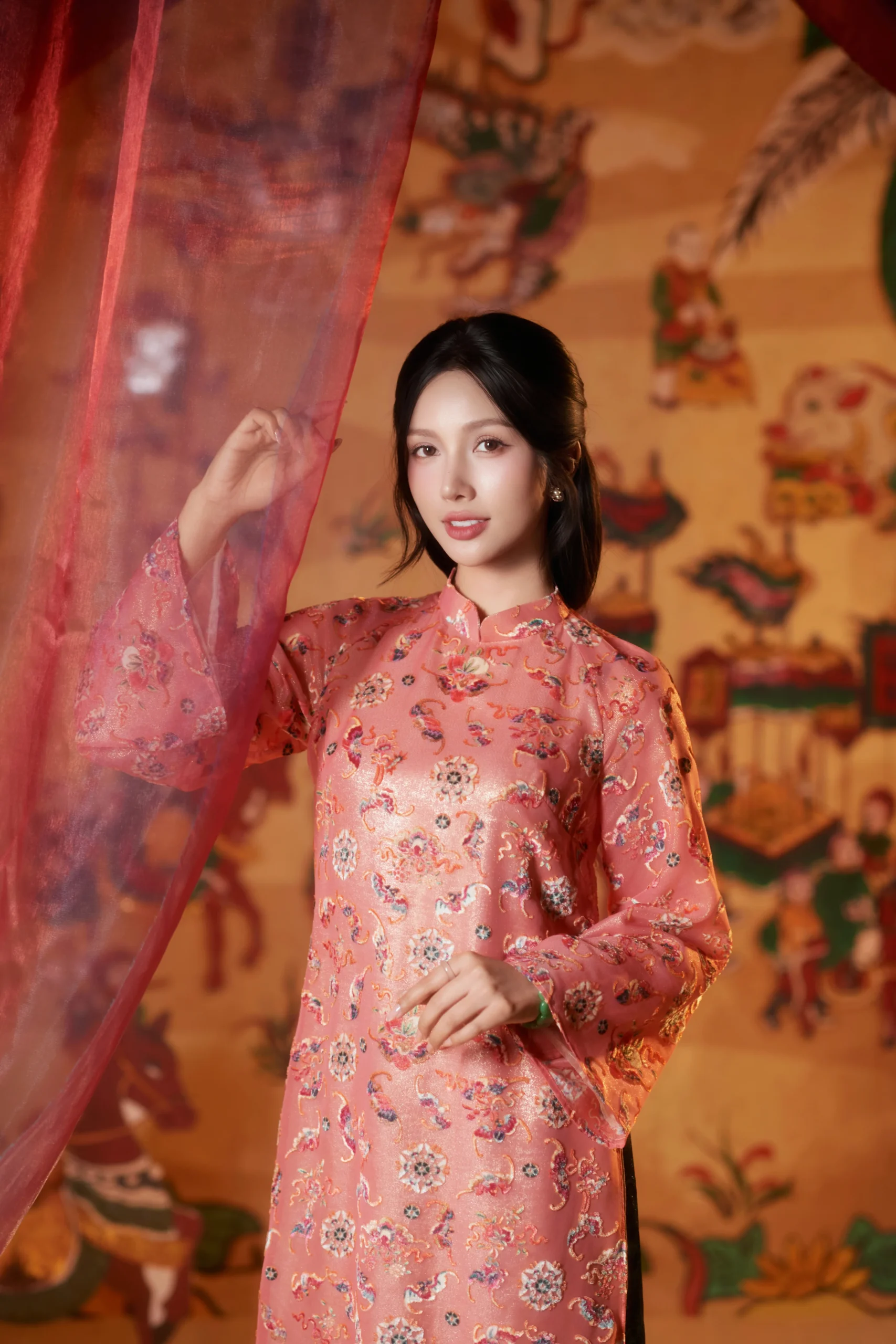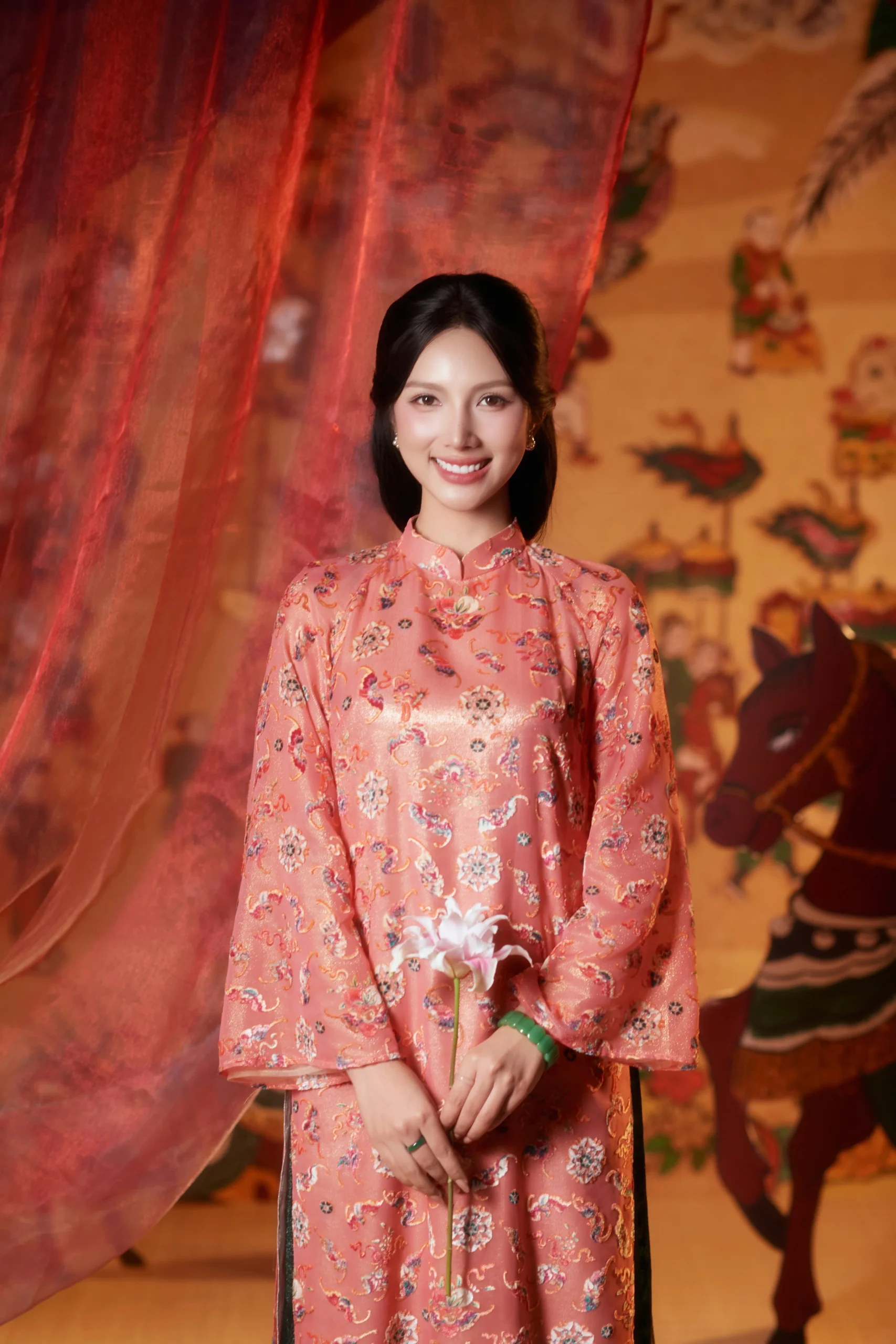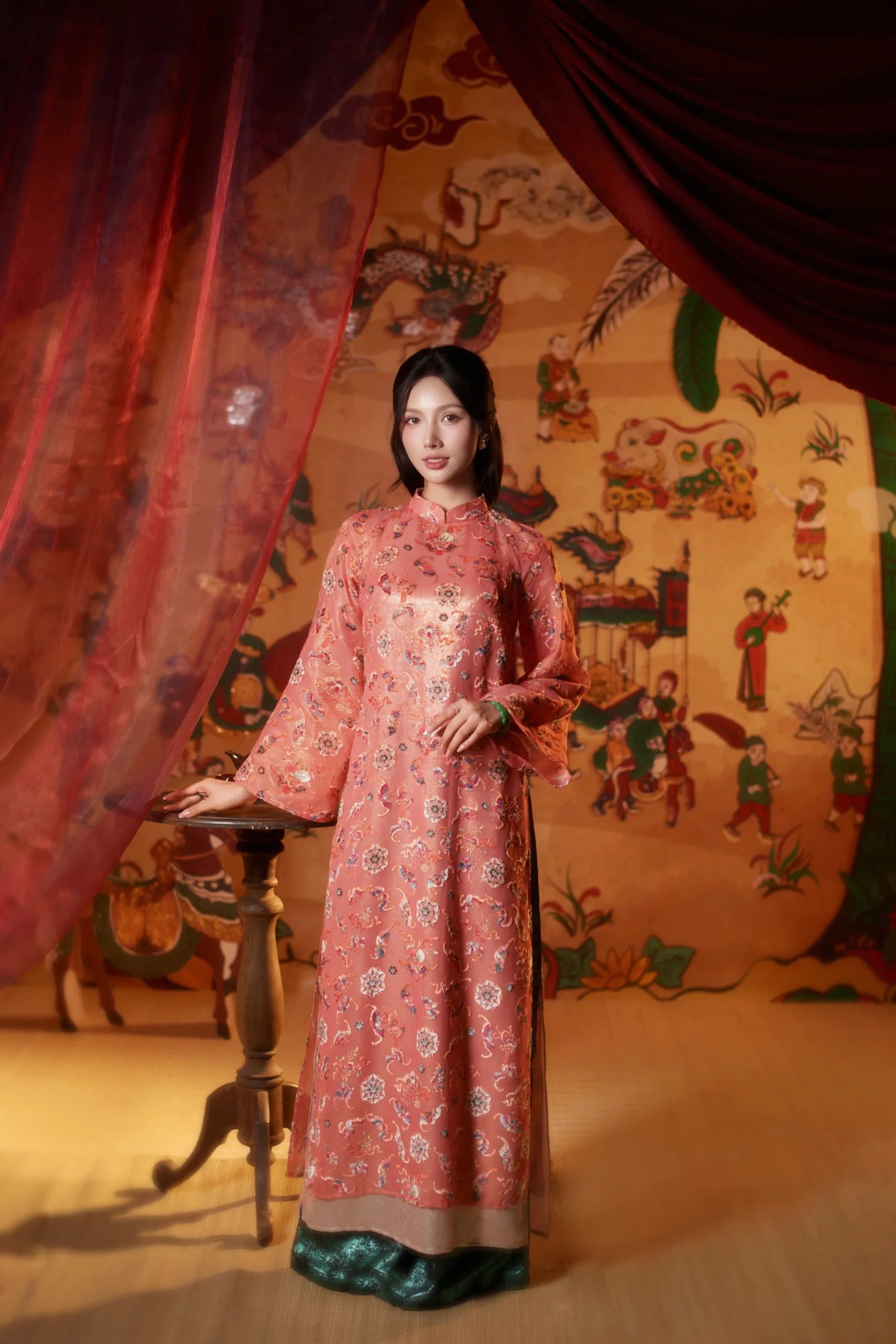 Ngoài các chất liệu tranh truyền thống, Gạo Nâu còn mang đến bộ sưu tập Áo dài lấy cảm hứng từ các nguyên tố phong thủy, giúp khách hàng chọn màu sắc tương sinh, kích hoạt vận may cho năm mới.