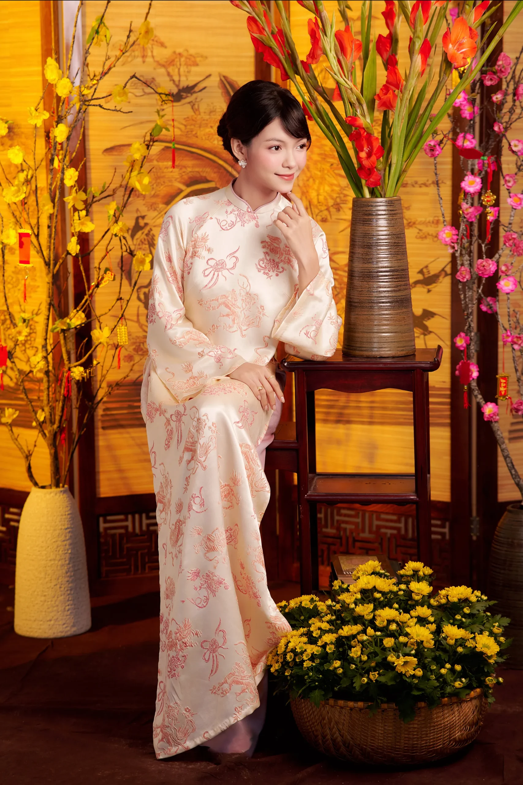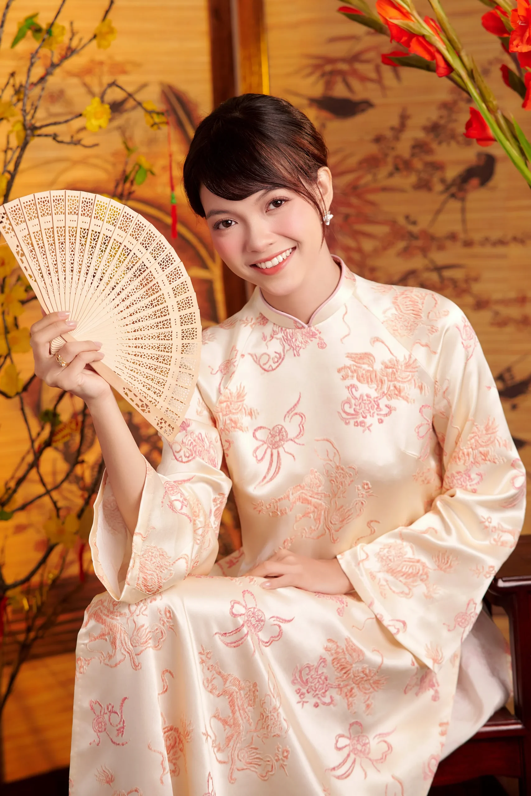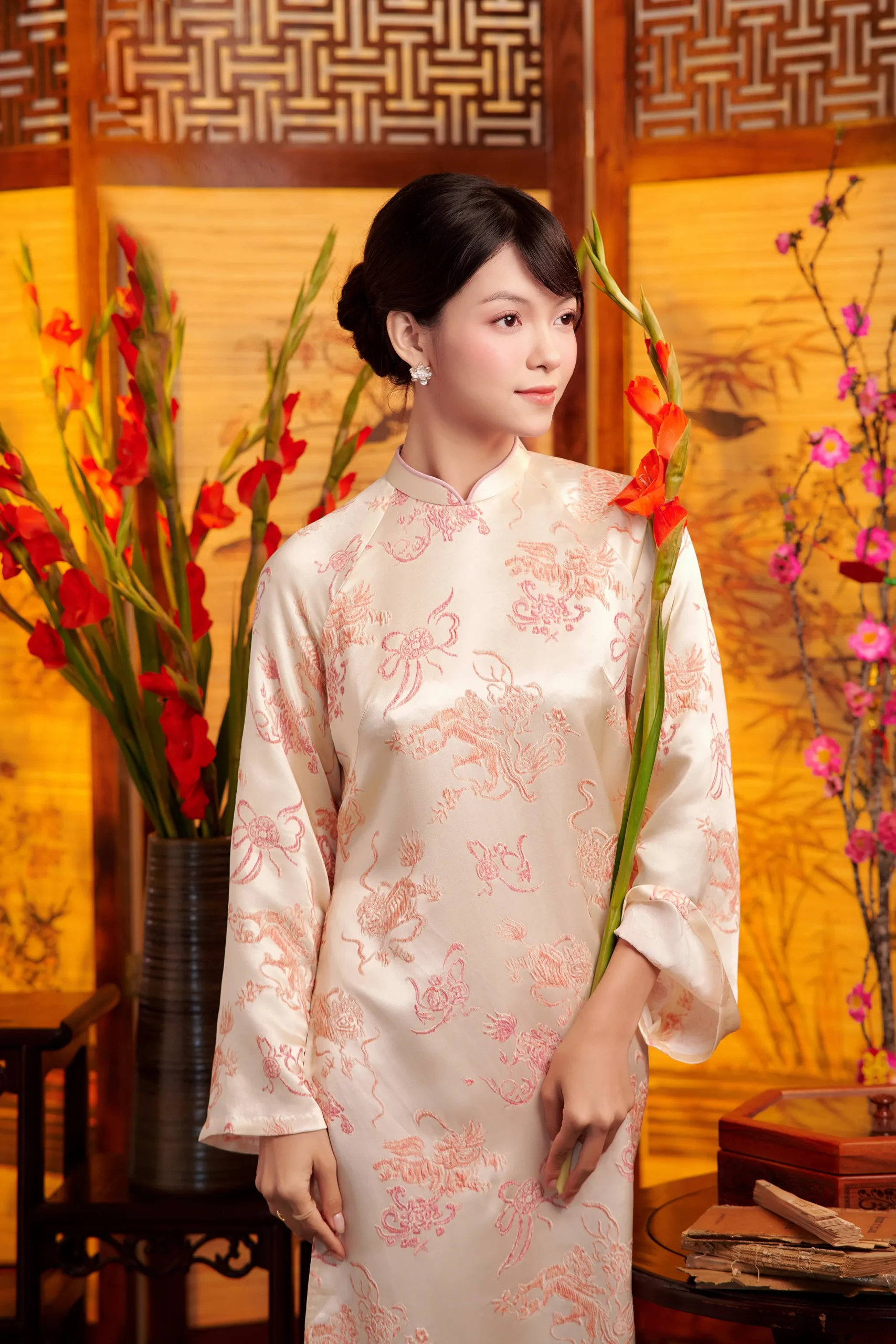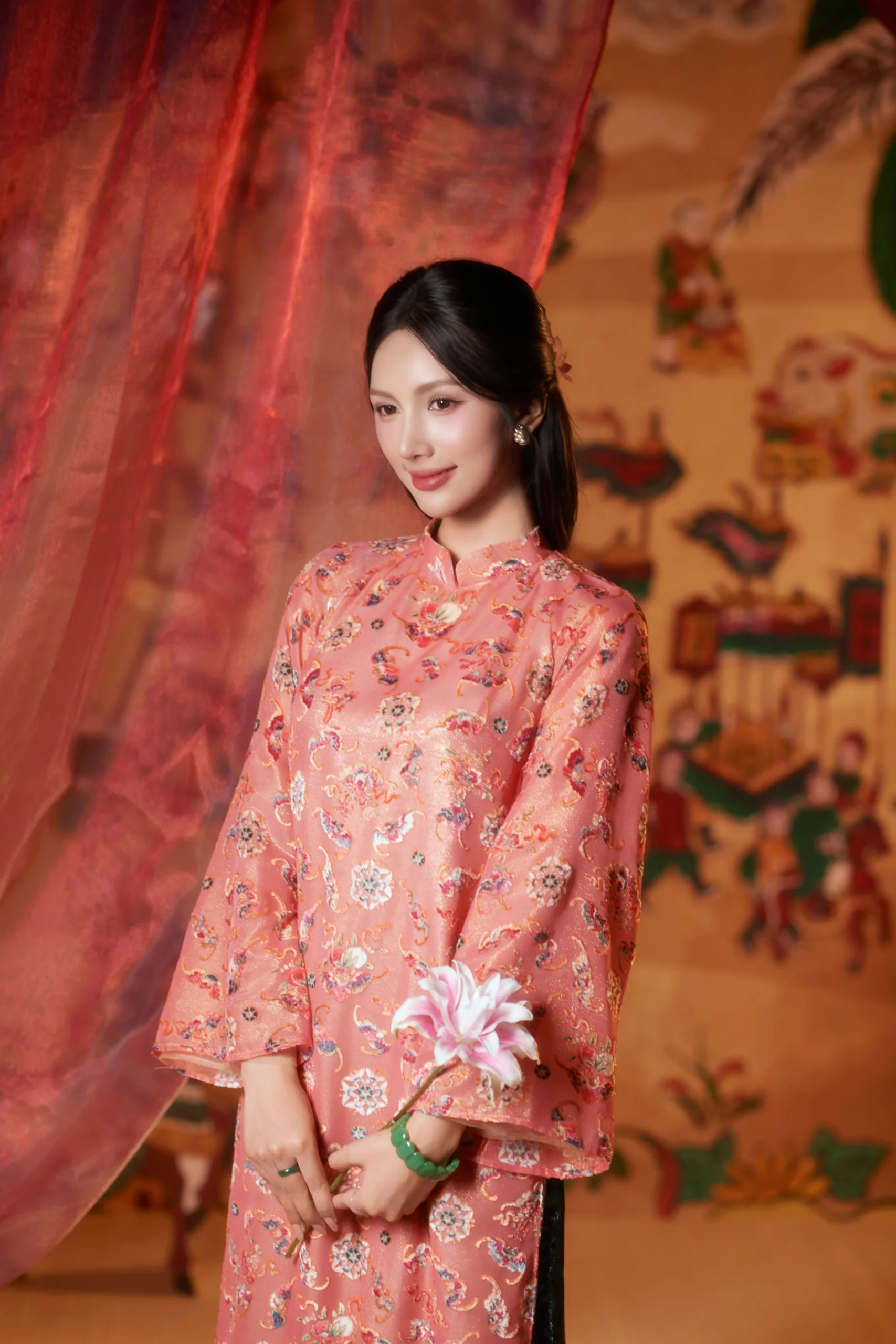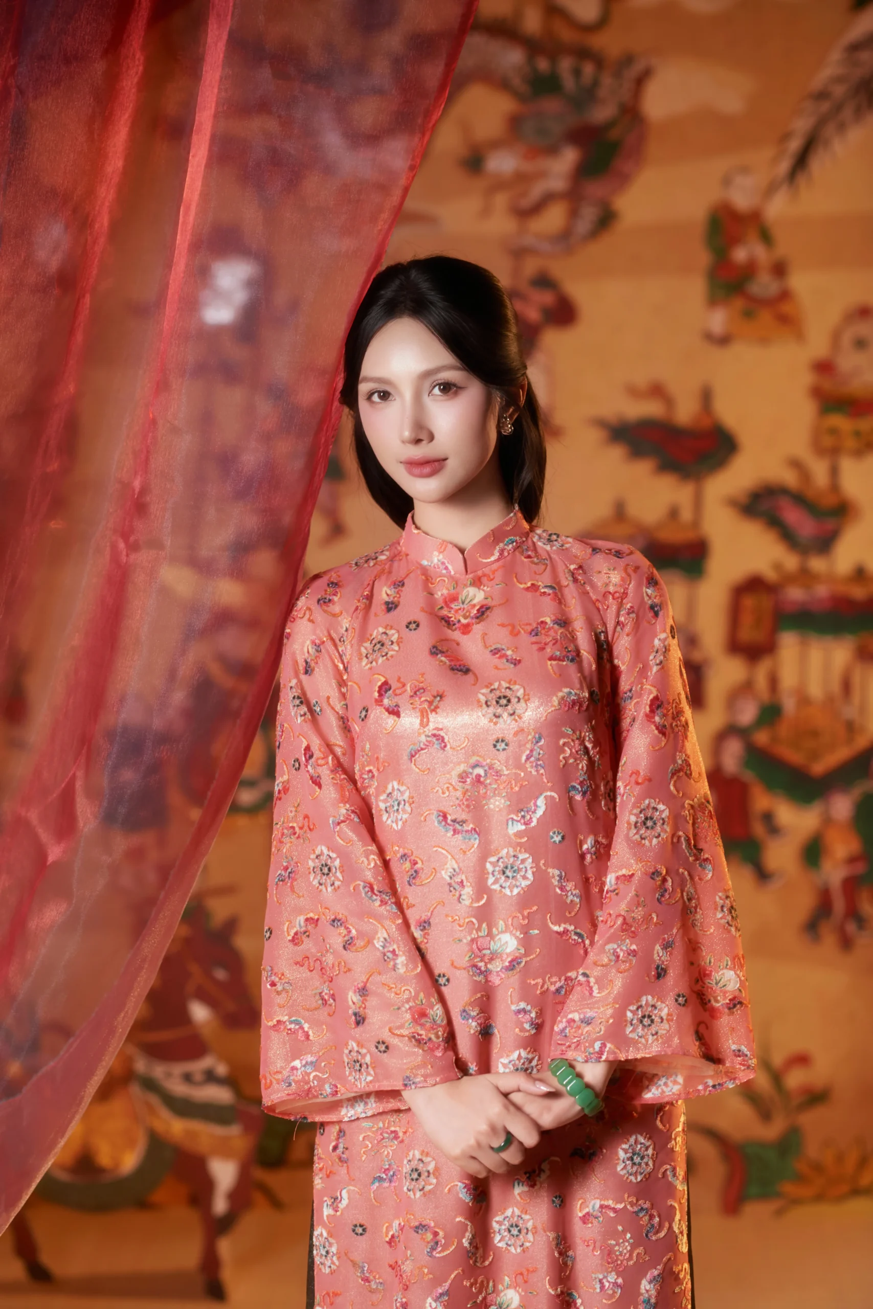 Ngoài các chất liệu tranh truyền thống, Gạo Nâu còn mang đến bộ sưu tập Áo dài lấy cảm hứng từ các nguyên tố phong thủy, giúp khách hàng chọn màu sắc tương sinh, kích hoạt vận may cho năm mới.