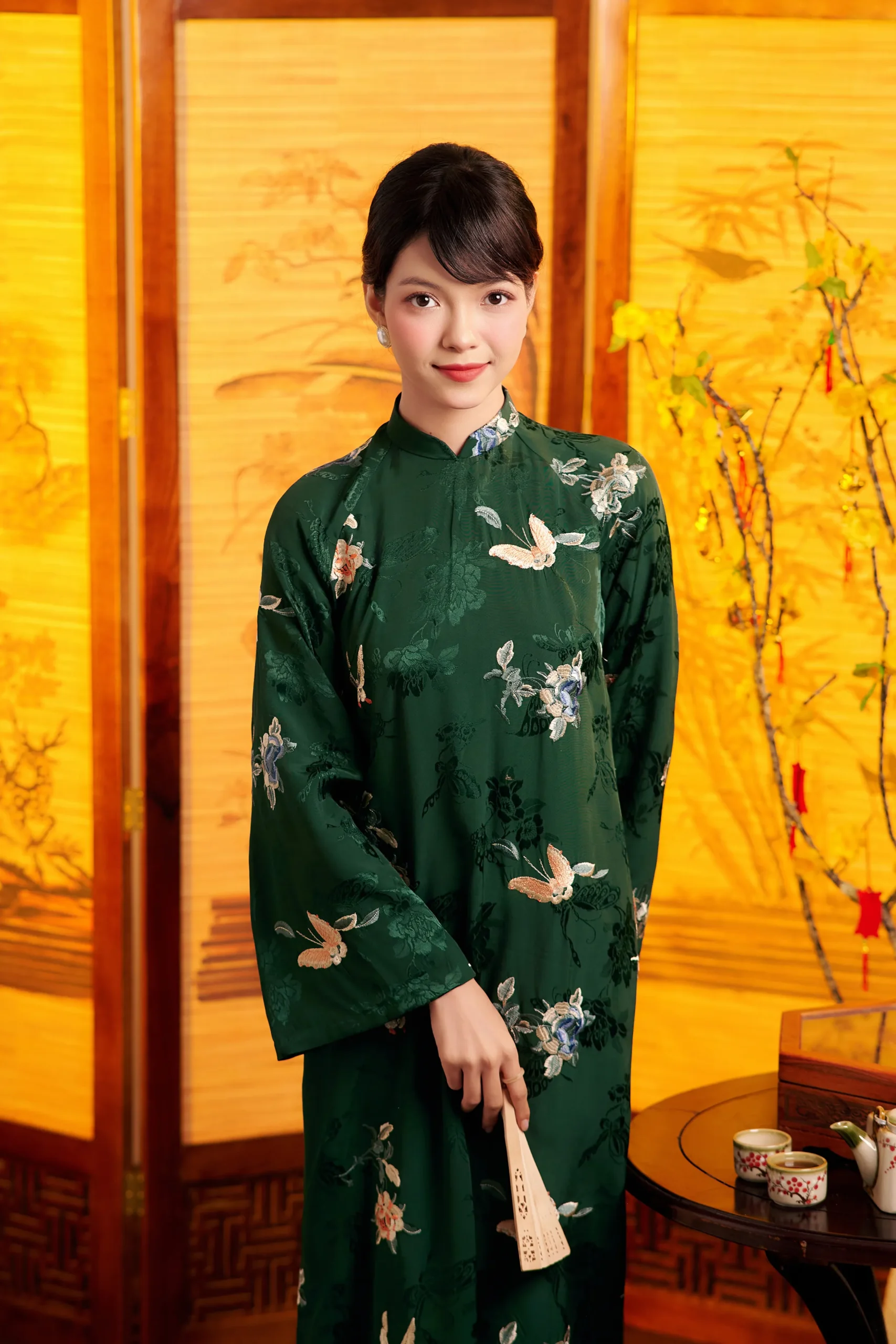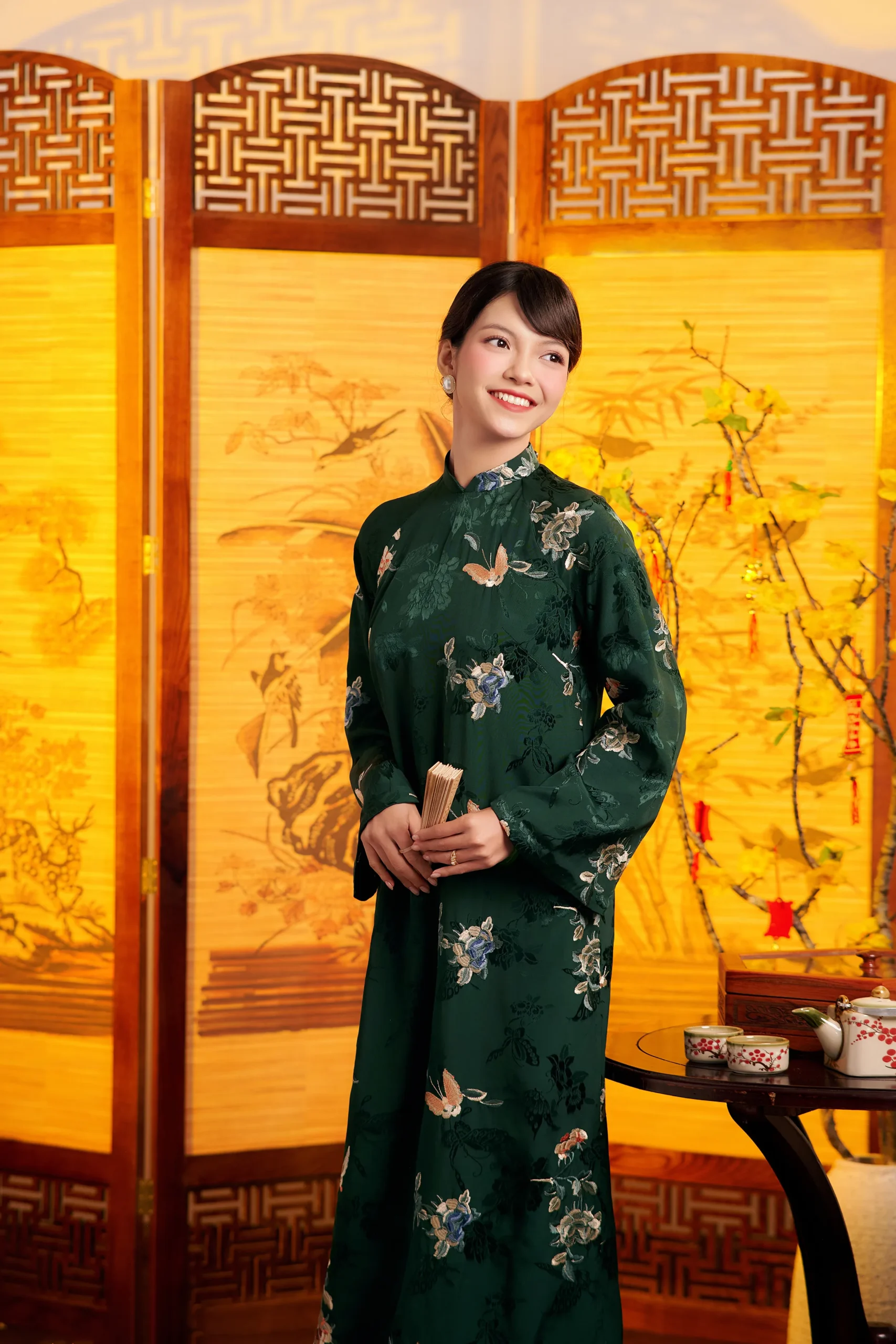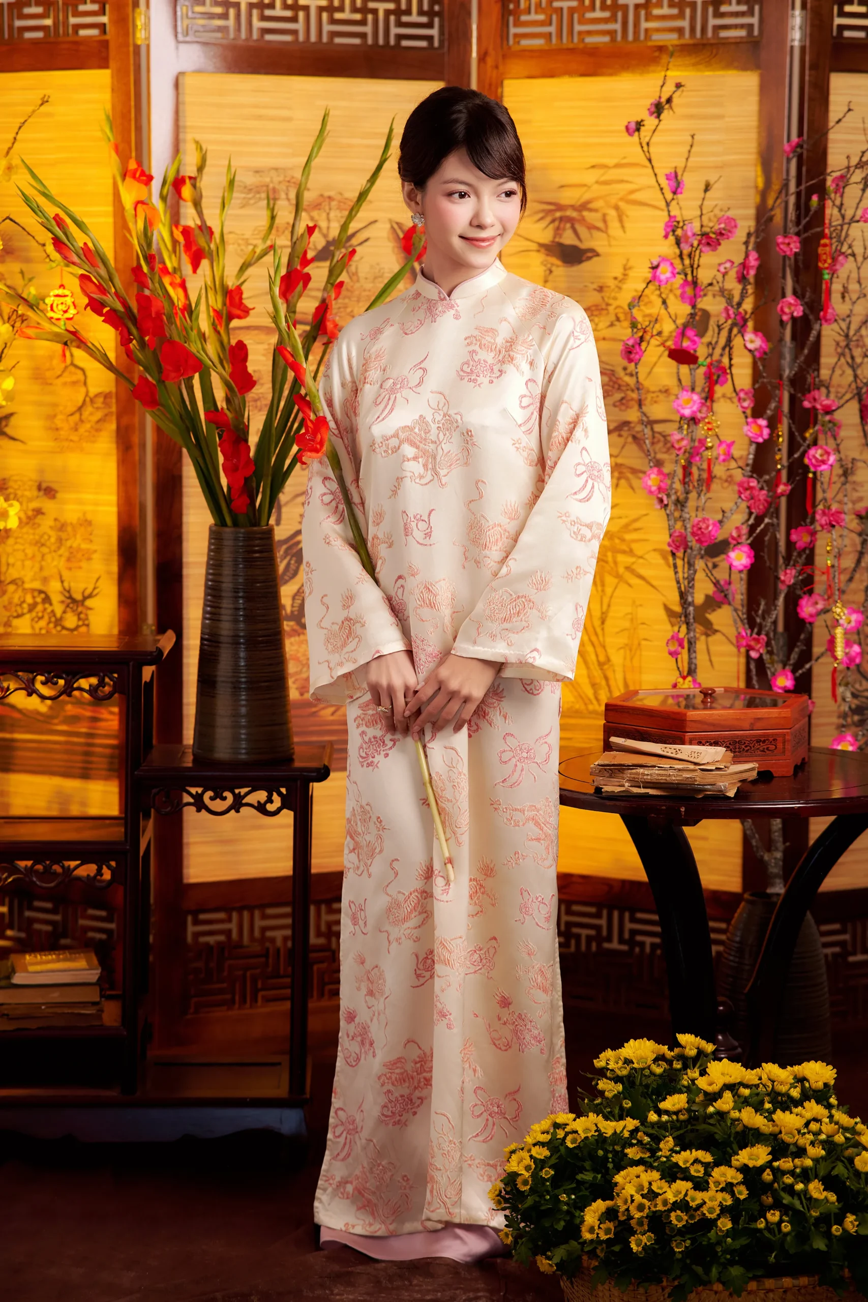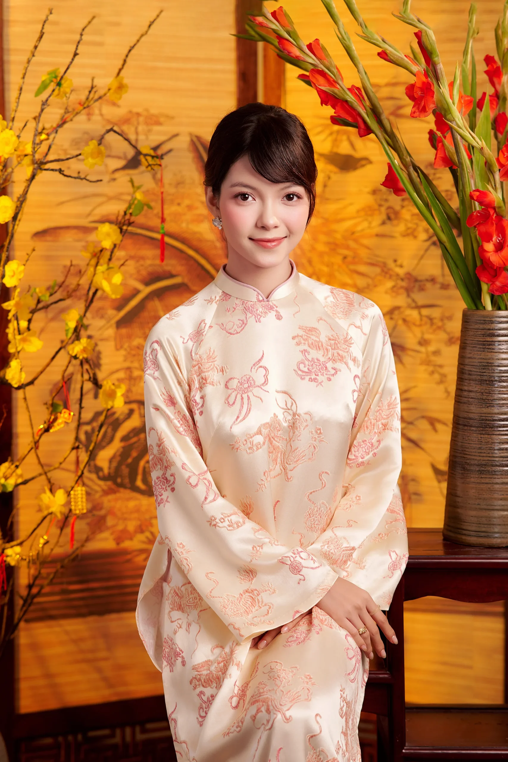 Ngoài các chất liệu tranh truyền thống, Gạo Nâu còn mang đến bộ sưu tập Áo dài lấy cảm hứng từ các nguyên tố phong thủy, giúp khách hàng chọn màu sắc tương sinh, kích hoạt vận may cho năm mới.