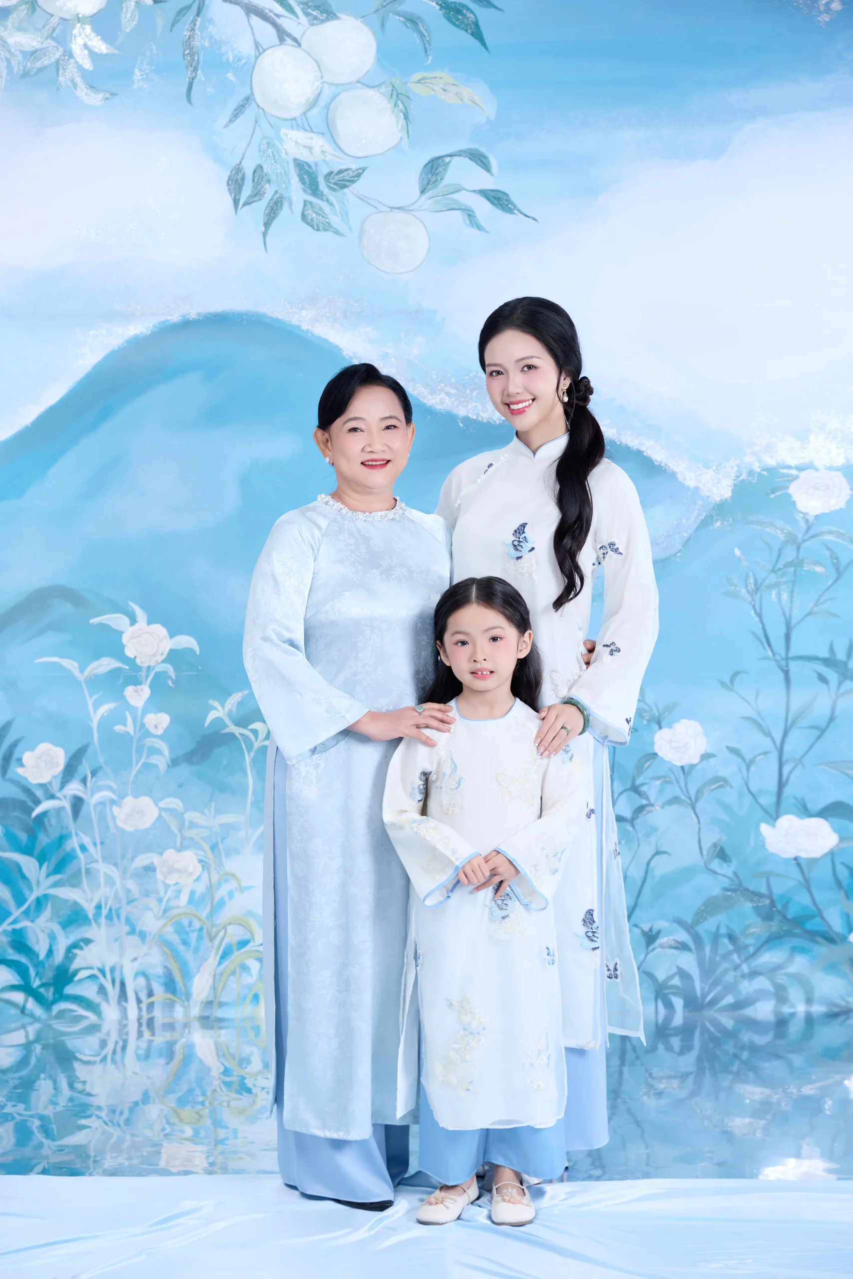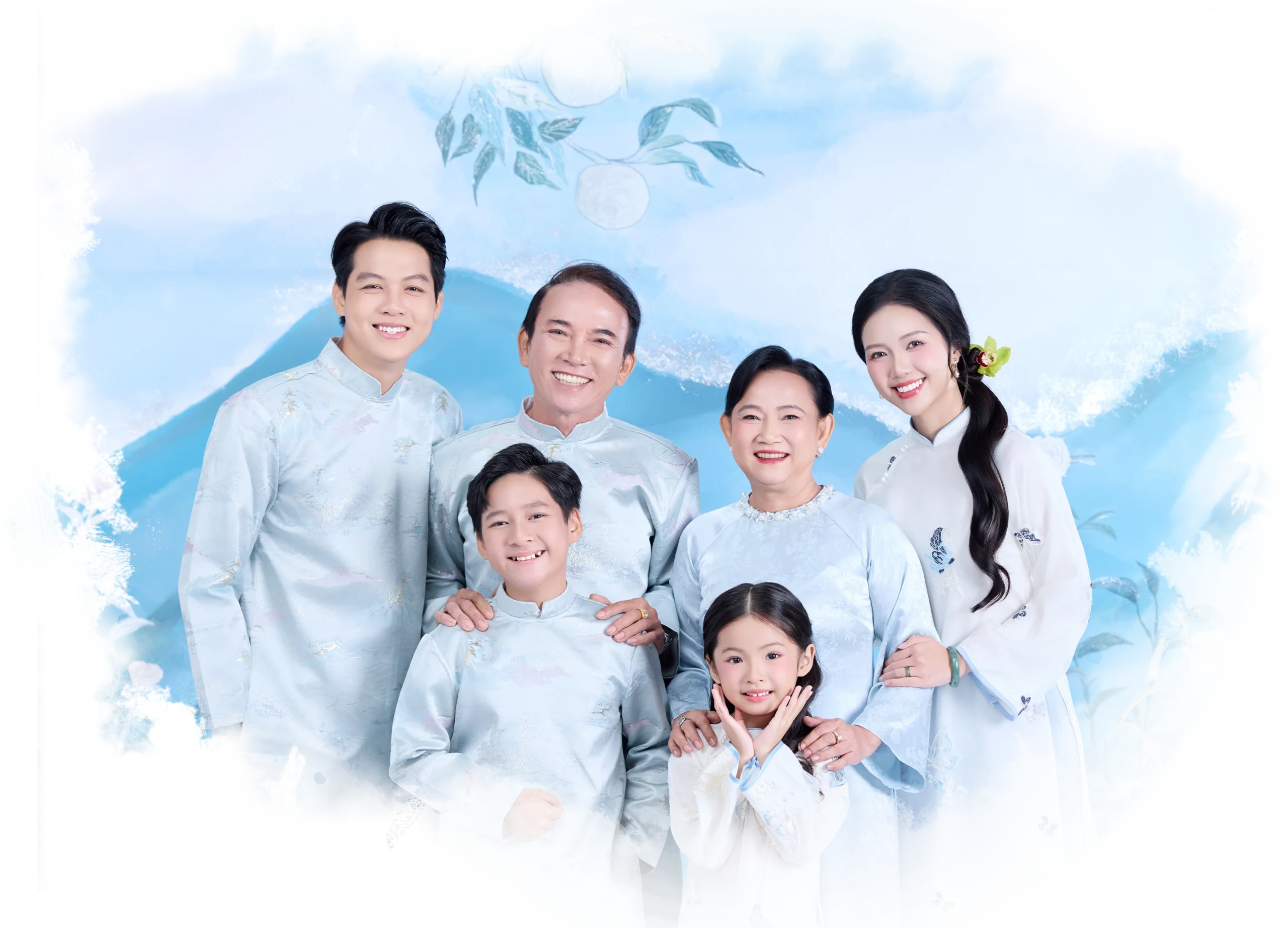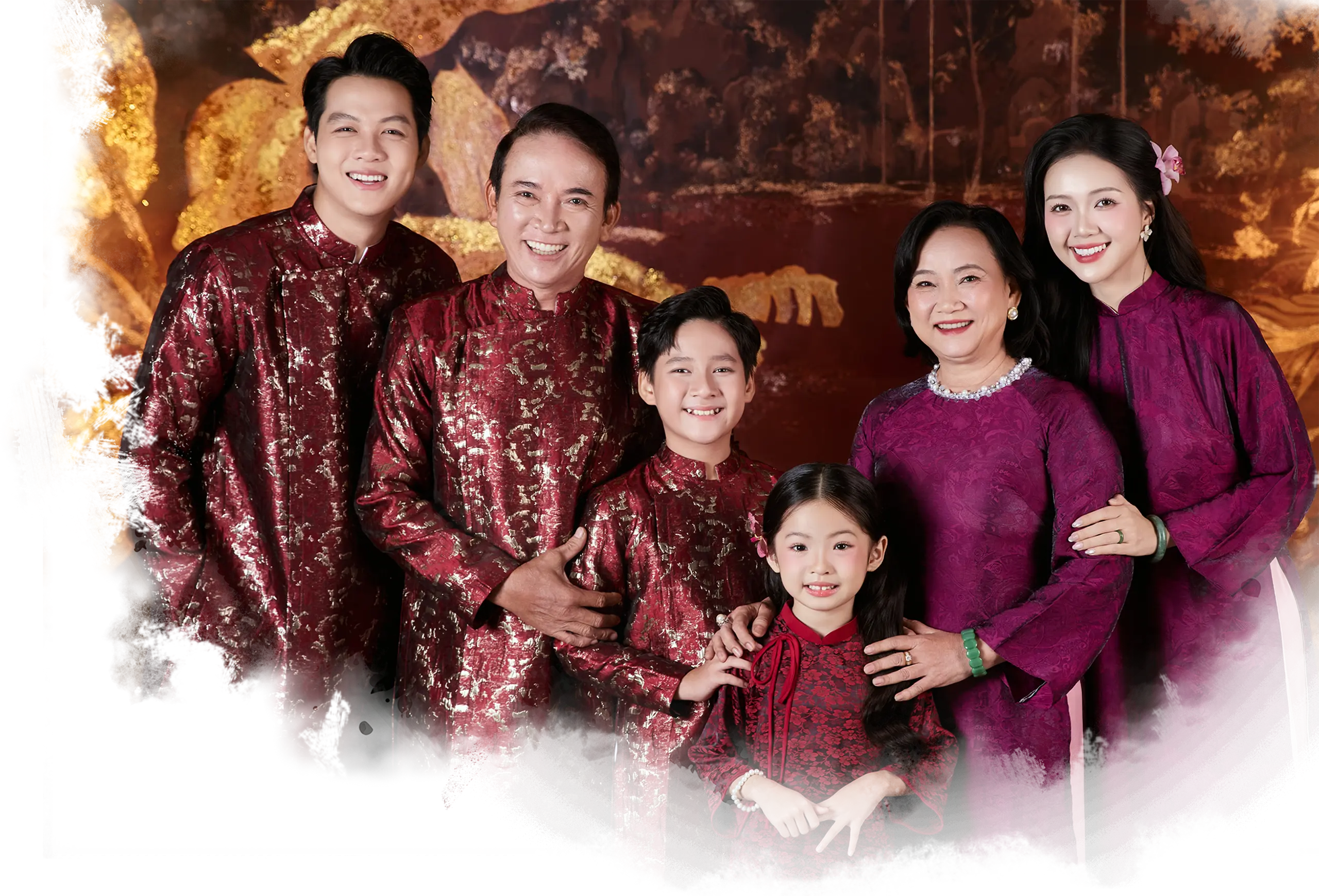 Tết là để trở về, là để cùng nhau ghi lại khoảnh khắc đoàn viên. Concept "Mỹ Sắc Thịnh Vượng" tập trung vào sự sang trọng, chỉn chu của một gia đình nề nếp. Ánh sáng được đánh khối rõ nét, tôn lên vẻ rạng rỡ của từng thành viên. Đây không chỉ là một bức ảnh, mà là "gia bảo" lưu giữ khoảnh khắc huy hoàng của cả gia đình trong thời khắc chuyển giao năm mới.